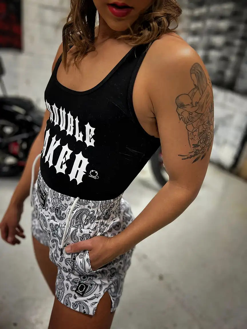 - Custom DDD logo print on back of bodysuit