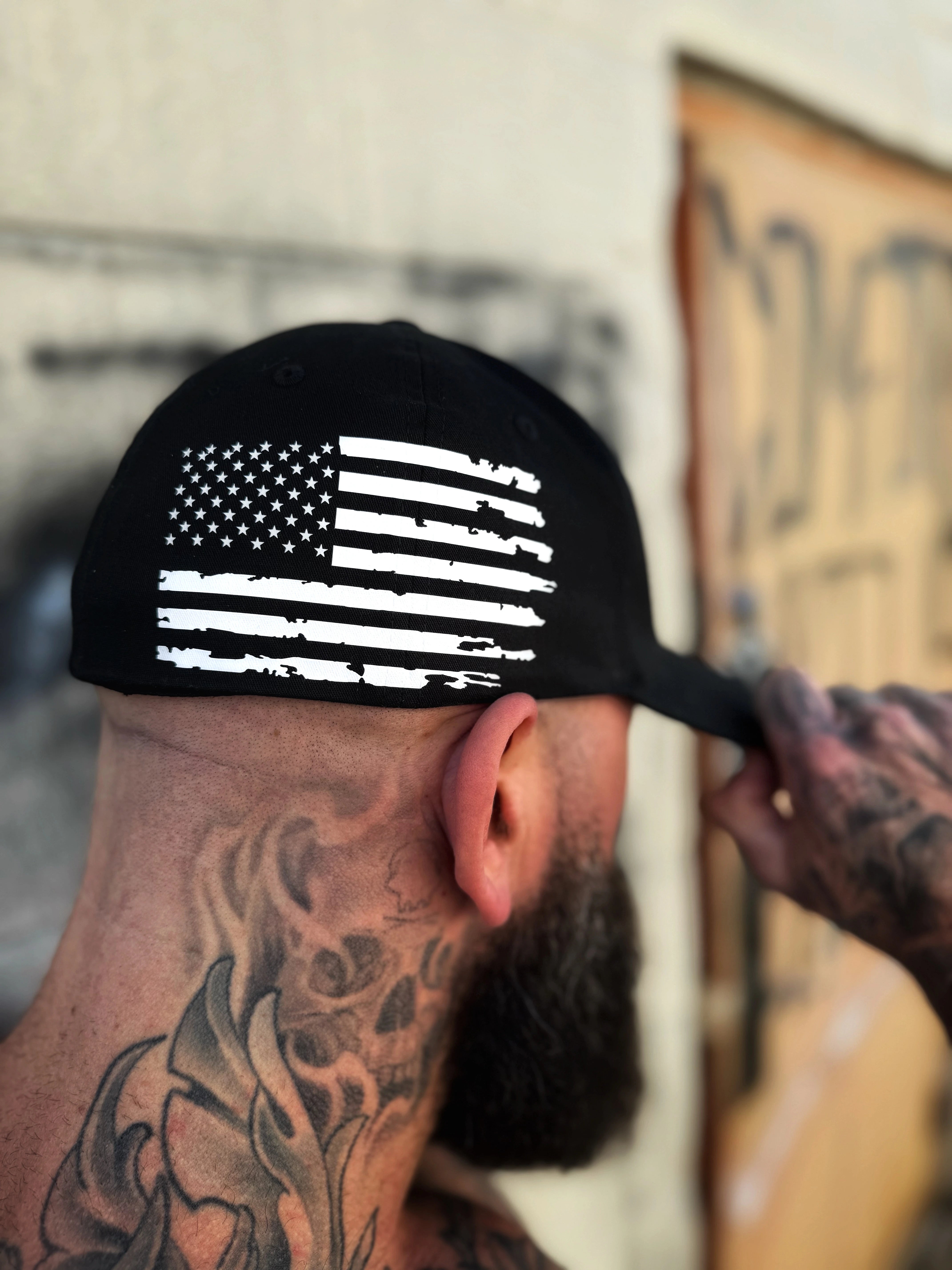 USA FLAG WHITE SIDE STYLE FLEXFIT COTTON HAT