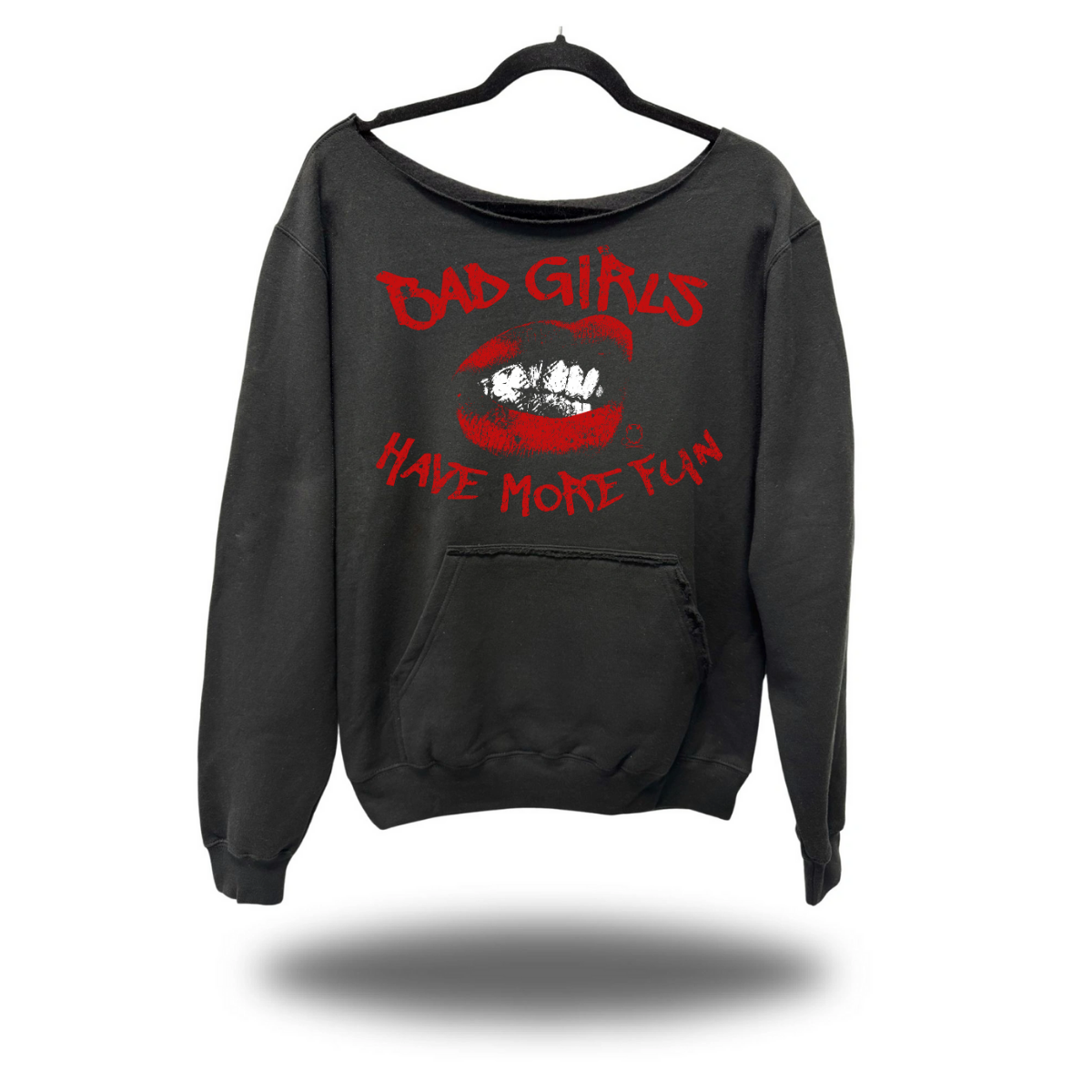 BAD GIRLS ROAD RASH DIAMOND CROSS BLACK WIDENECK HOODIE