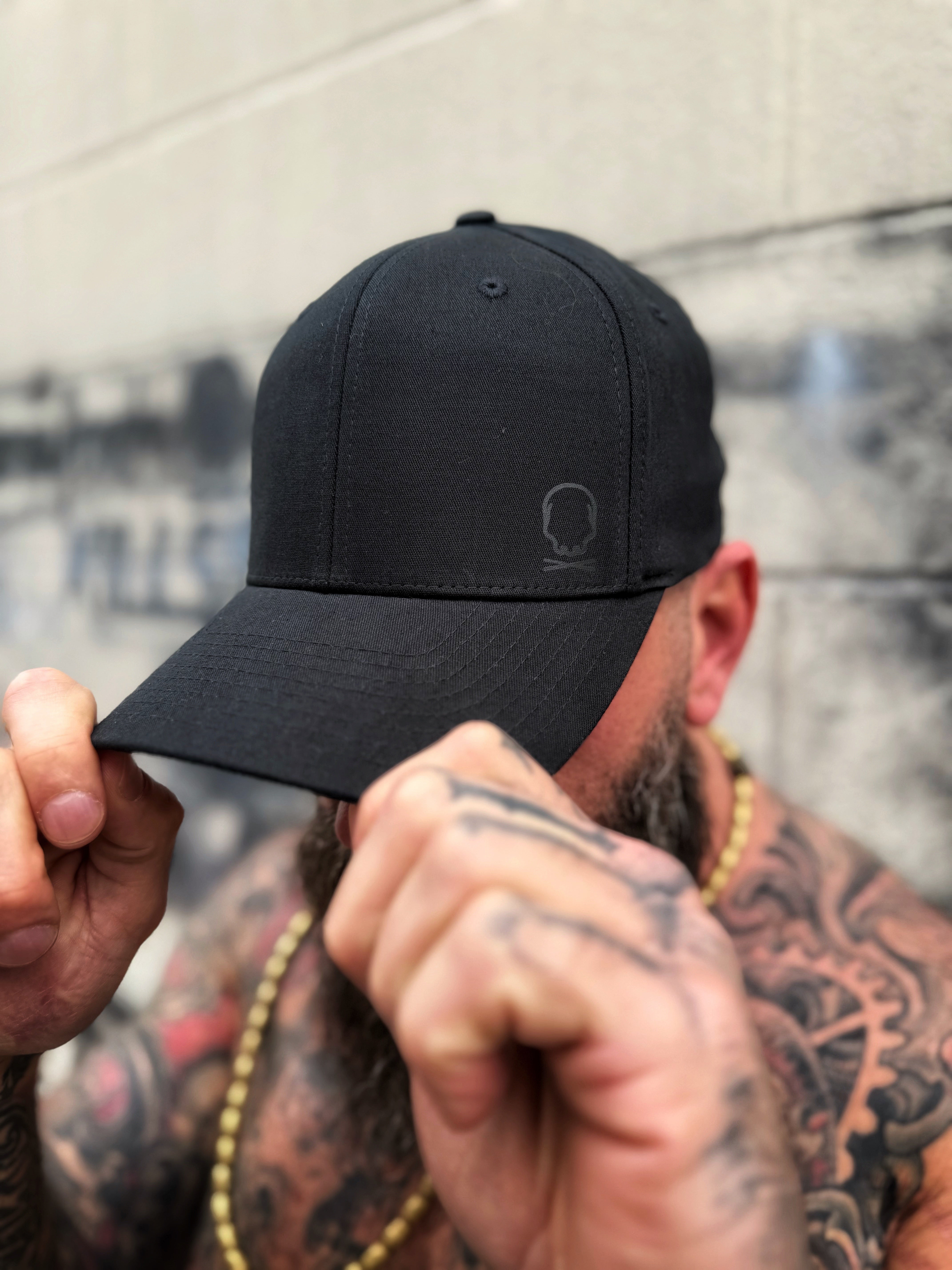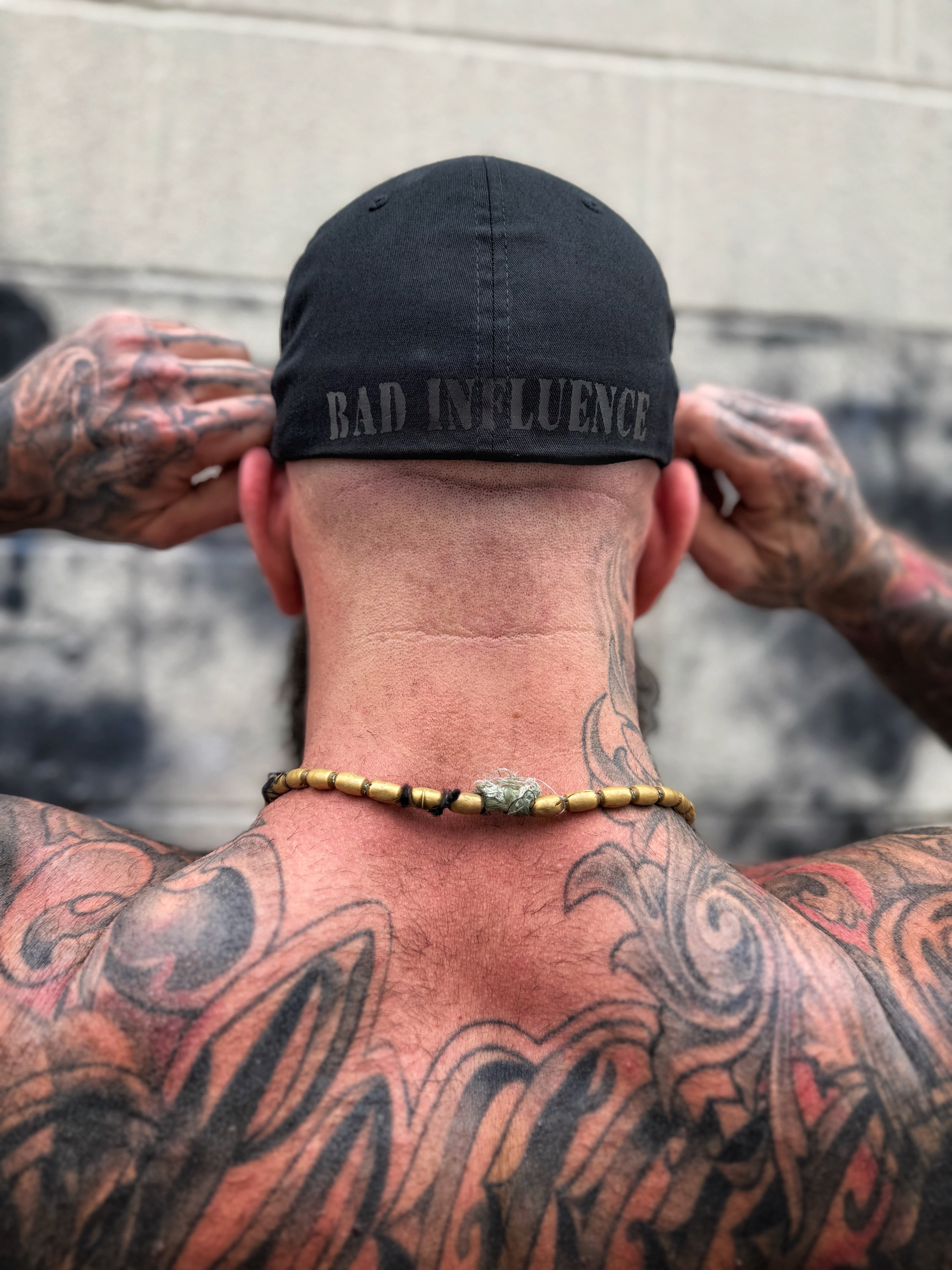 BAD INFLUENCE BLACK ON BLACK BACK STYLE FLEXFIT COTTON HAT