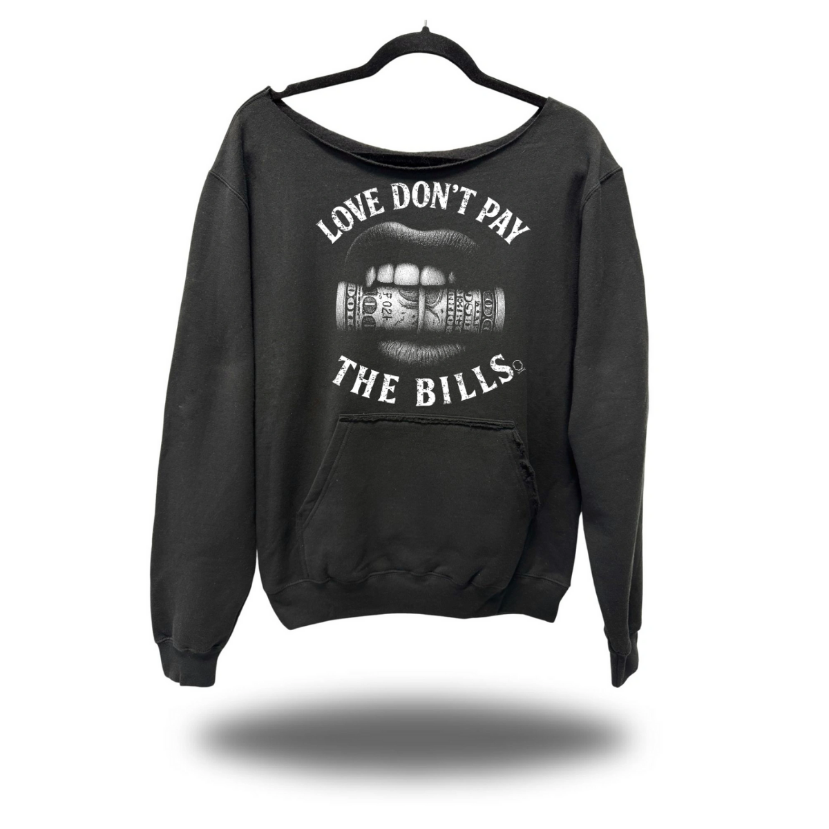 LOVE DON'T PAY ROAD RASH DIAMOND CROSS BLACK WIDENECK HOODIE