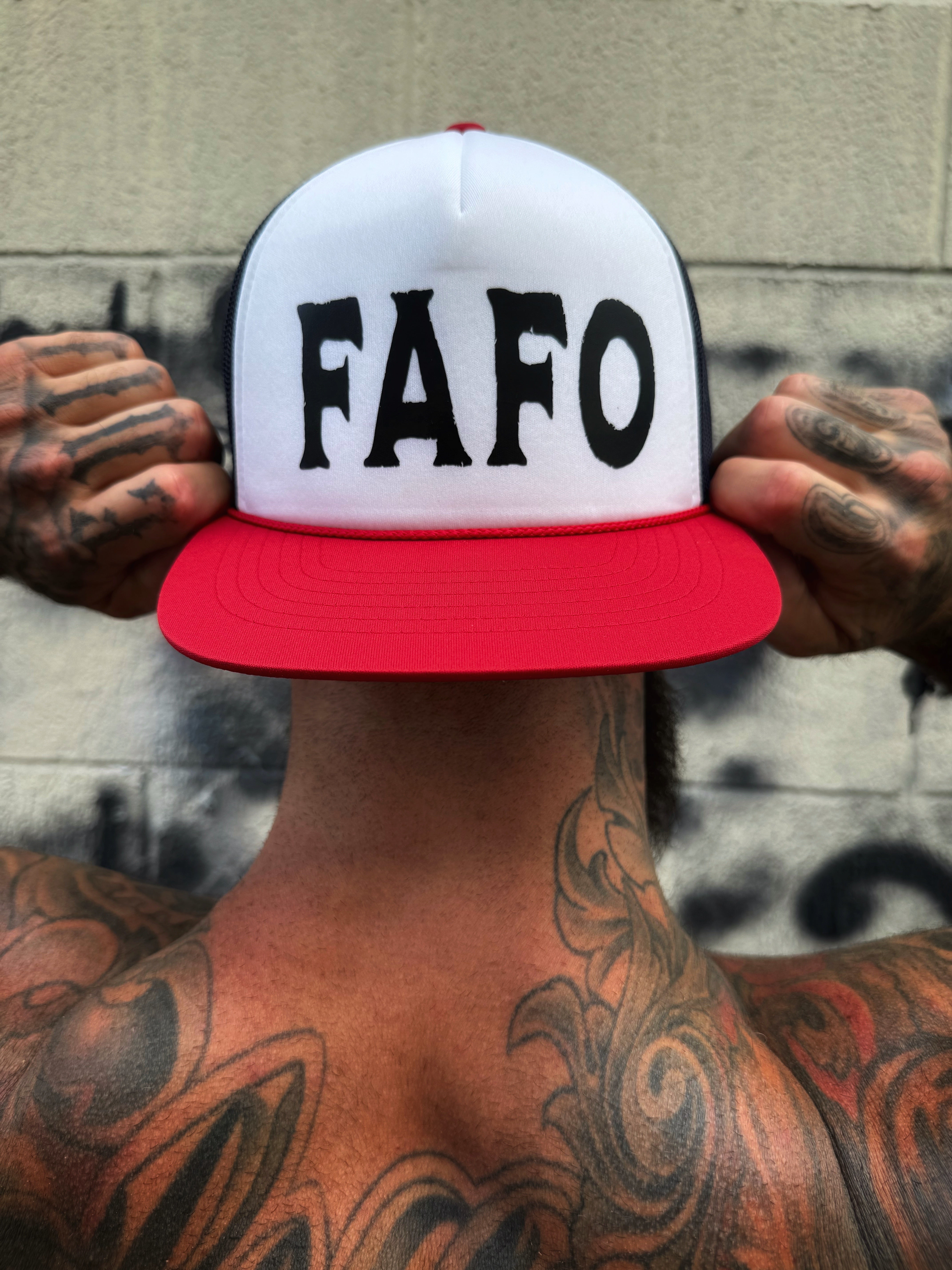 BLACK FAFO RED WHITE BLUE FOAMIE FLAT BILL HAT