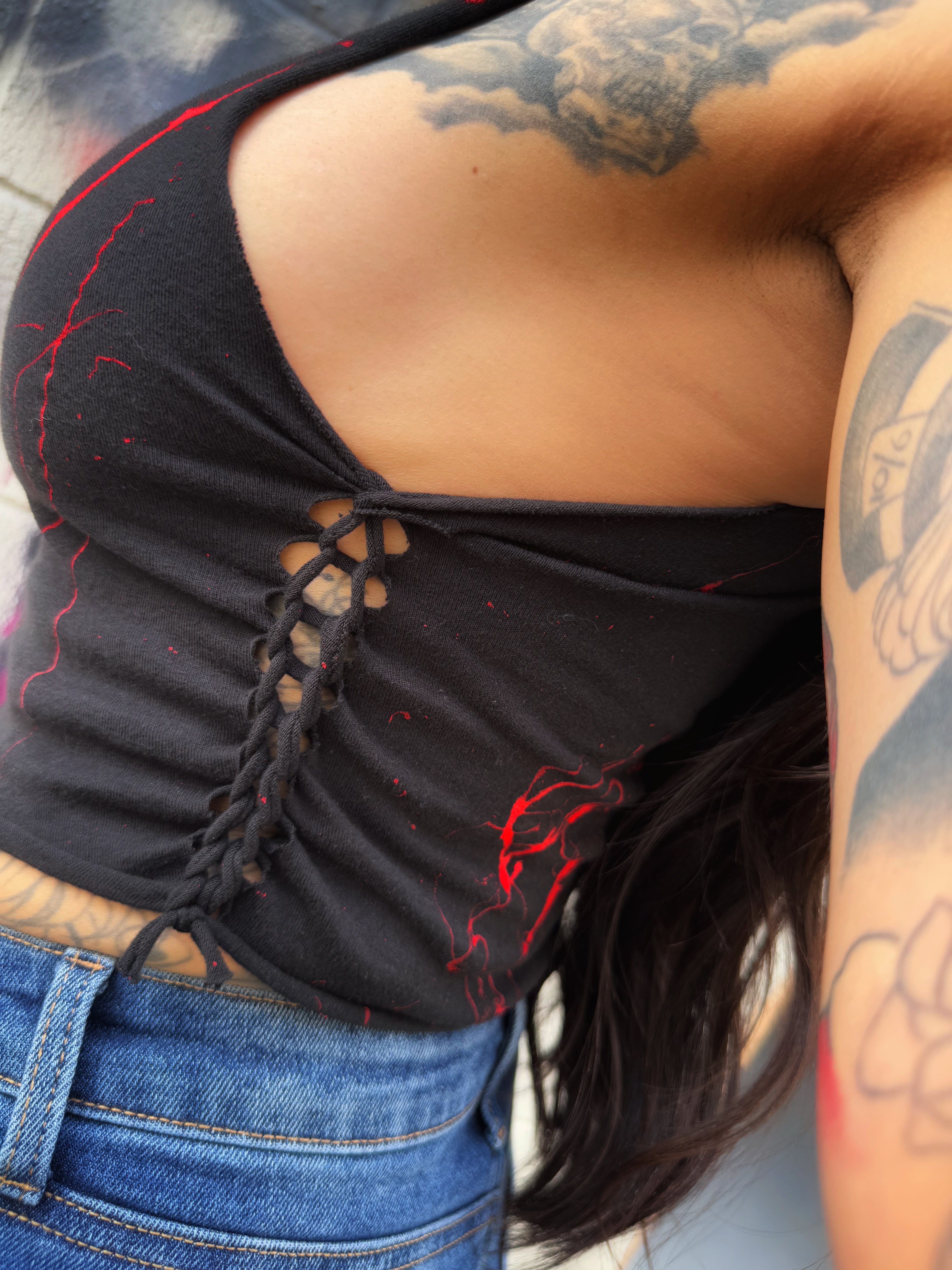 BLOOD ROAD RASH BRAIDED BLACK CROP TANK TOP - 1.0