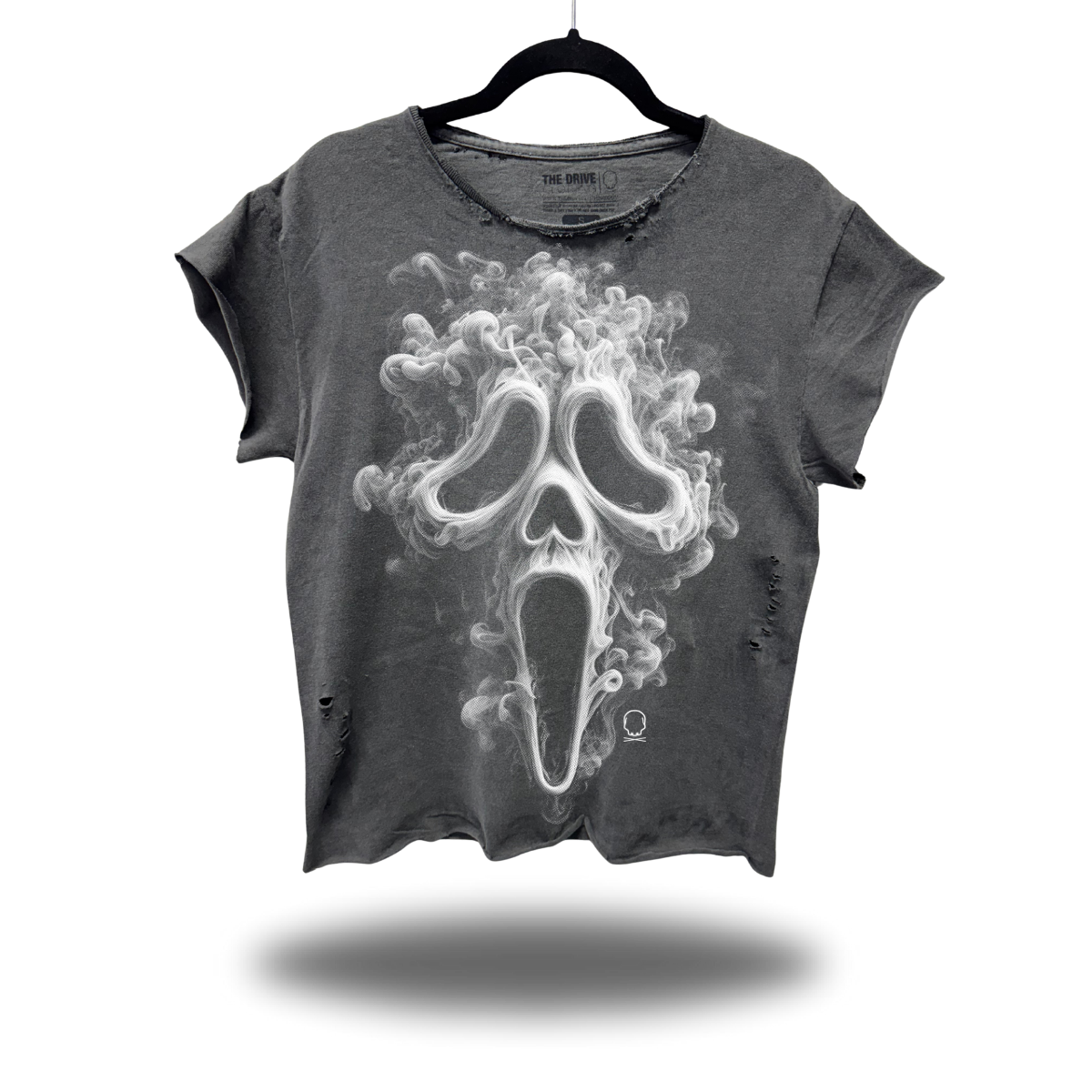 SMOKE GHOST FACE FADED BLACK MUSCLE OVERSIZED TEE