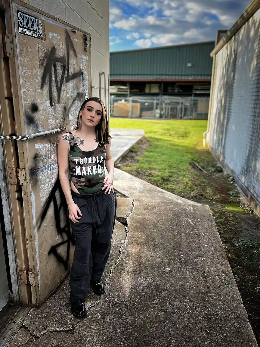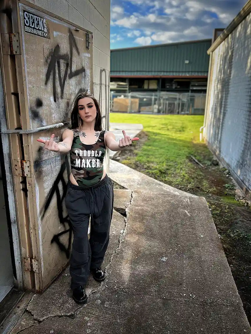 DDD TROUBLE MAKER OPEN BACK CAMO BODYSUIT