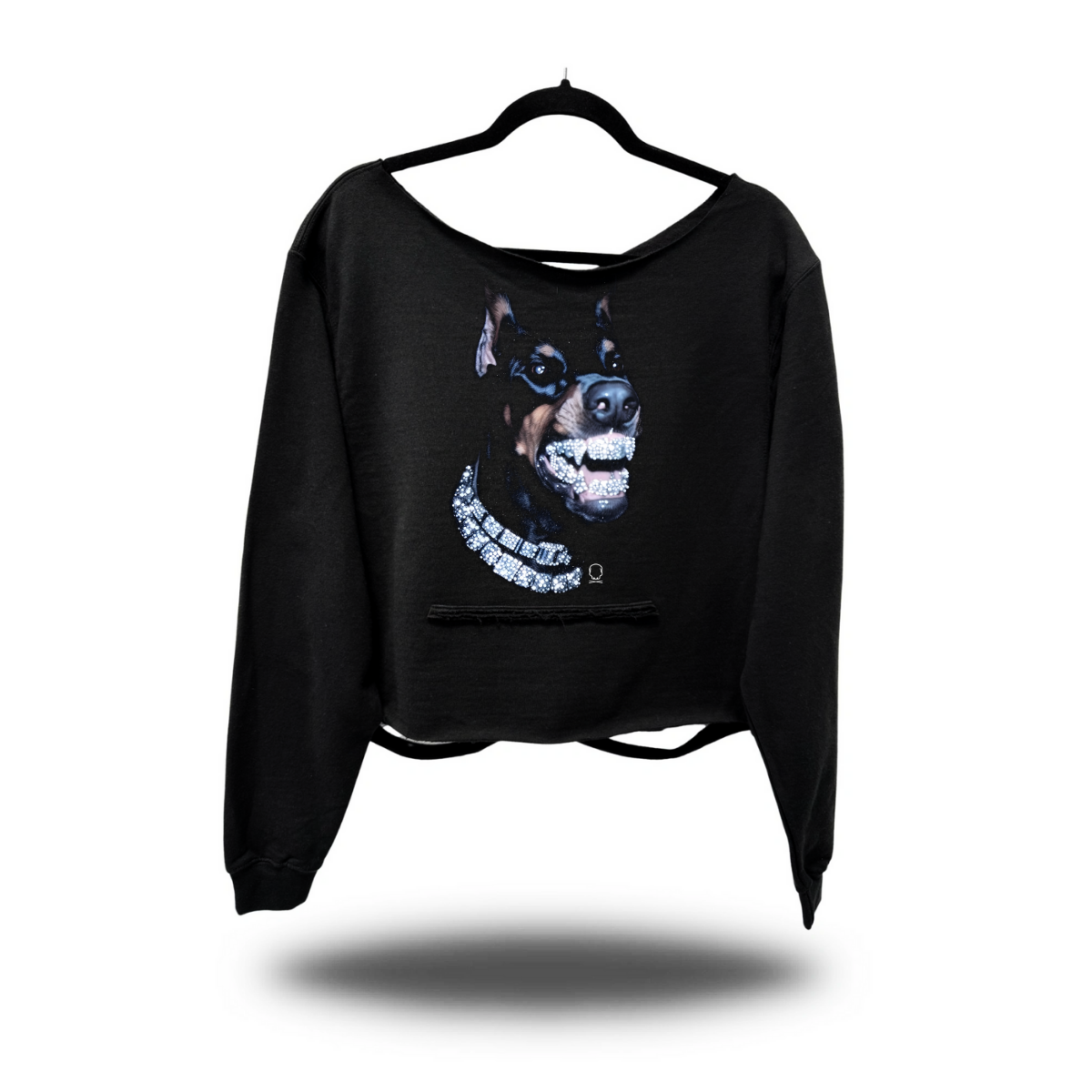 DOG IN ME ROAD RASH SLASH X BLACK CROP WIDENECK HOODIE