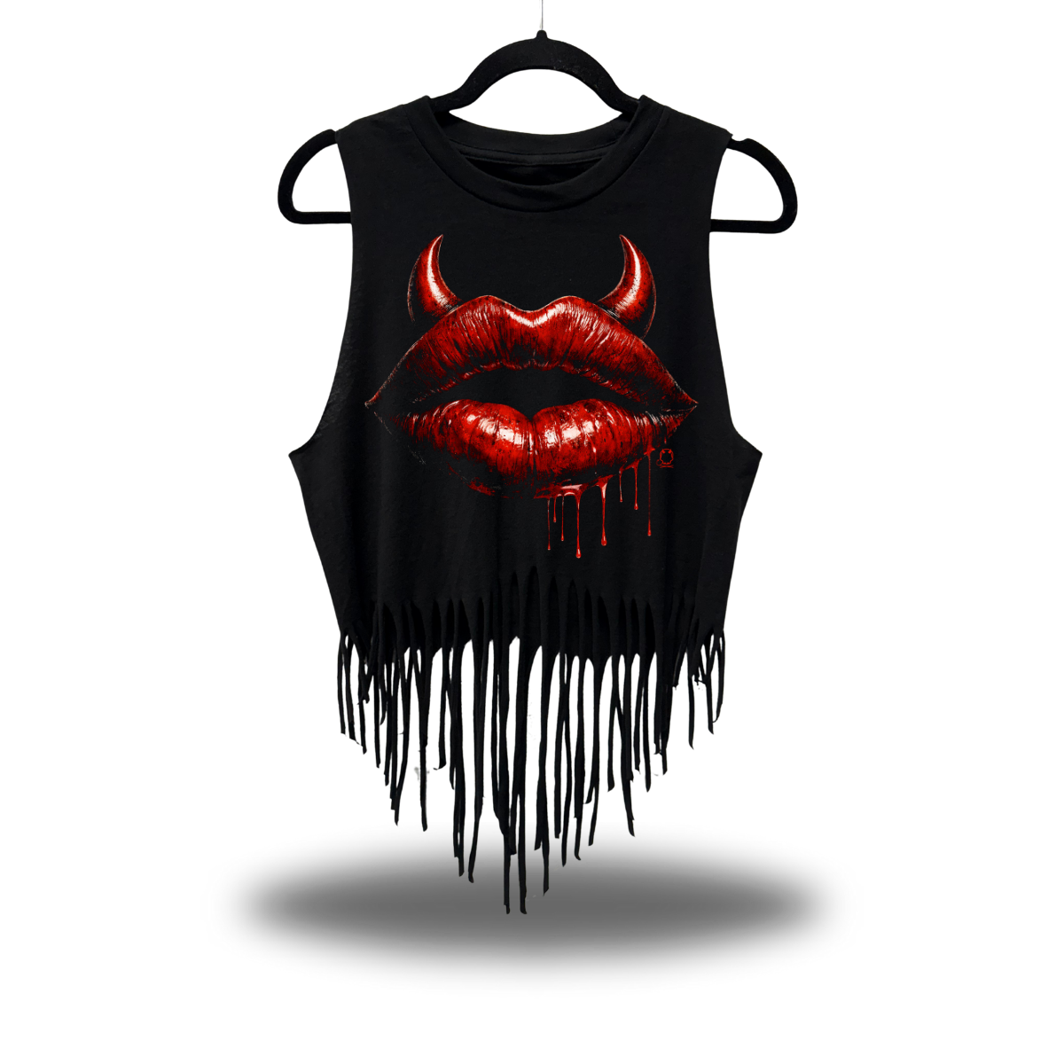 DEVIL LIPS WESTERN FRINGE CROP TANK TOP