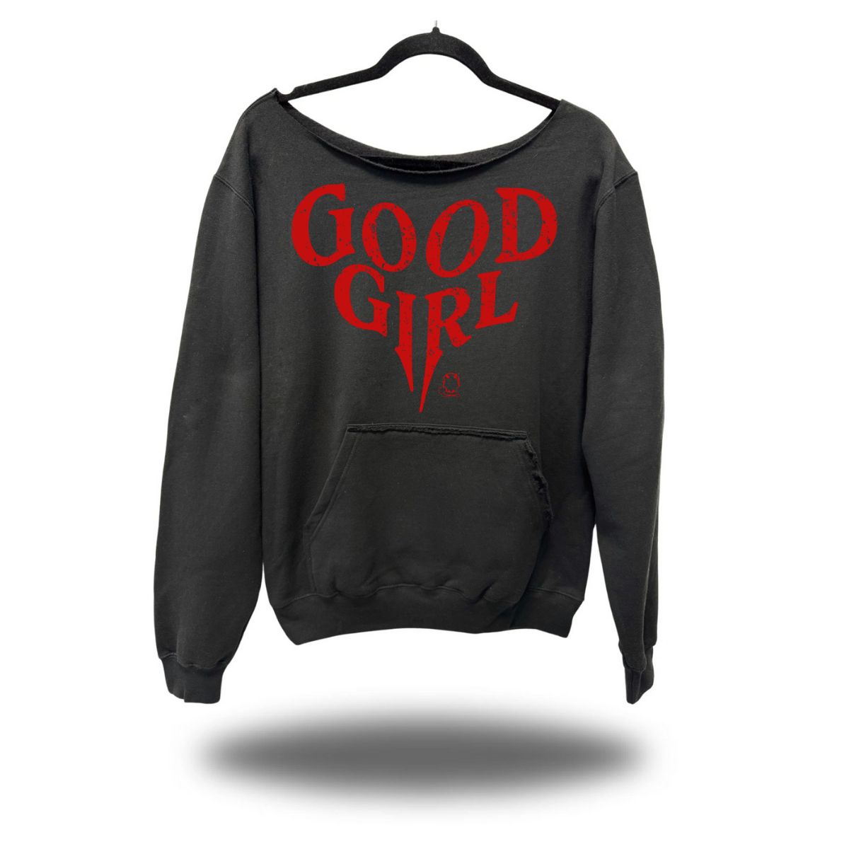 GOOD GIRL ROAD RASH DIAMOND CROSS BLACK WIDENECK HOODIE