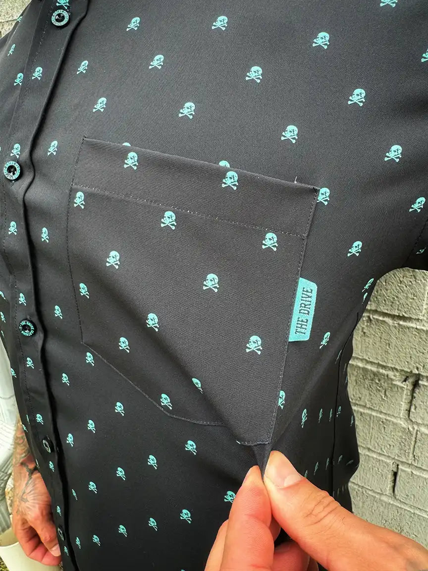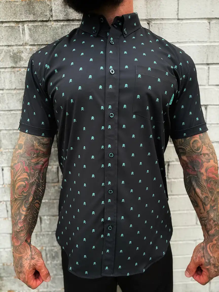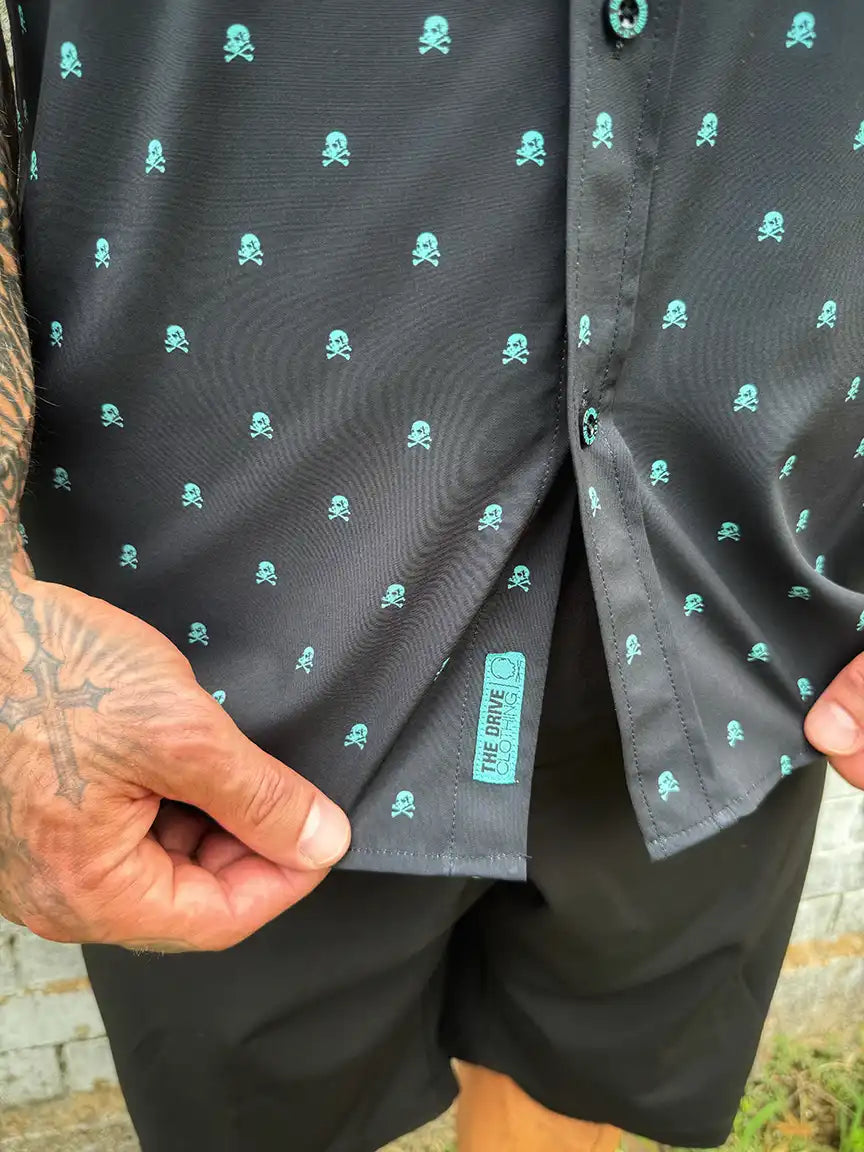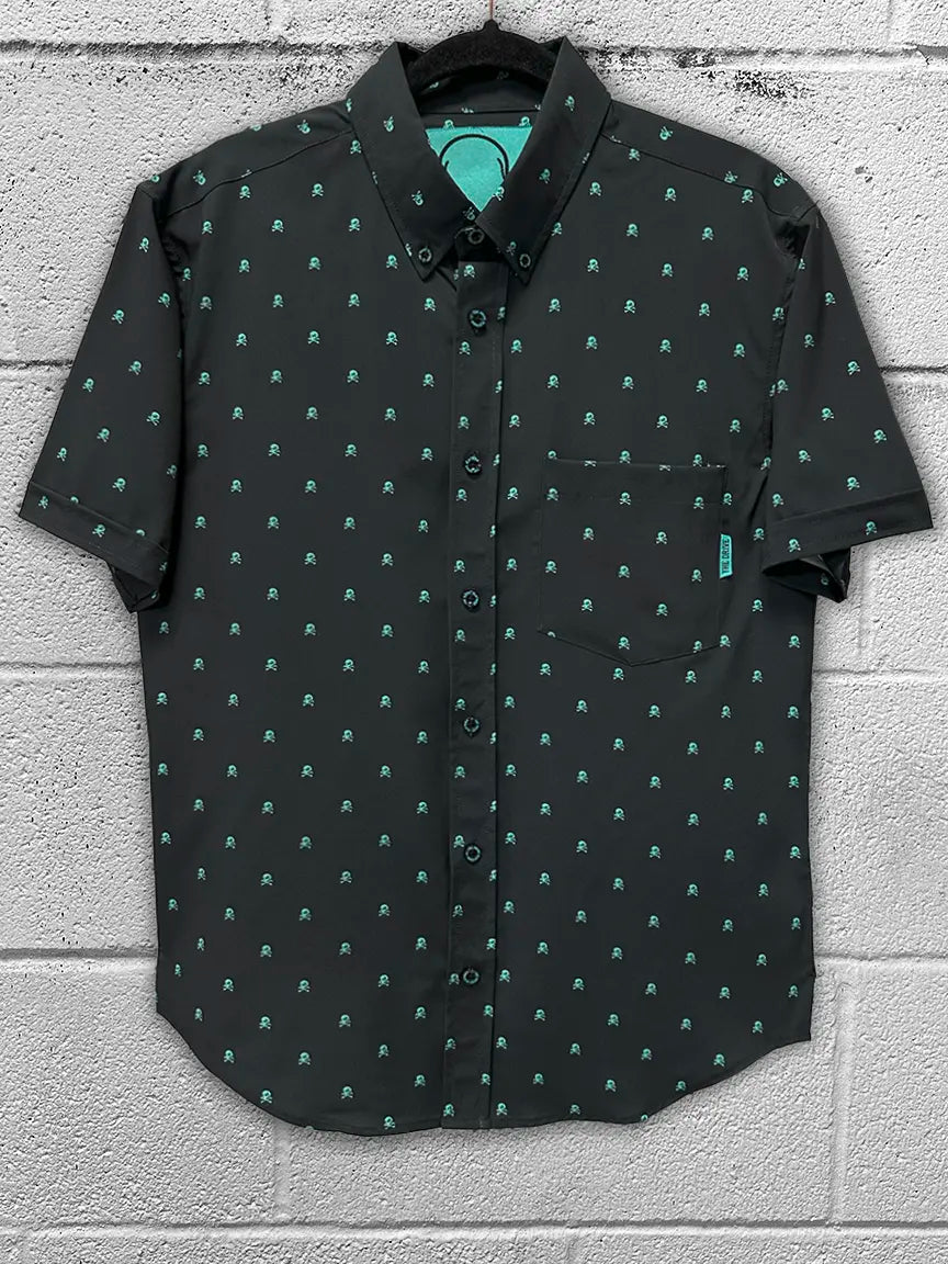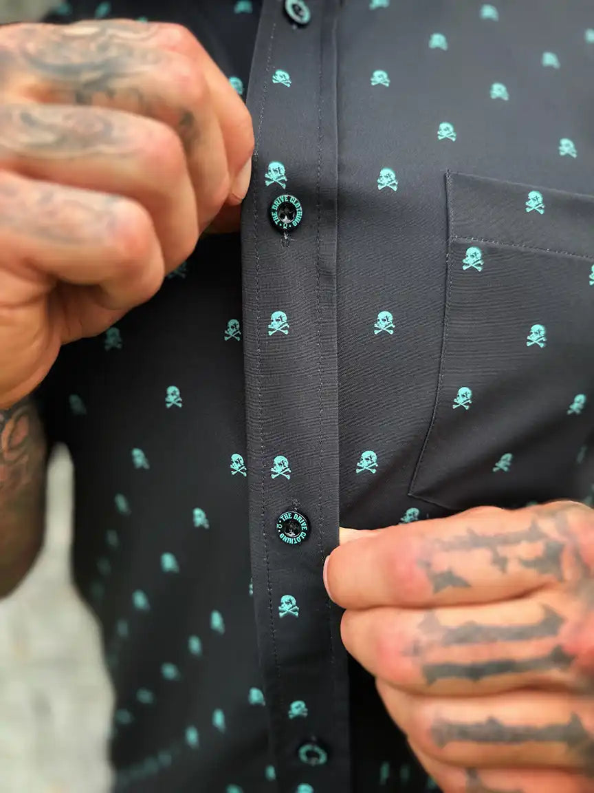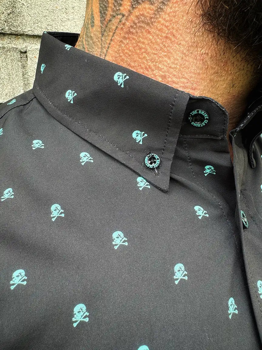 ESSENTIAL INFINITY TURQUOISE SKULL BUTTON UP