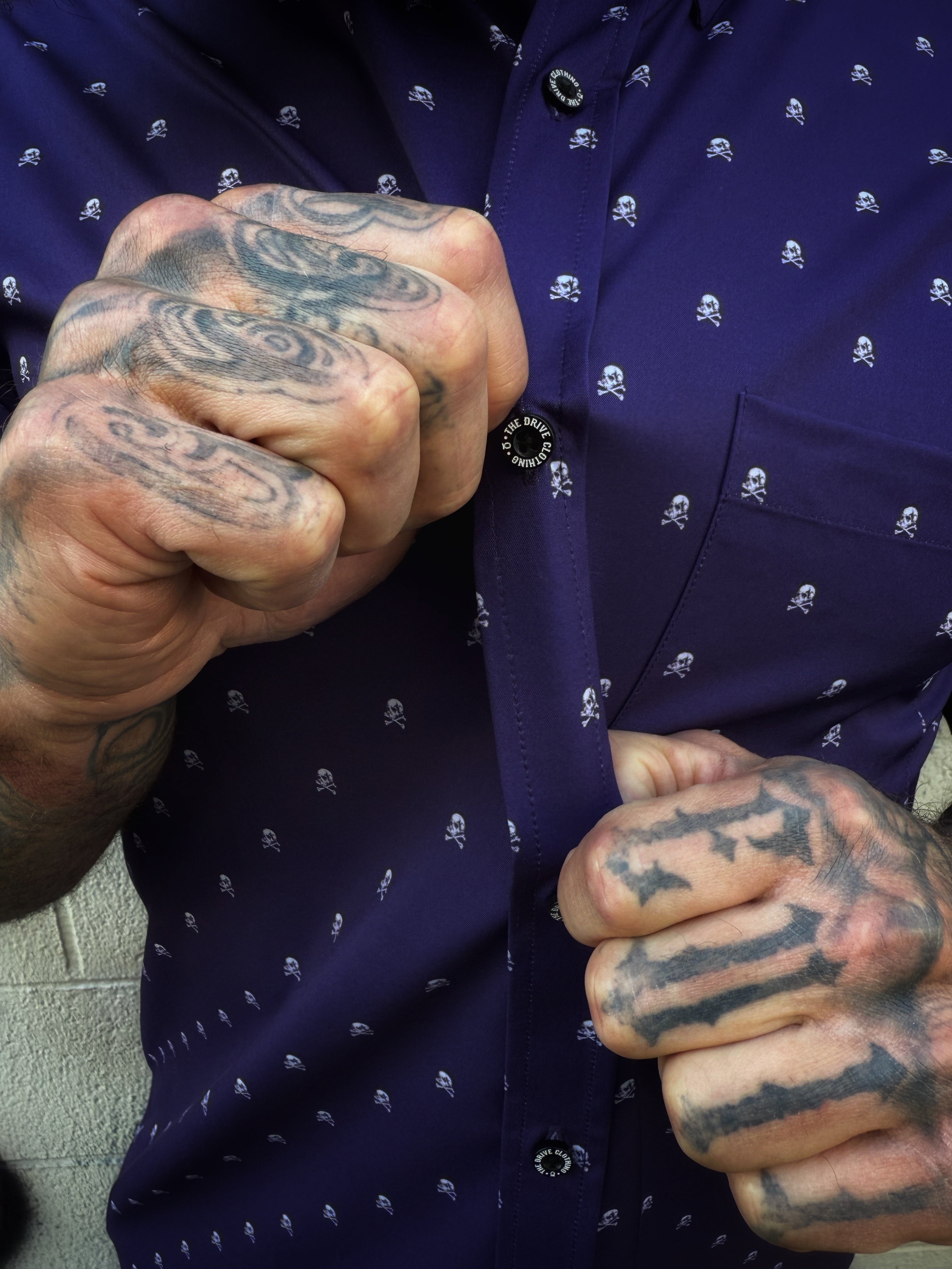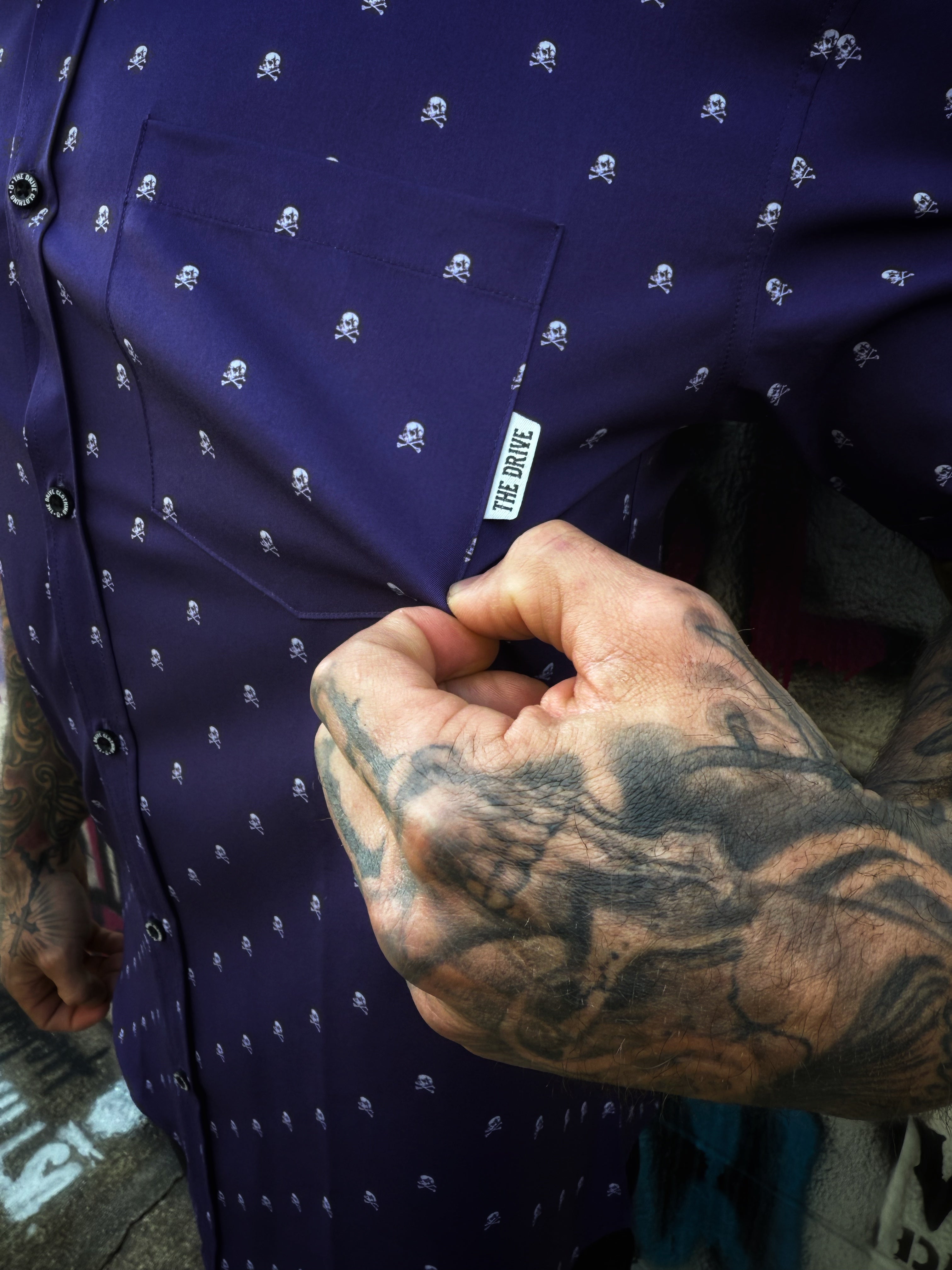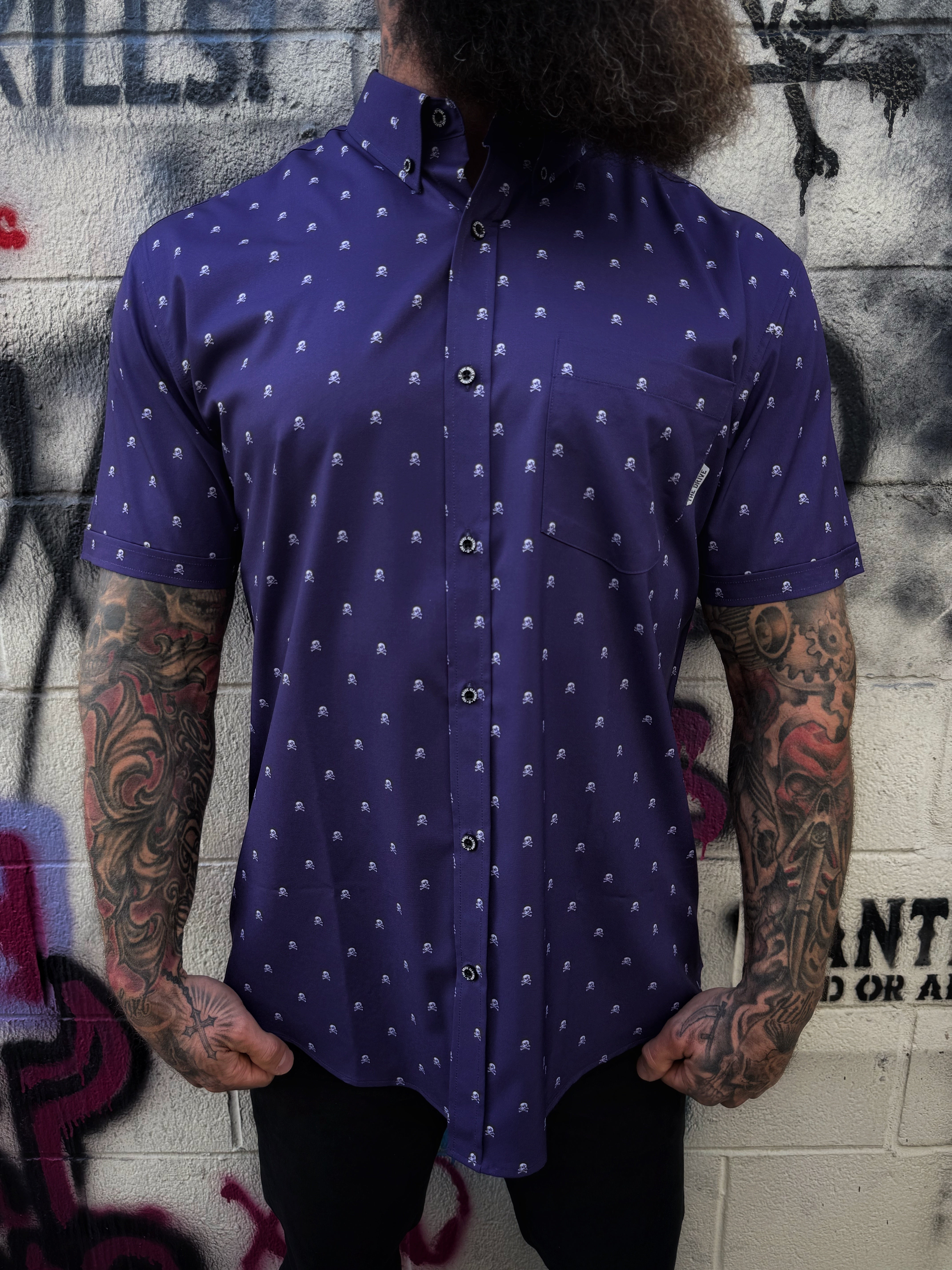 ESSENTIAL PURPLE INFINITY SKULL BUTTON UP