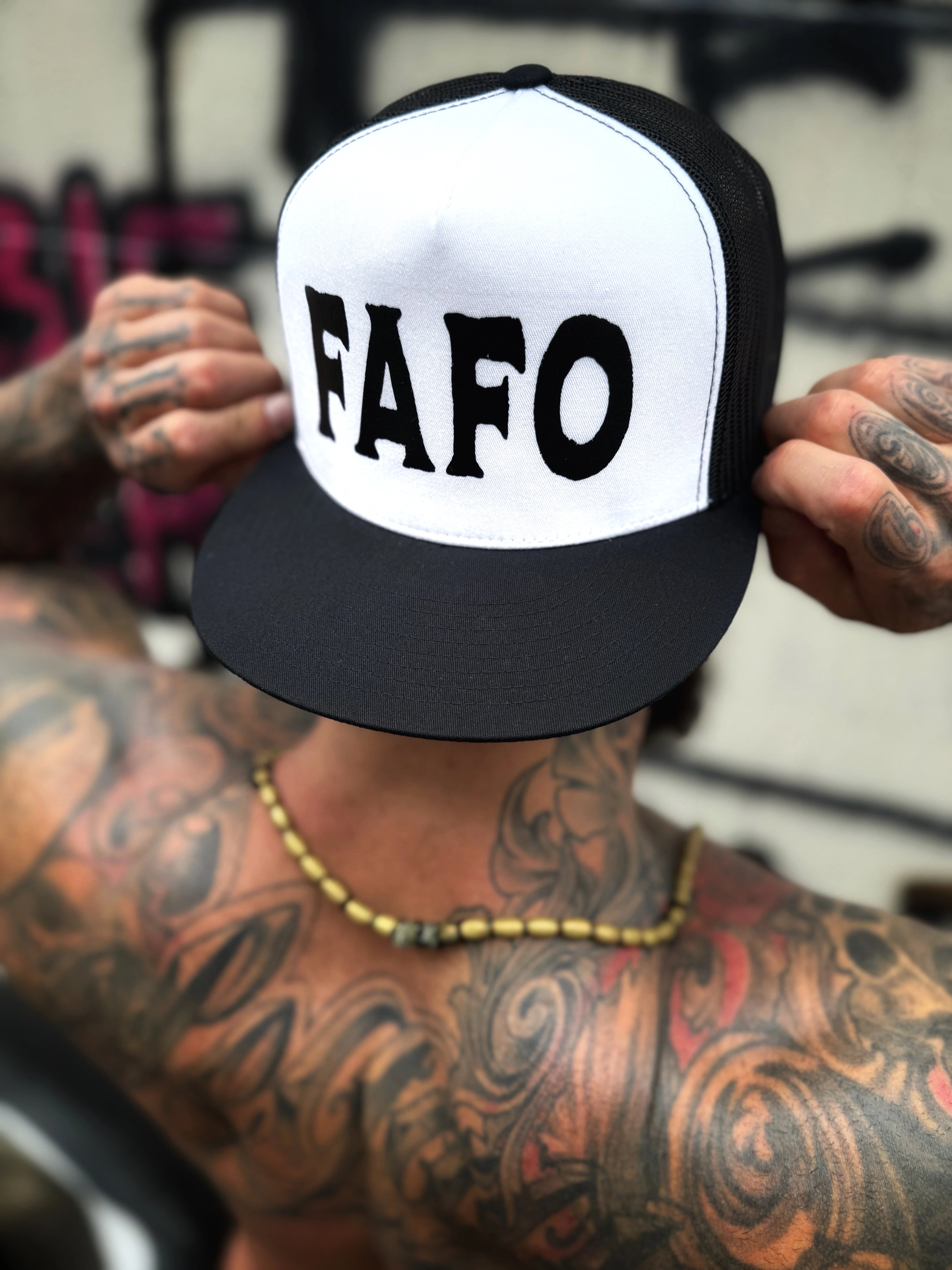 FAFO BLACK AND WHITE FLAT BILL HAT