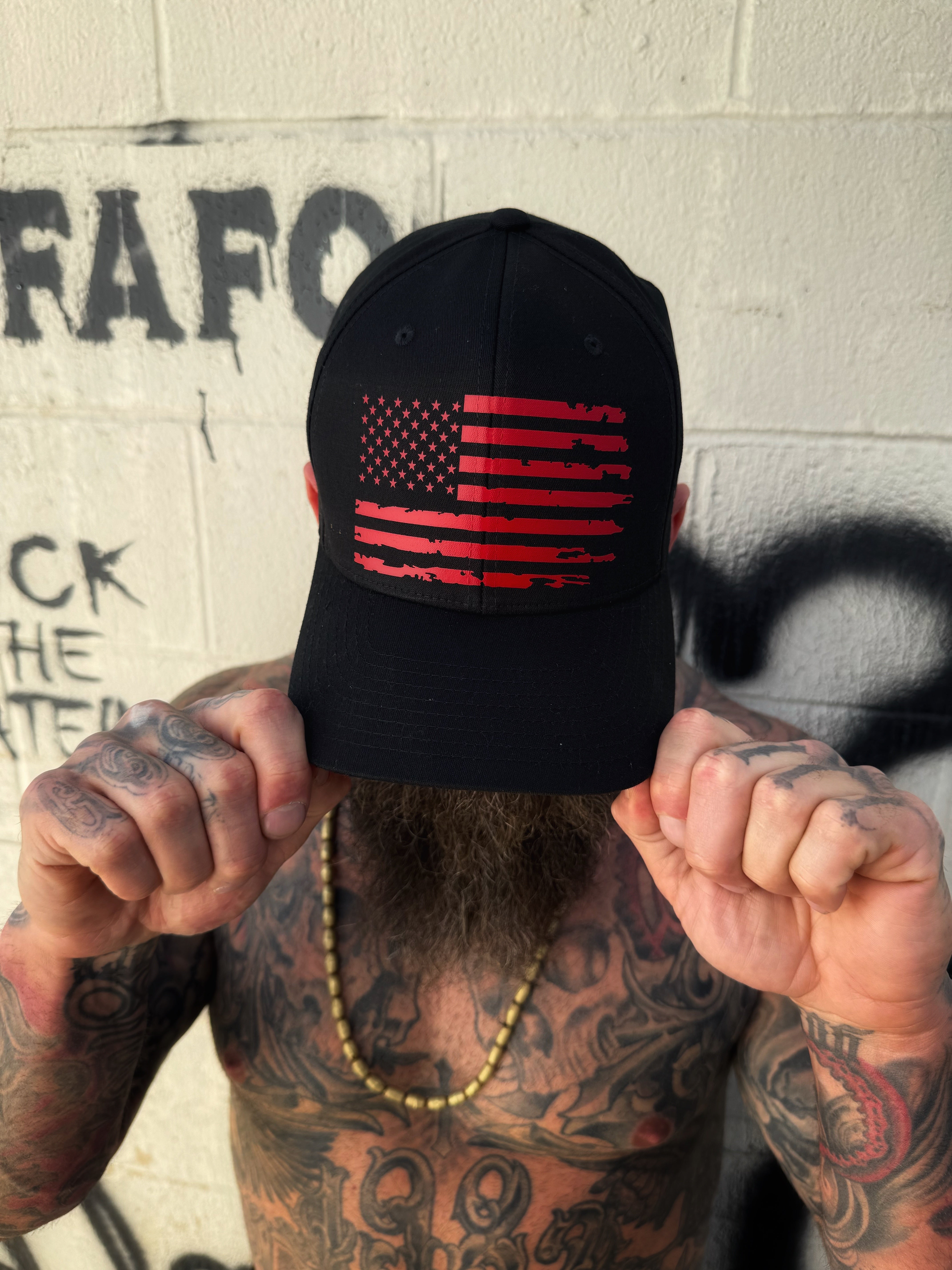 FAFO RED ON BLACK BACK STYLE FLEXFIT COTTON HAT