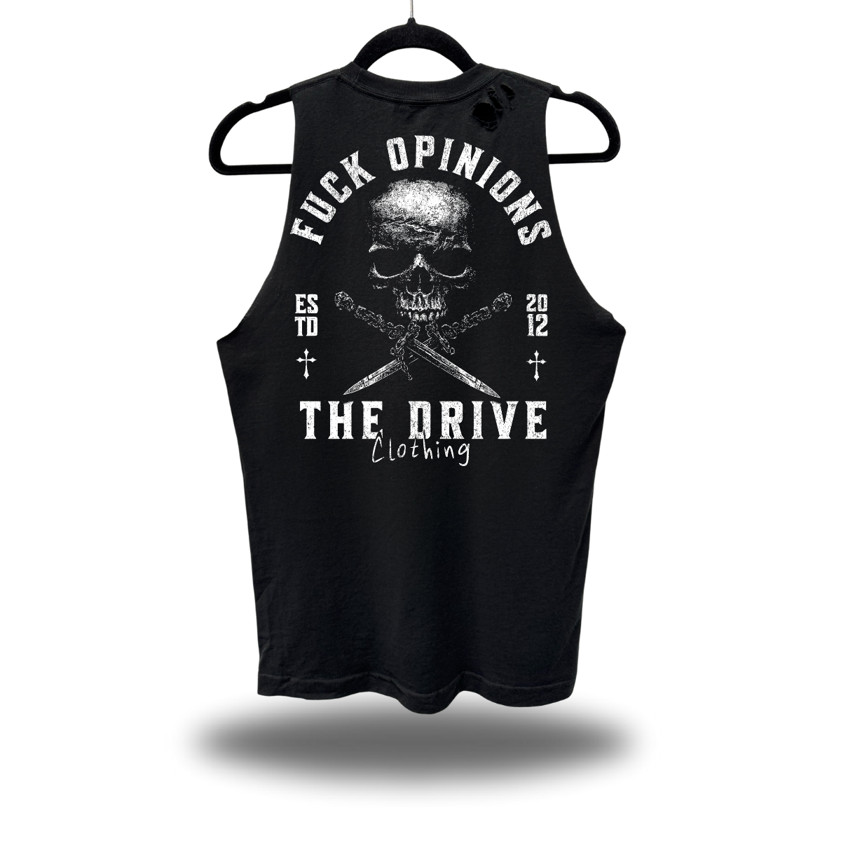 FUCK OPINIONS ROAD RASH BLACK TANK TOP