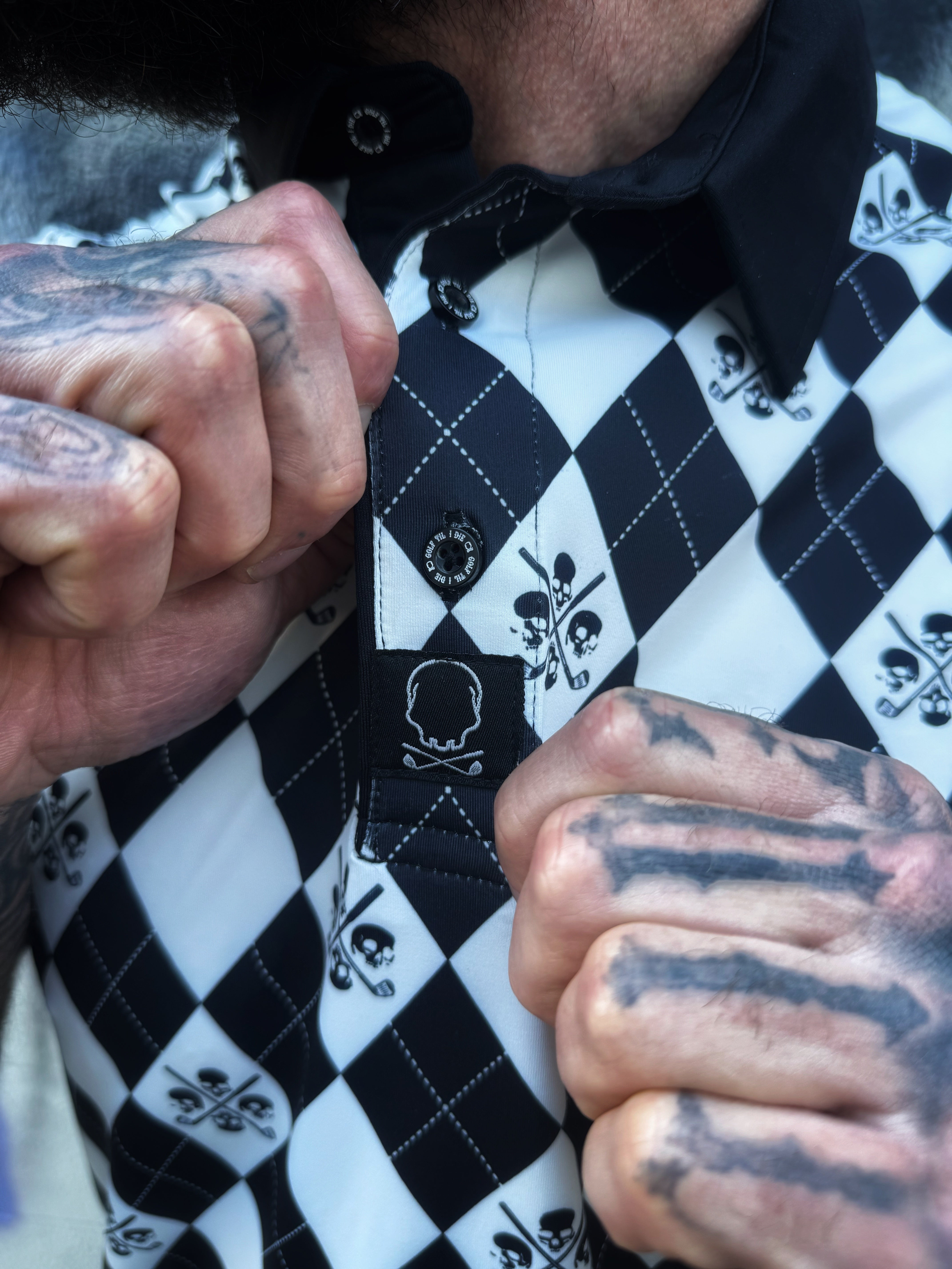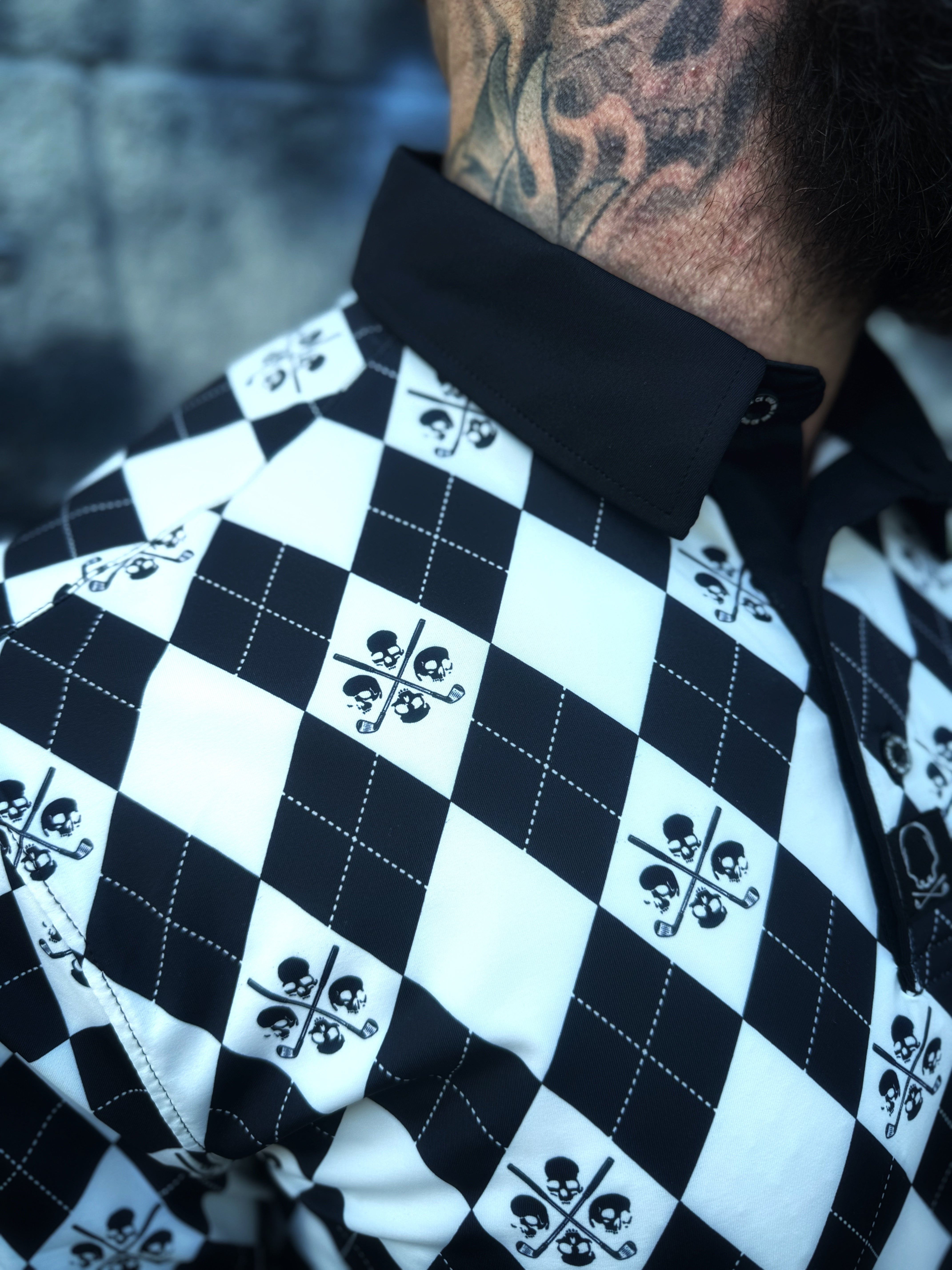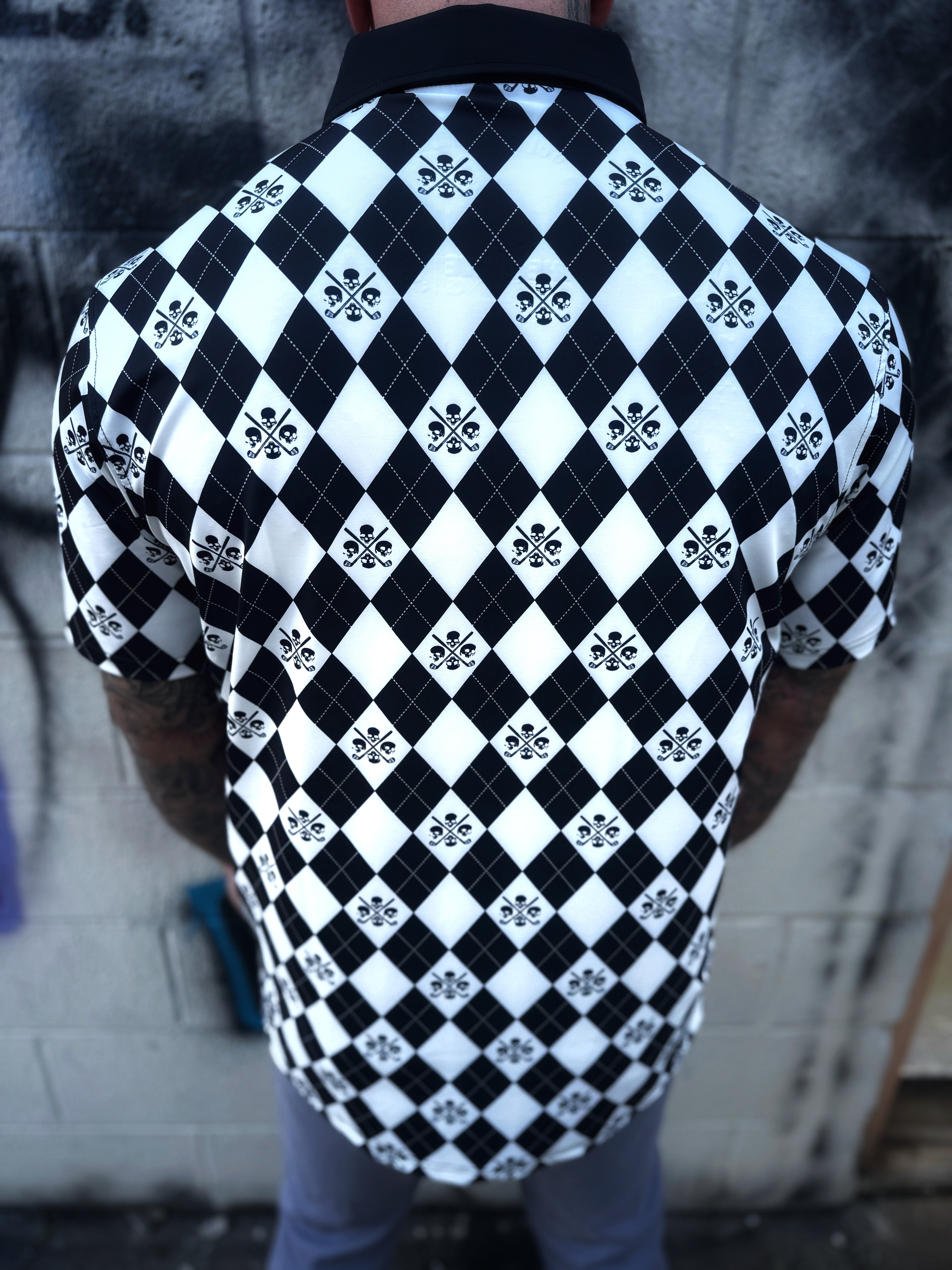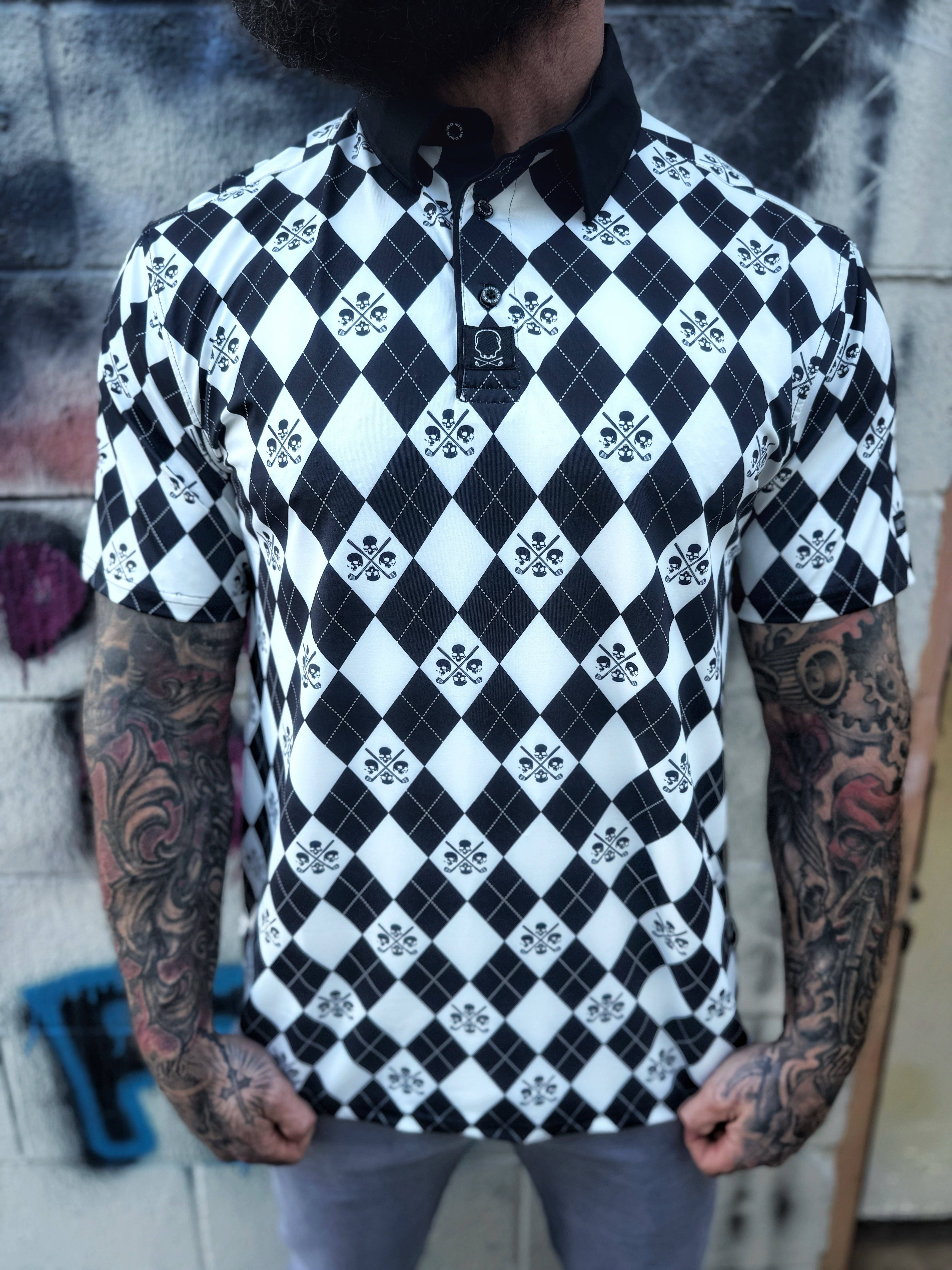 BLACK AND WHITE DIAMOND SKULLS GOLF POLO