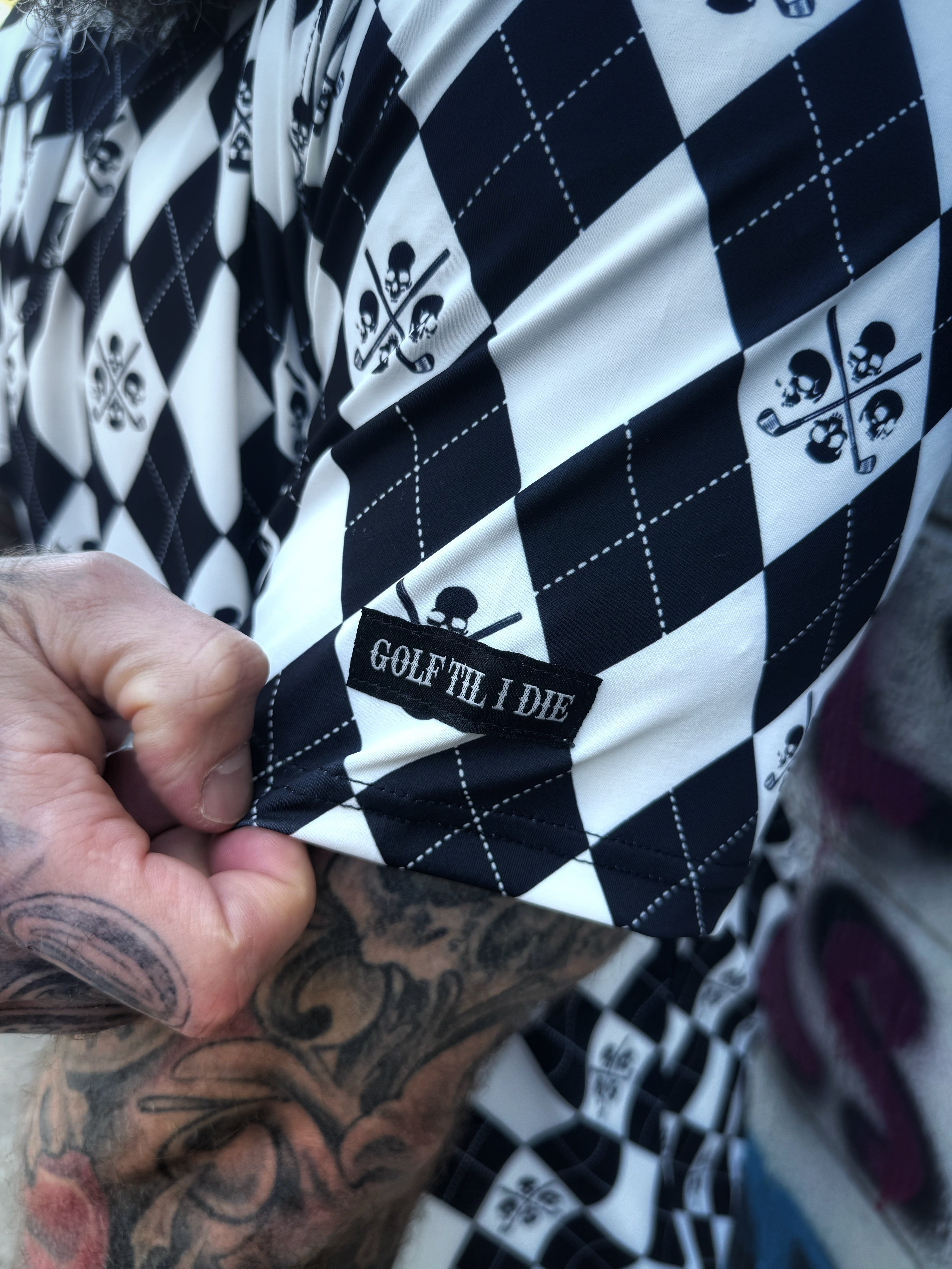 The BLACK AND WHITE DIAMOND SKULLS GOLF POLO phenomenal. Love it.