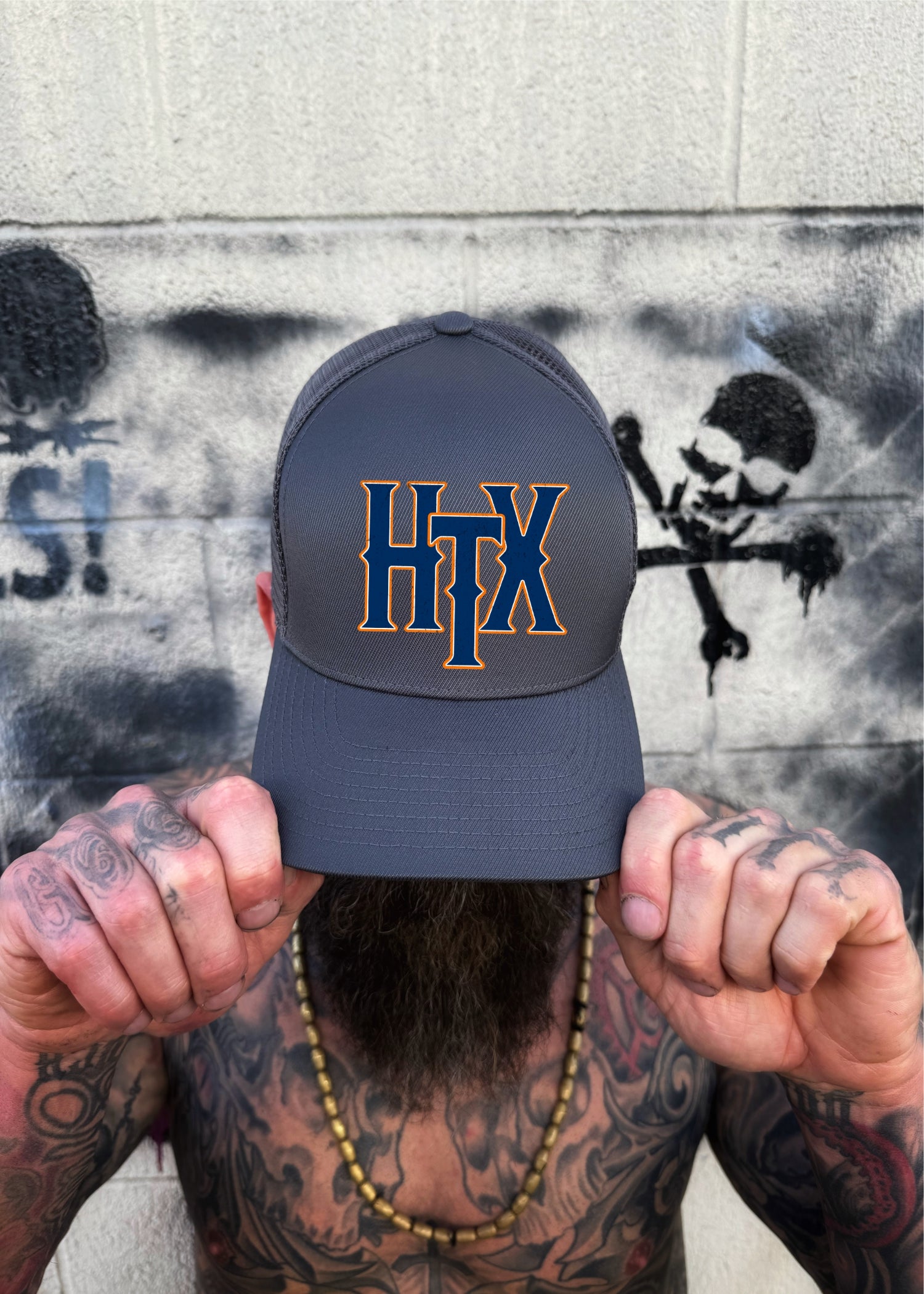 HTX ORANGE & BLUE GREY FLEXFIT HAT
