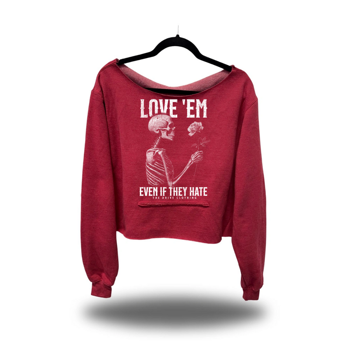 LOVE EM ROAD RASH SLASH X RED CROP WIDENECK HOODIE