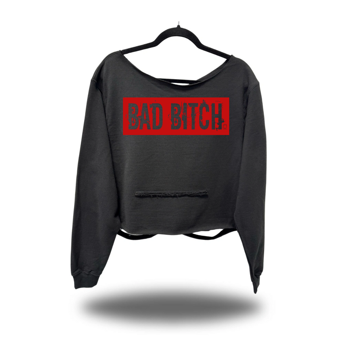 BAD BITCH ROAD RASH SLASH X BLACK CROP WIDENECK HOODIE