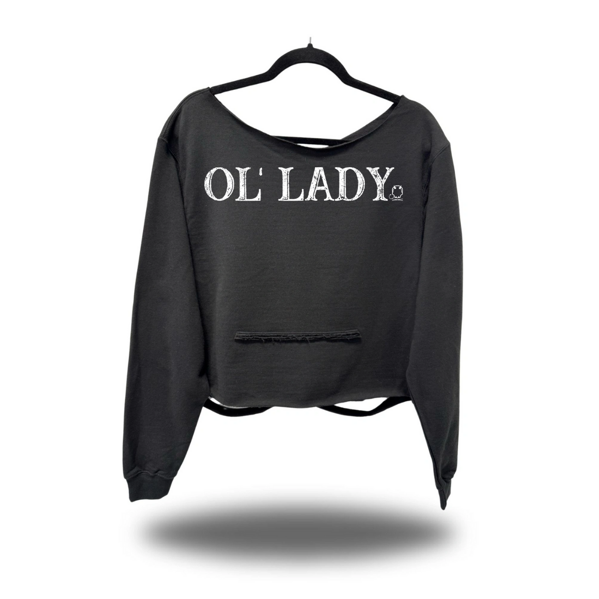 OL LADY ROAD RASH SLASH X BLACK CROP WIDENECK HOODIE