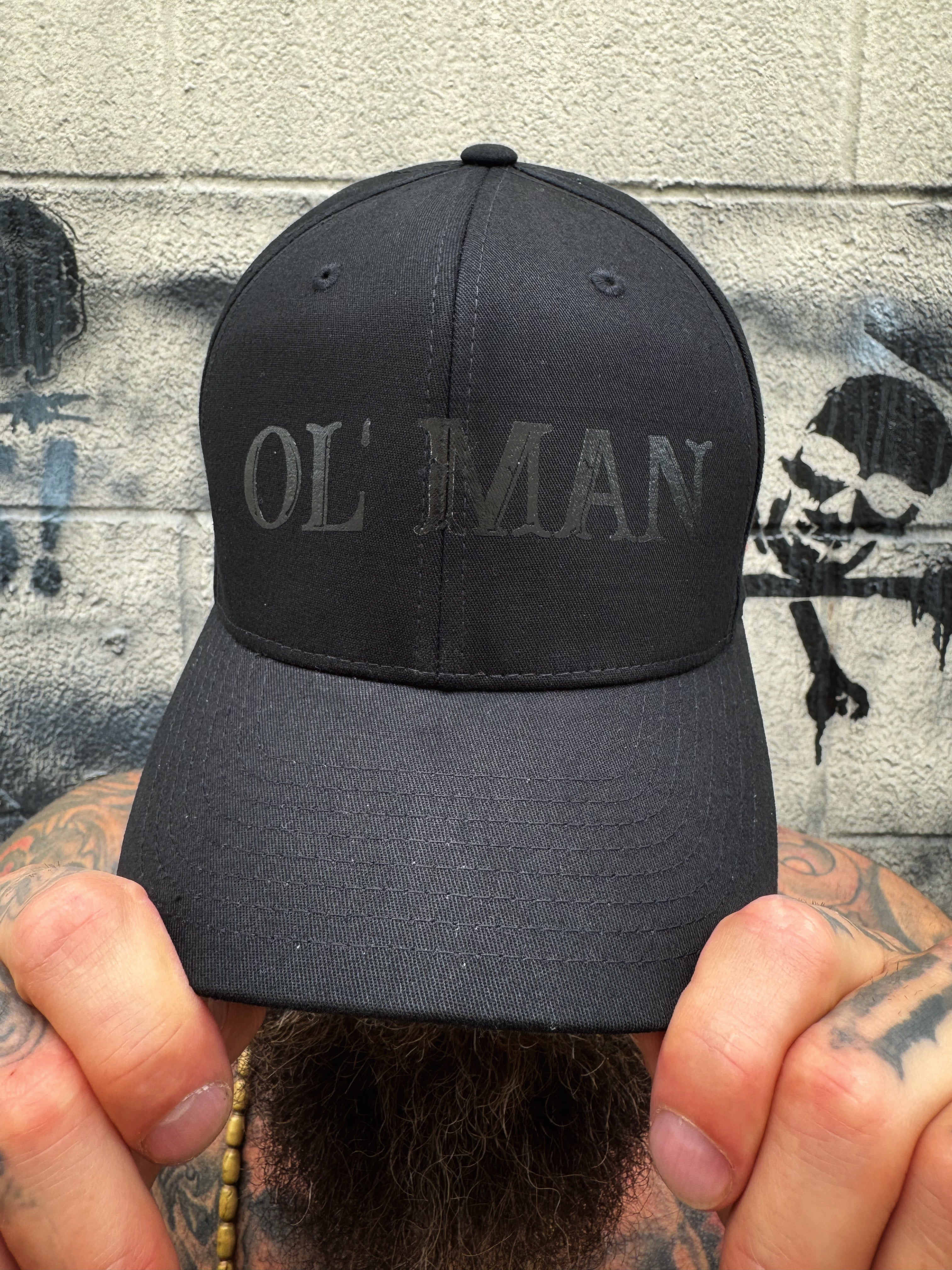 OL MAN BLACK ON BLACK FLEXFIT COTTON HAT
