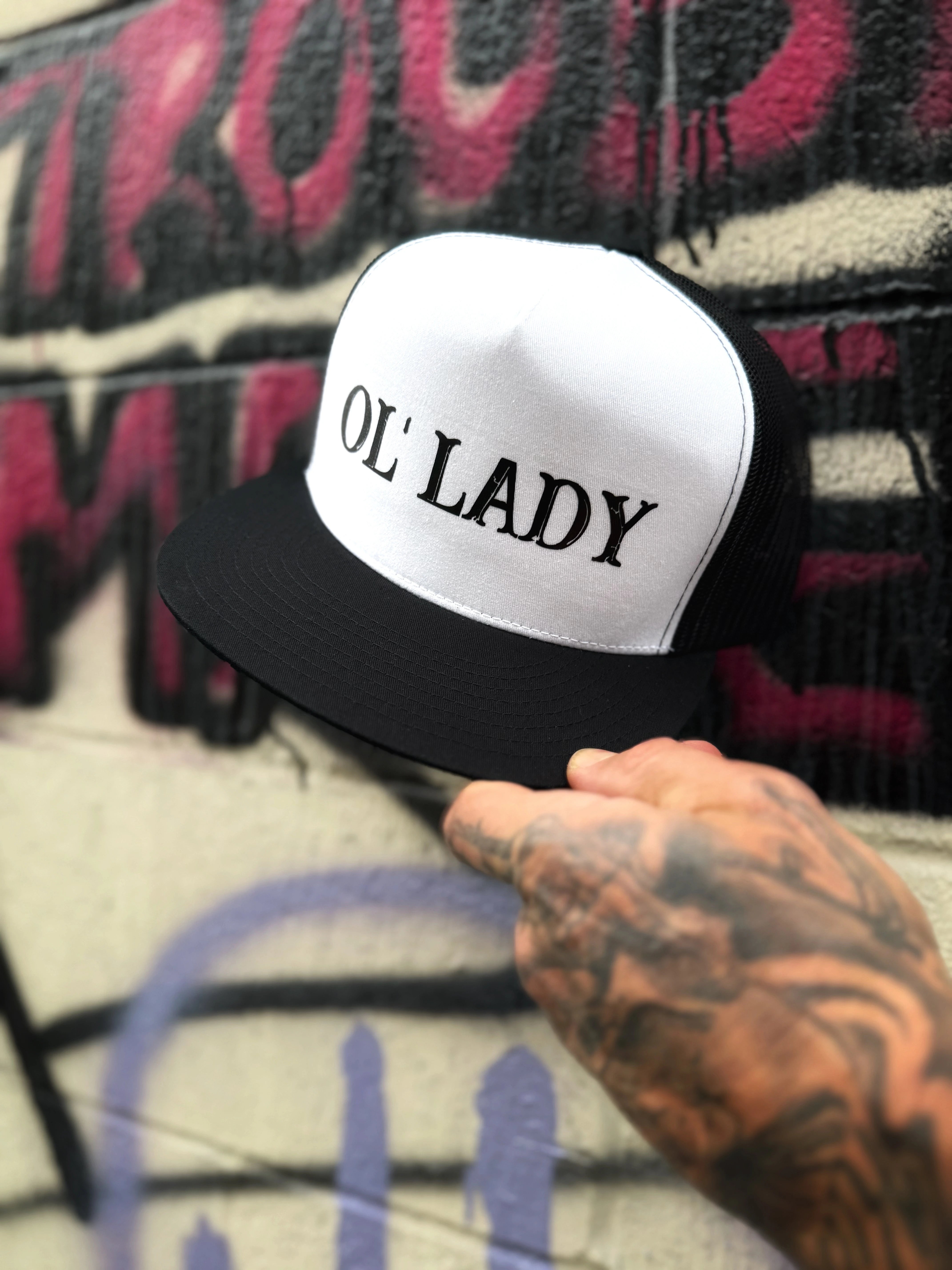 OL' LADY BLACK & WHITE FLAT BILL HAT
