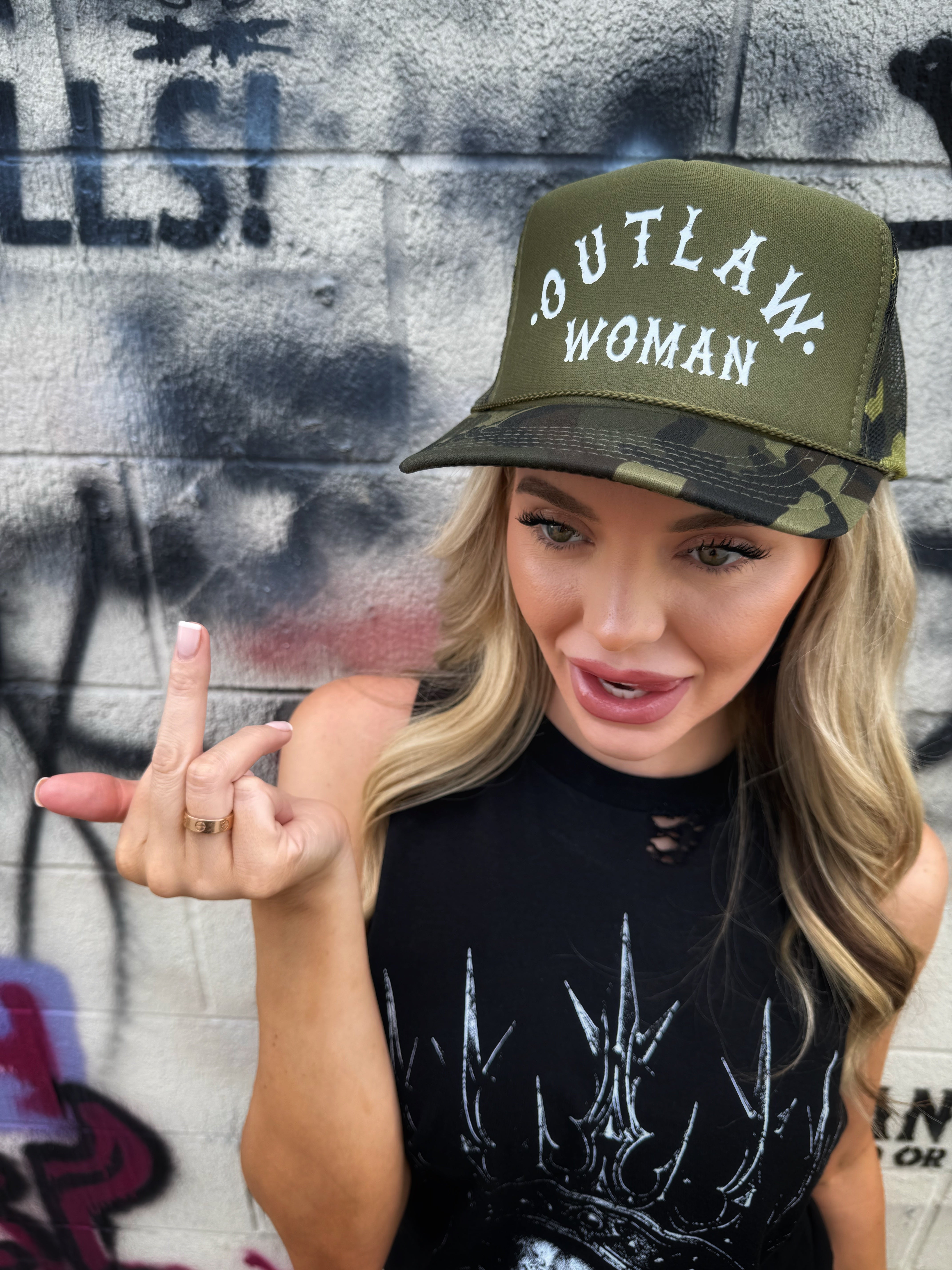 OUTLAW WOMAN FOAM CURVED BILL GREEN CAMO HAT