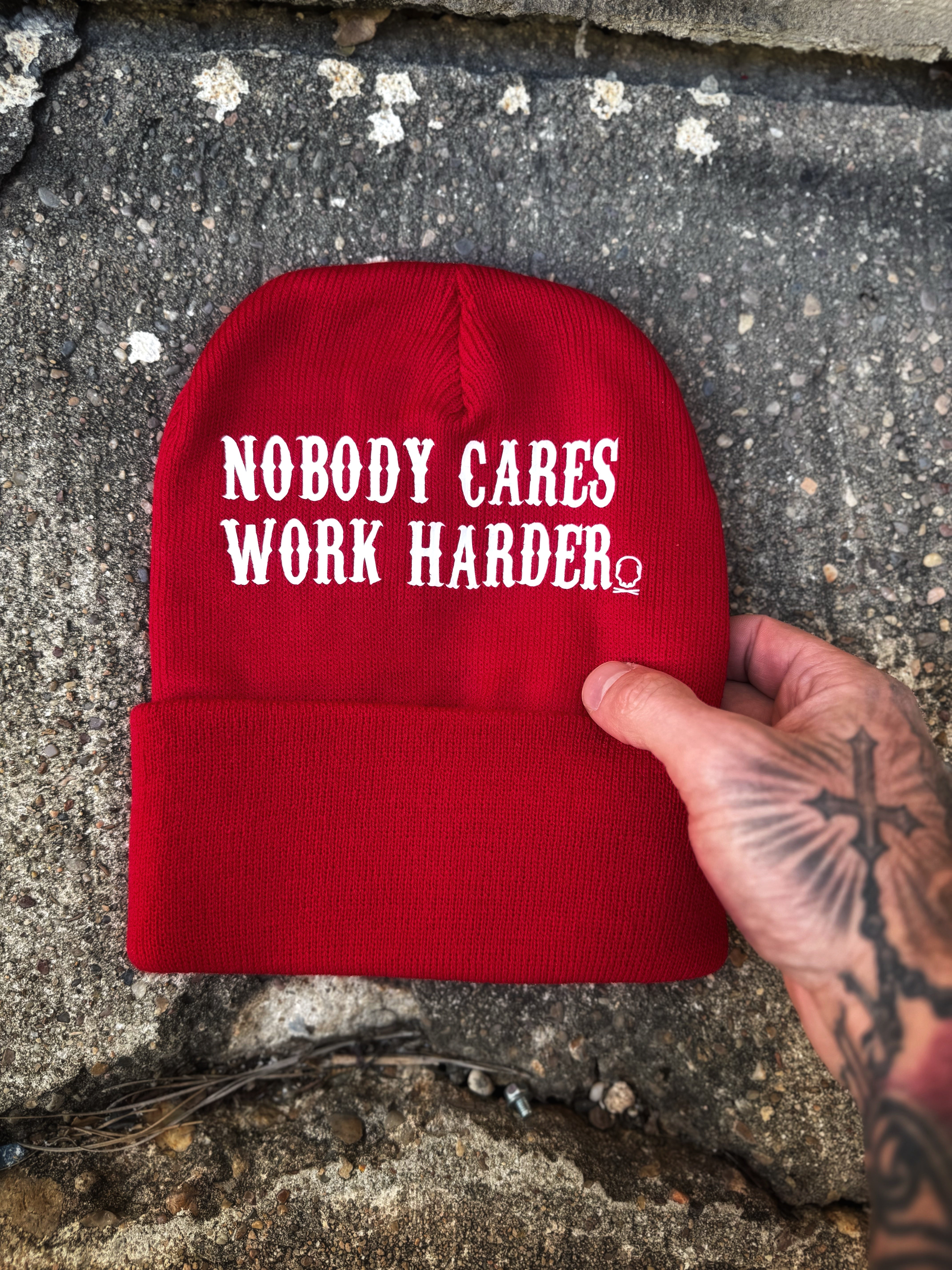 RED NOBODY CARES BEANIE