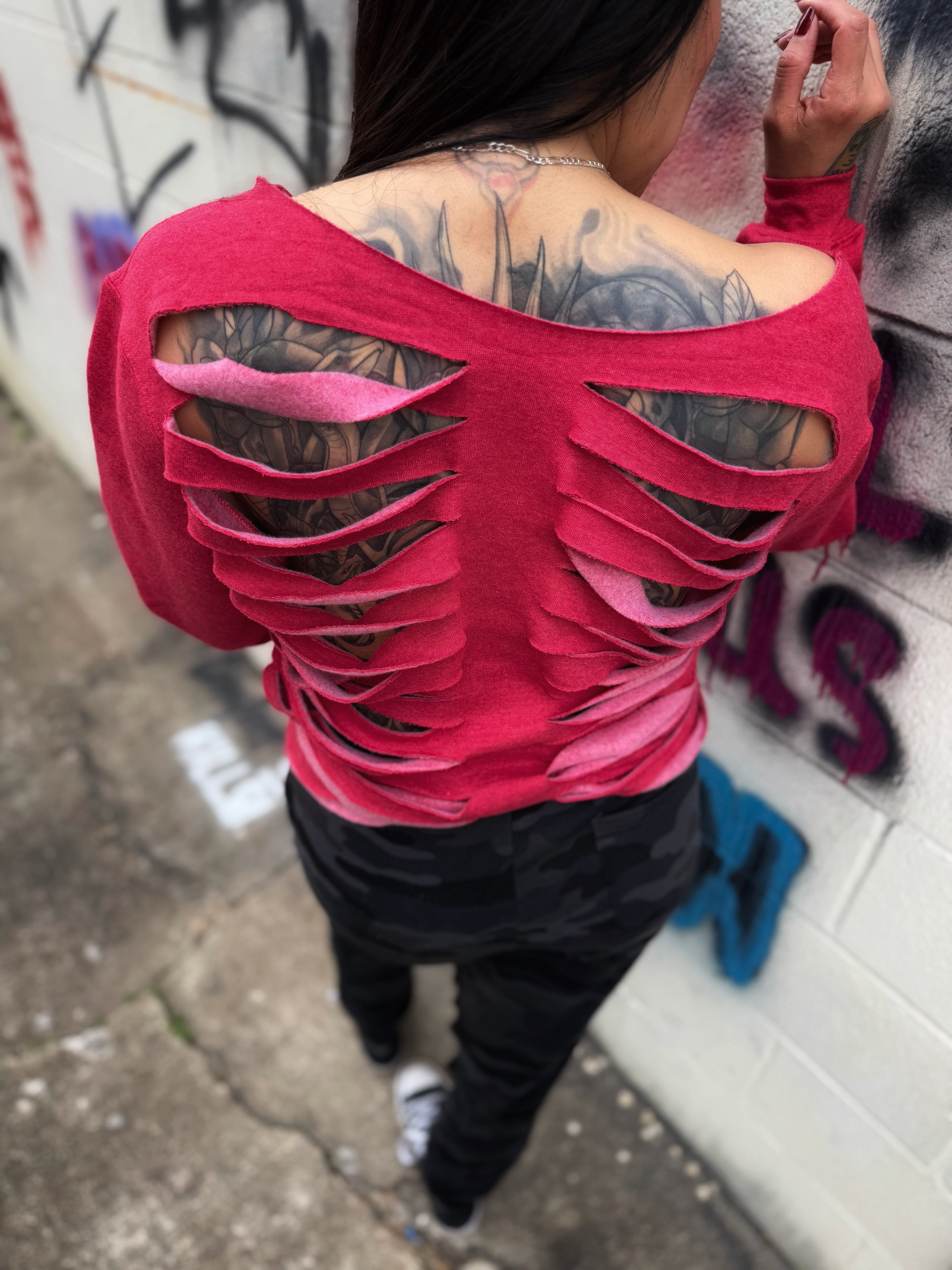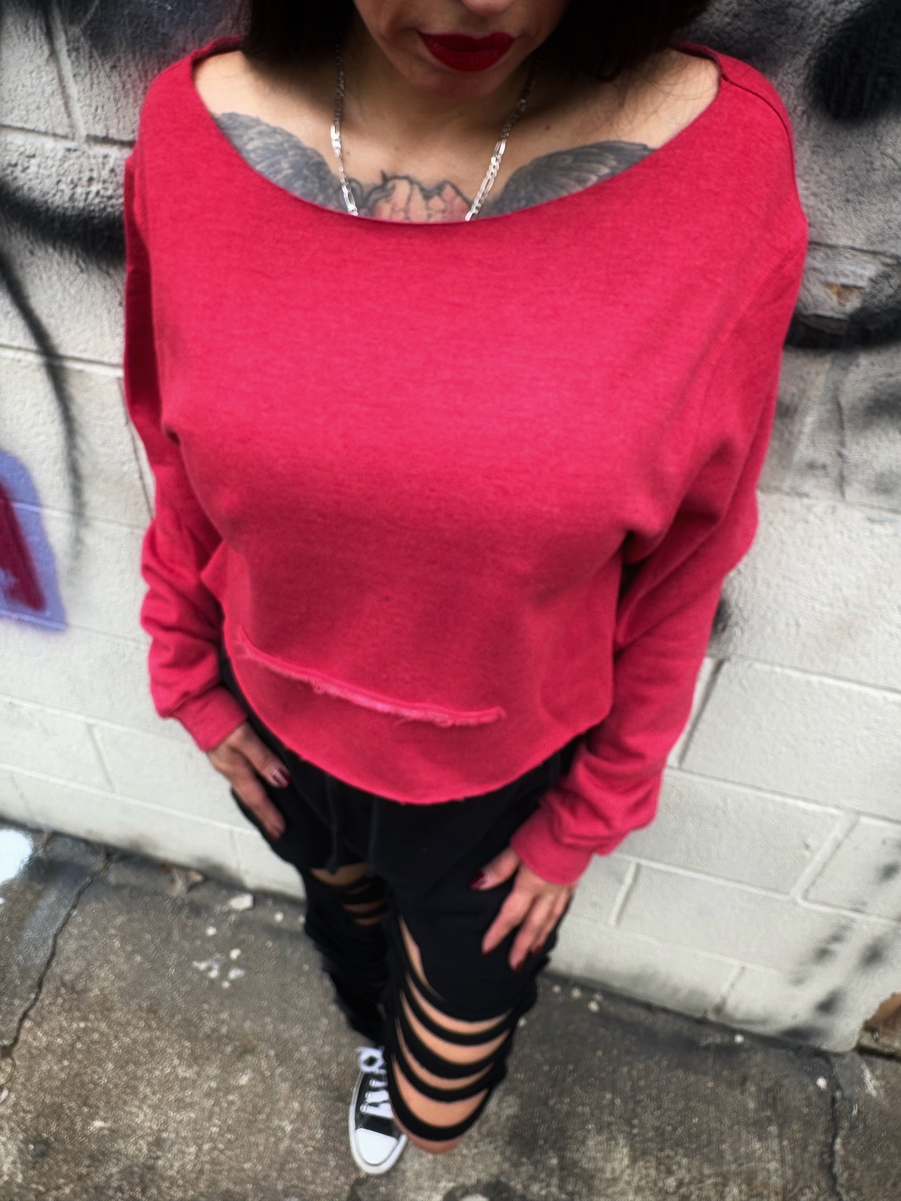 RED ROAD RASH WIDENECK CROP TOP SWEATER 1.0