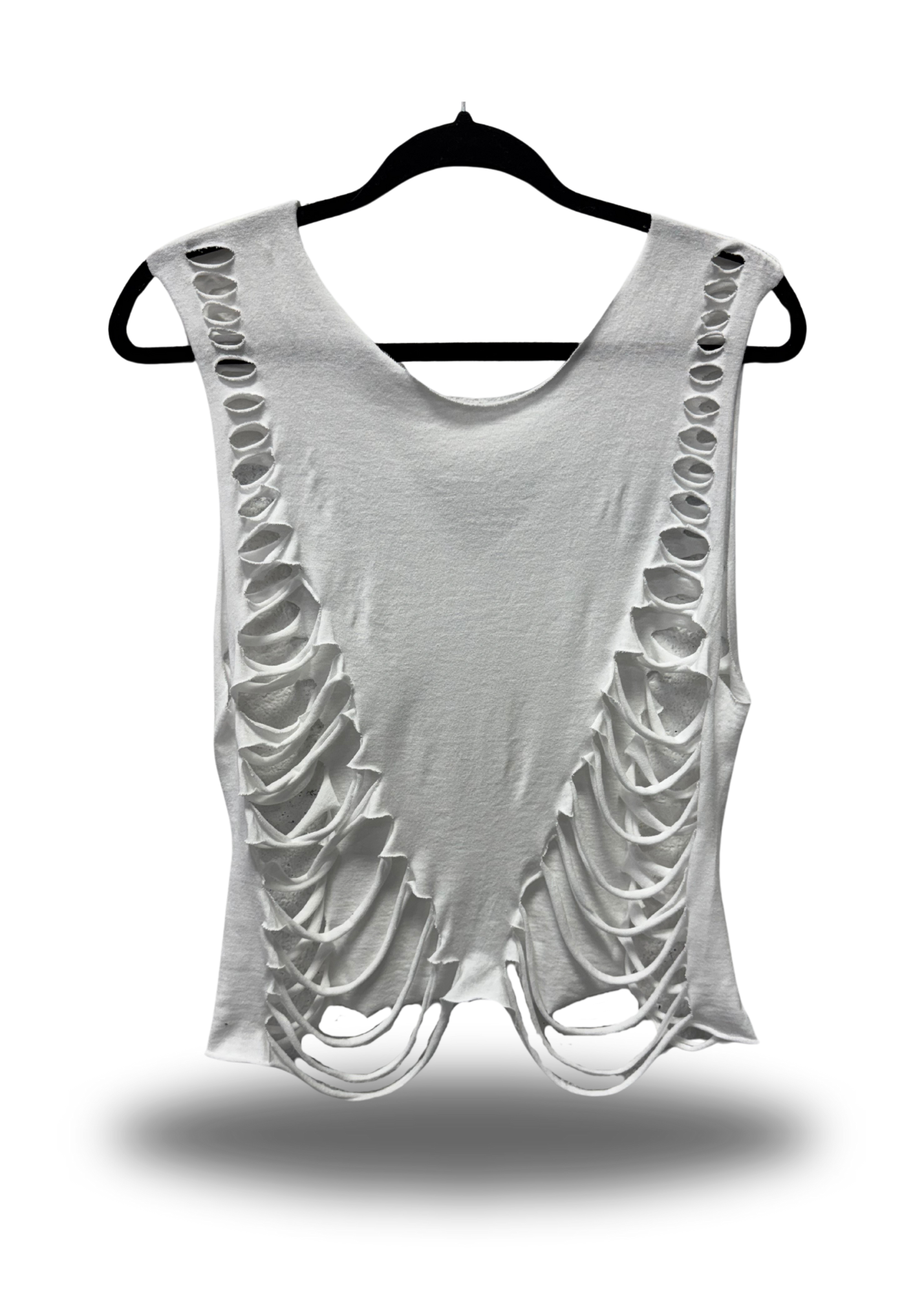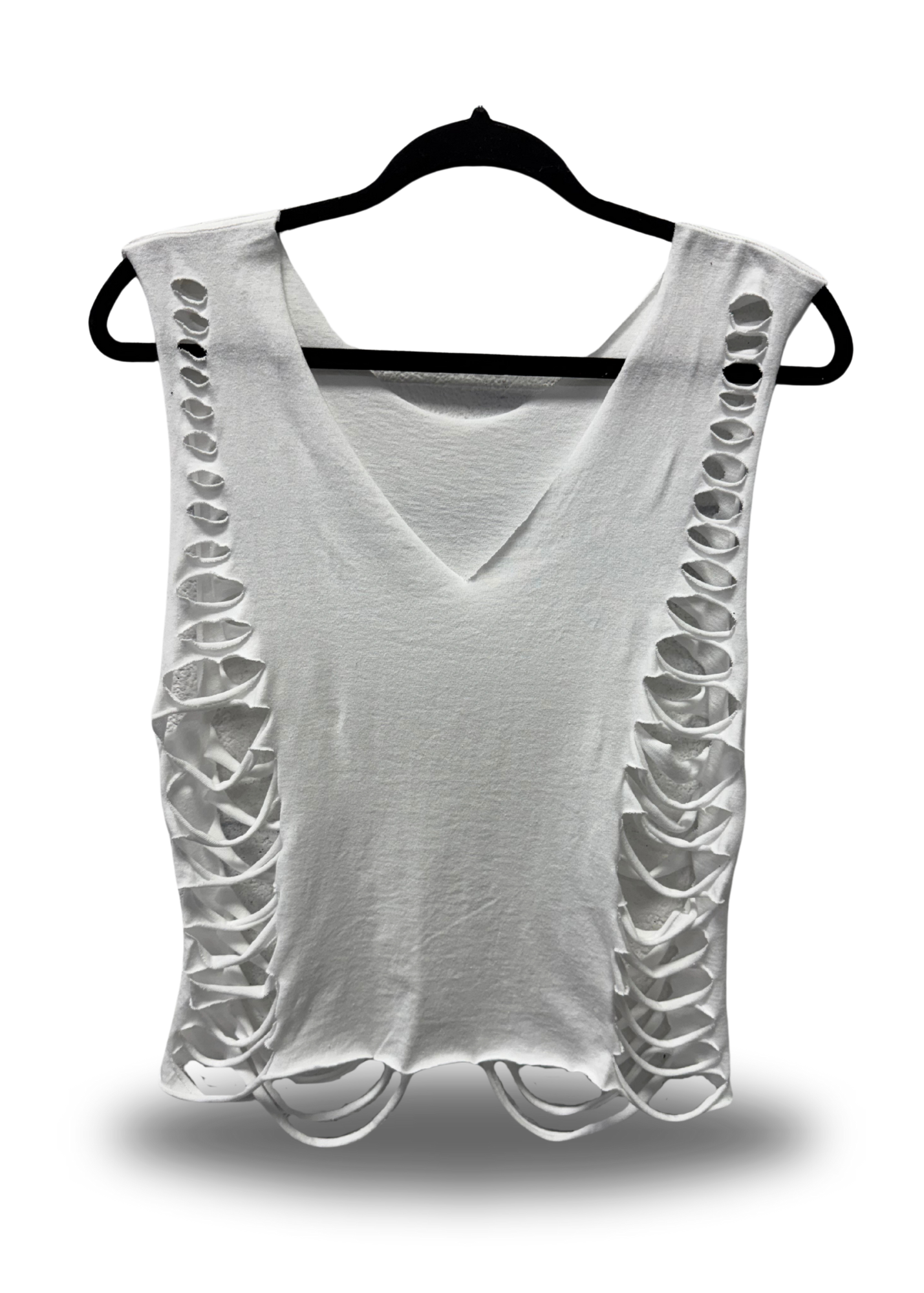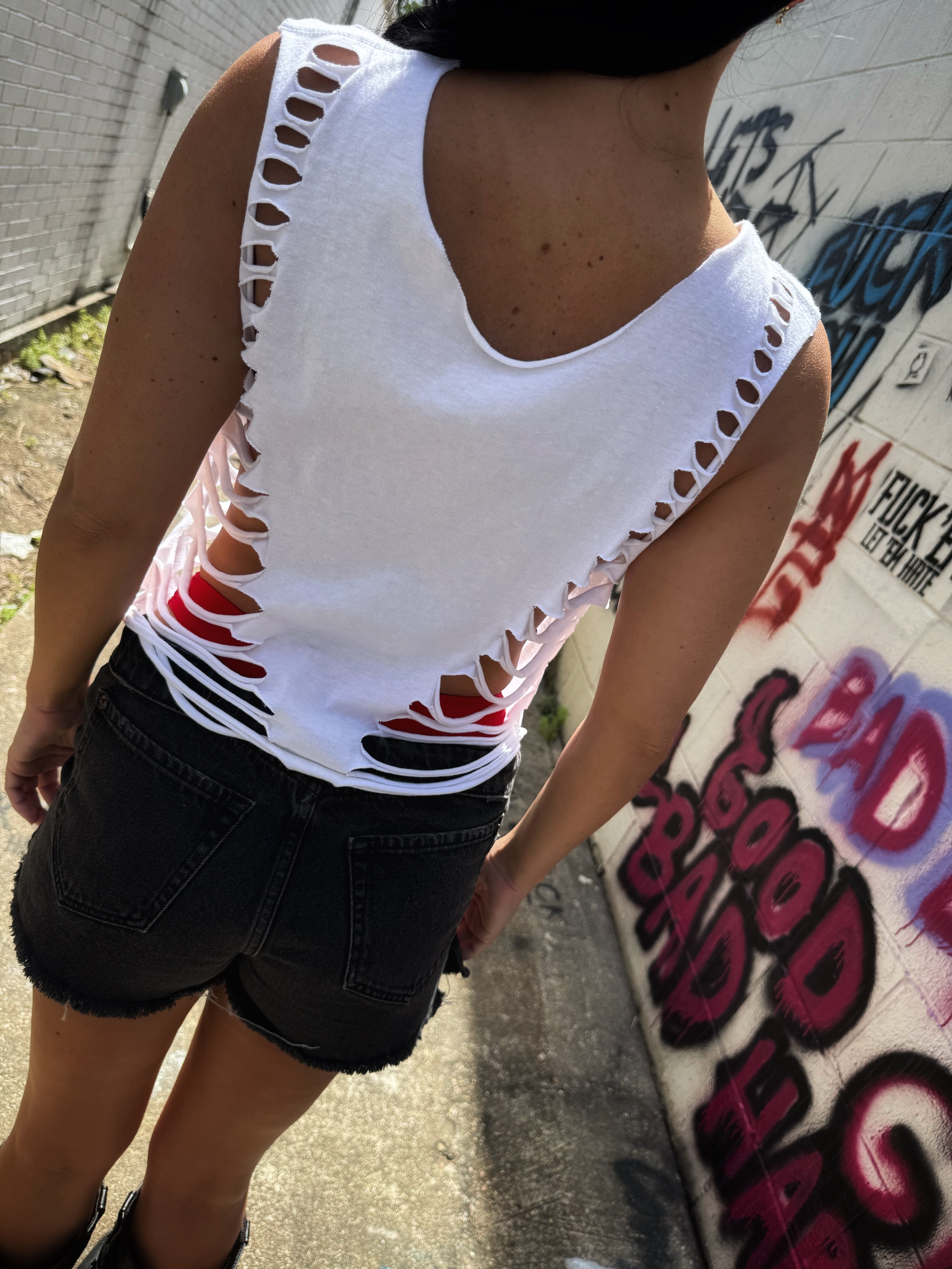 ROAD RASH V CUT SIDE WHITE CROP TANK TOP