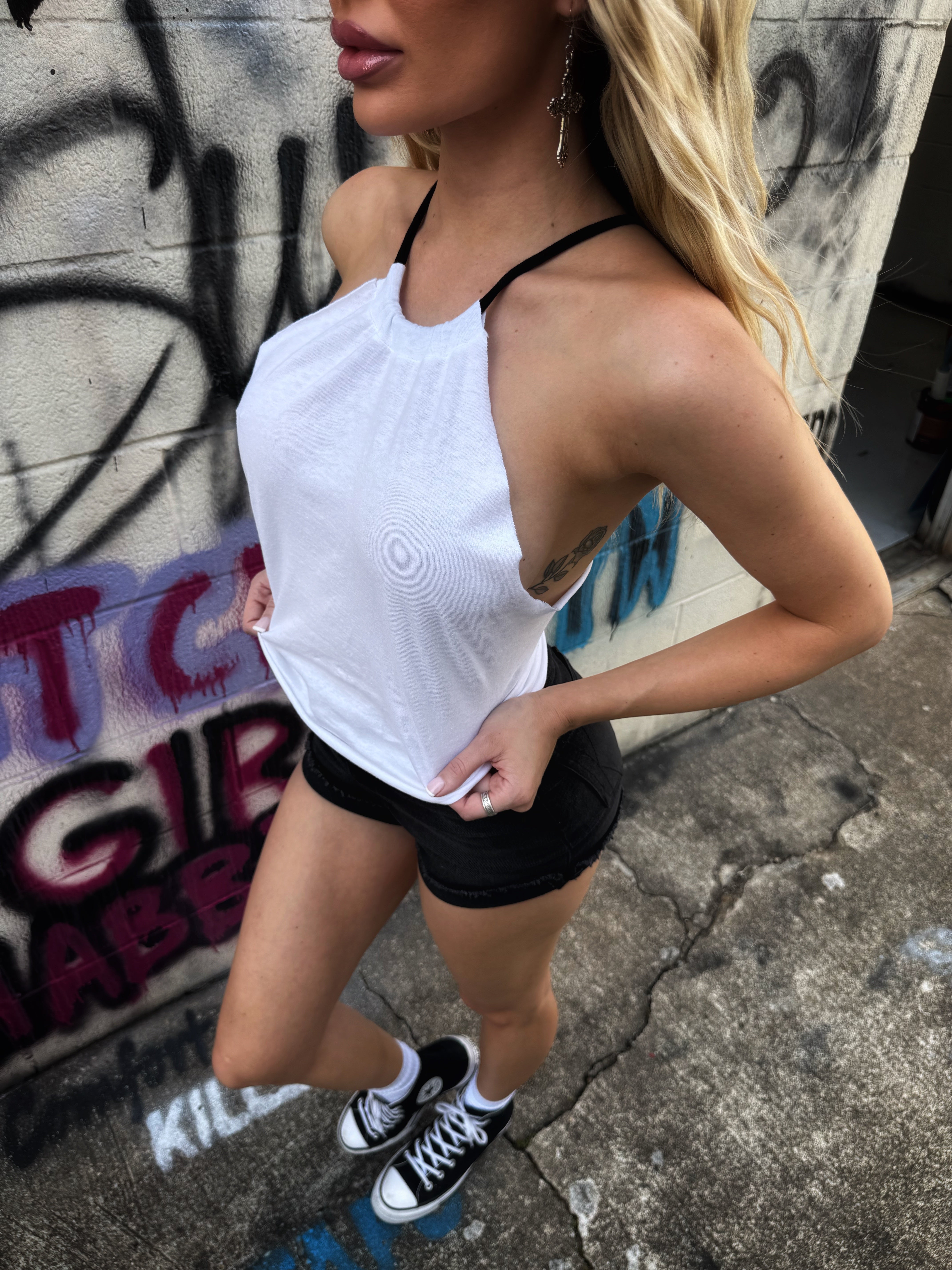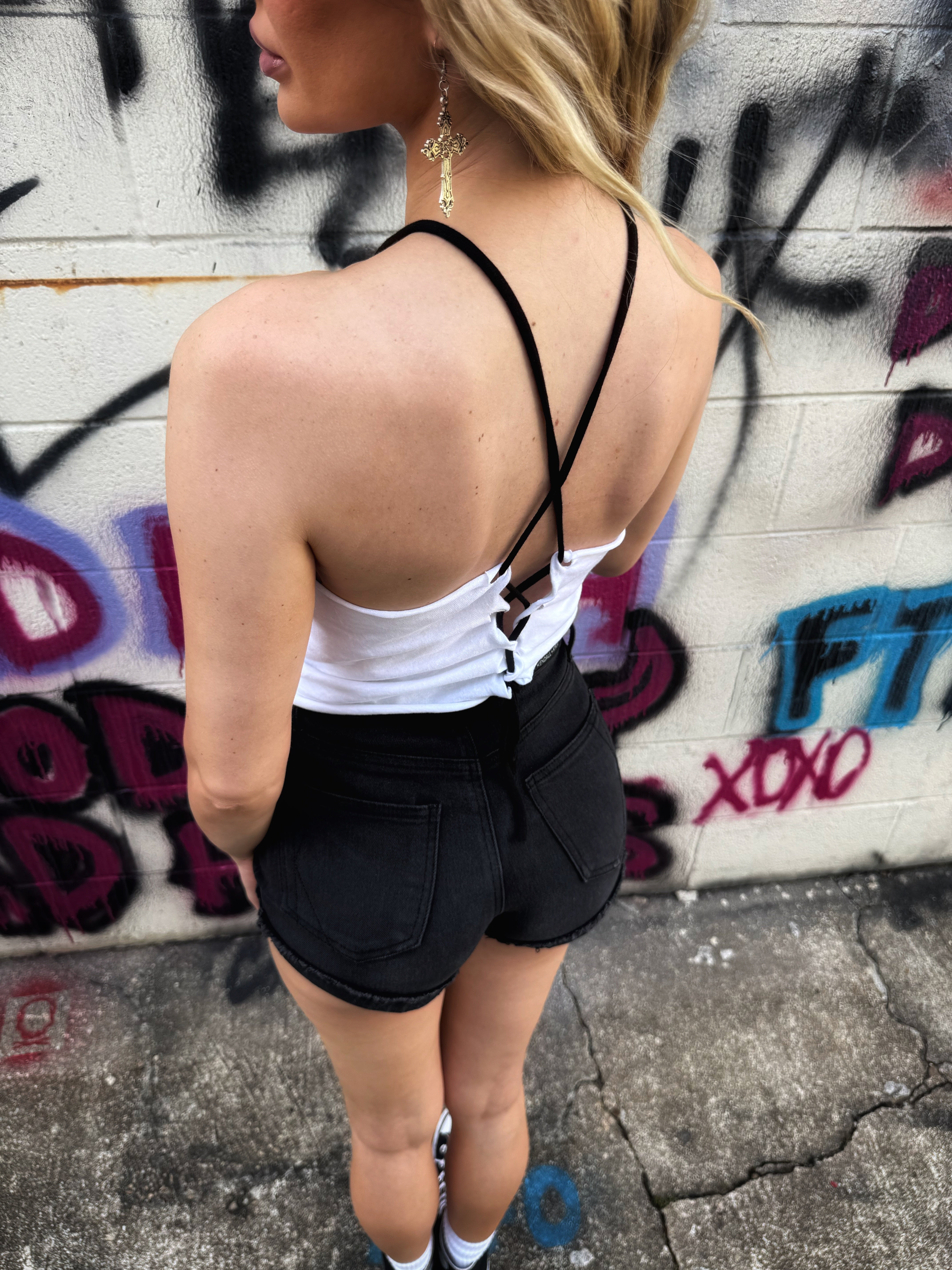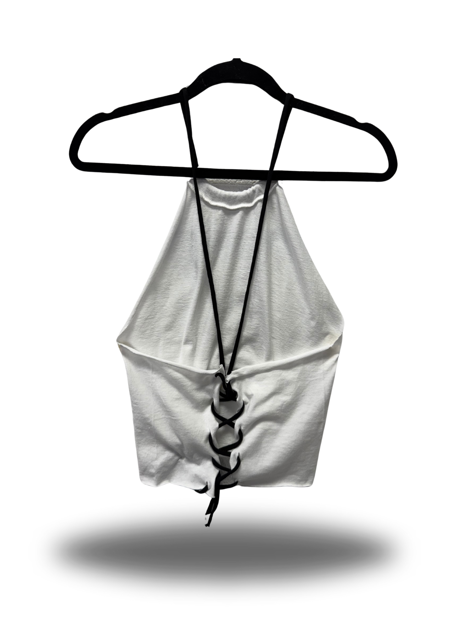 ROAD RASH BACK LACE UP WHITE CROP TANK