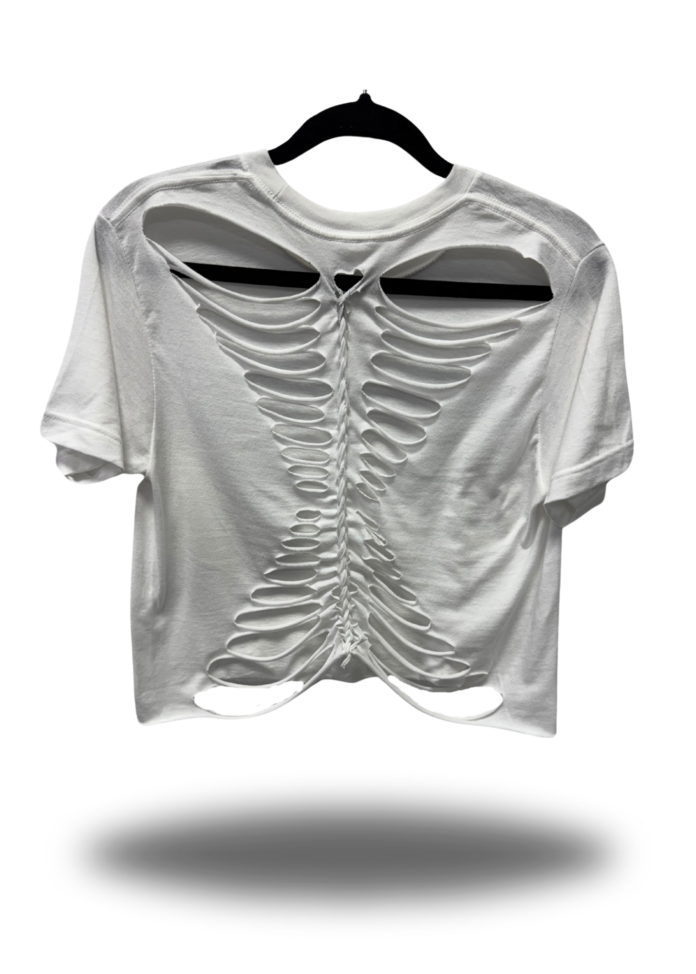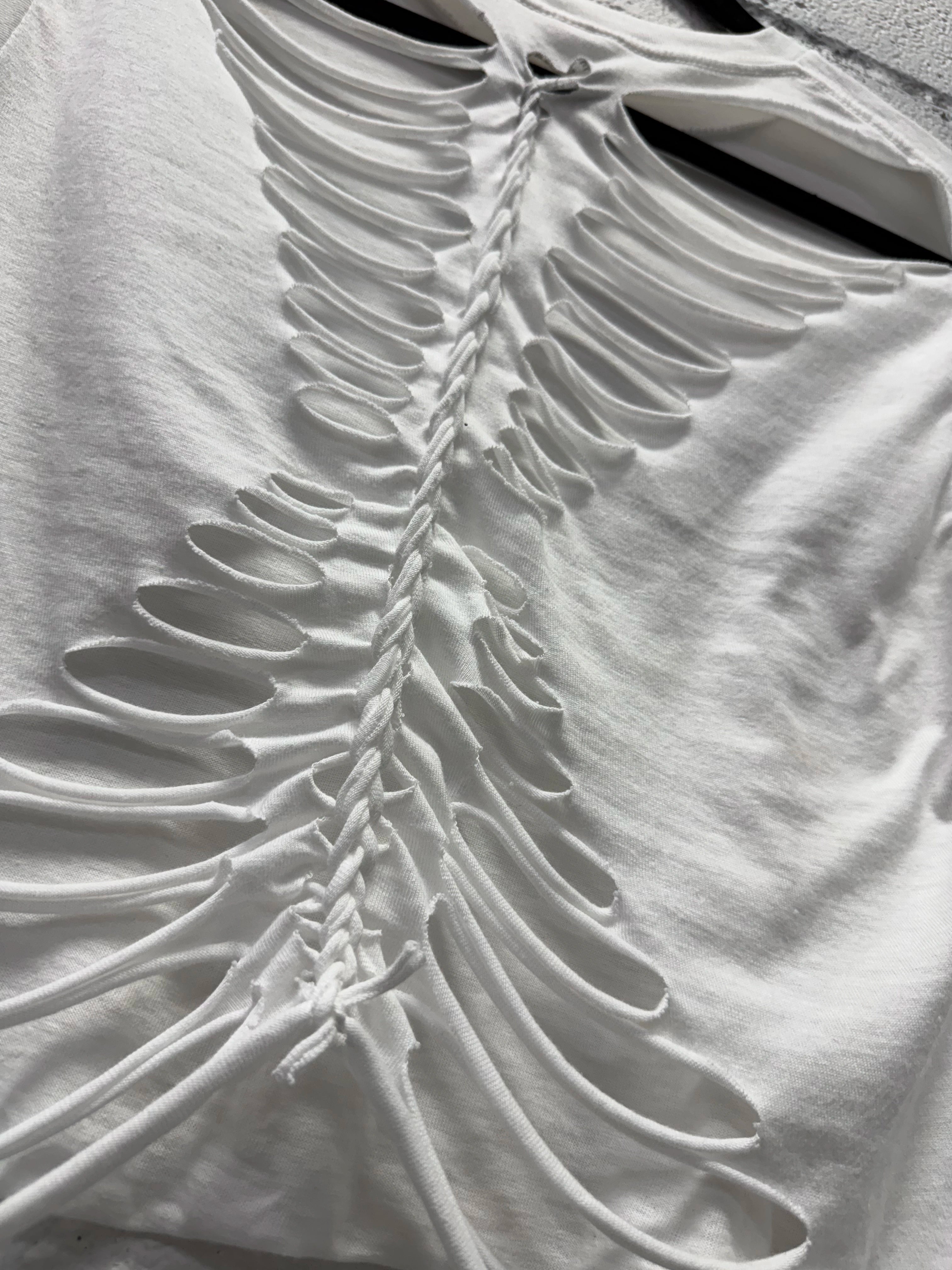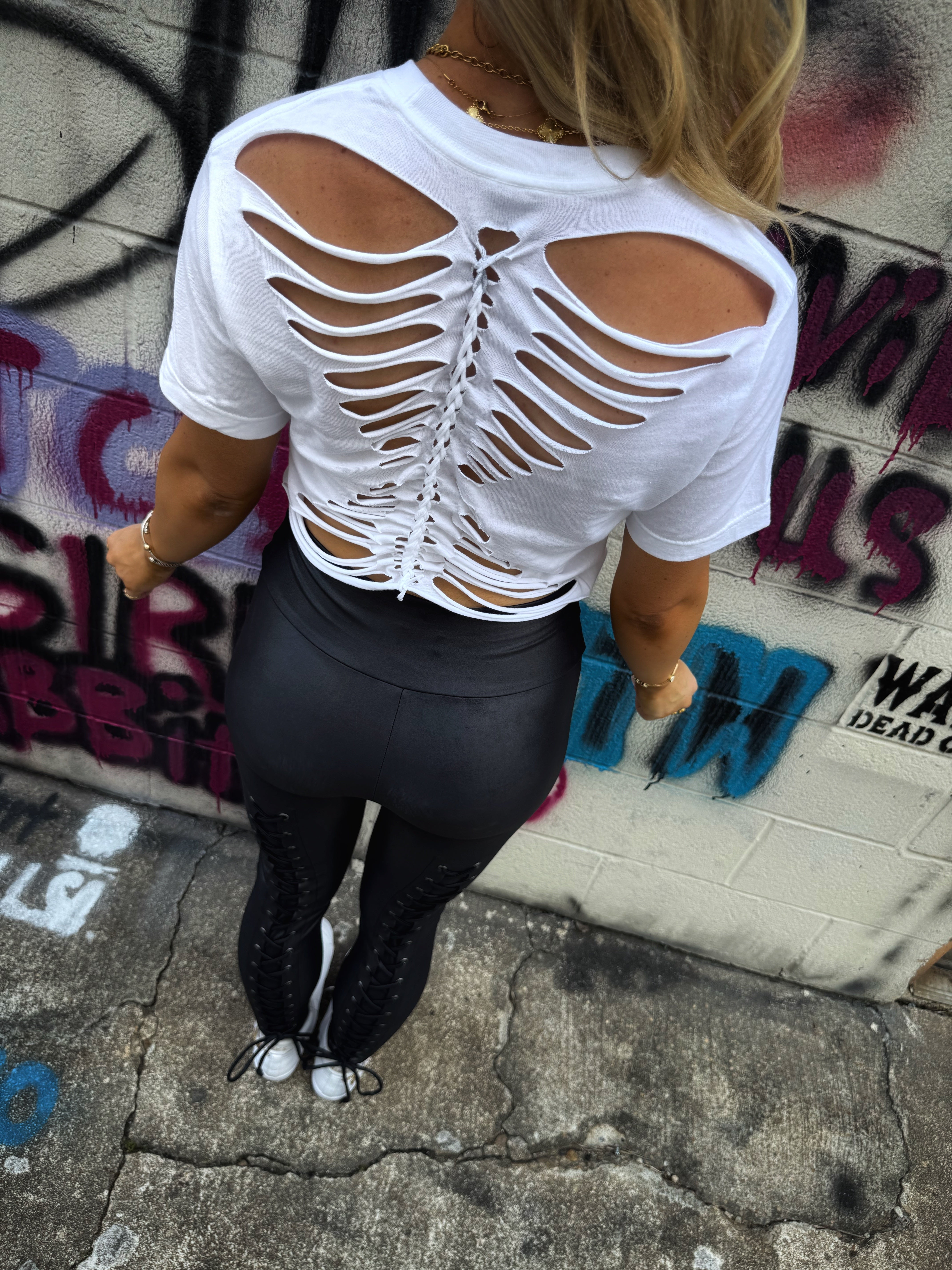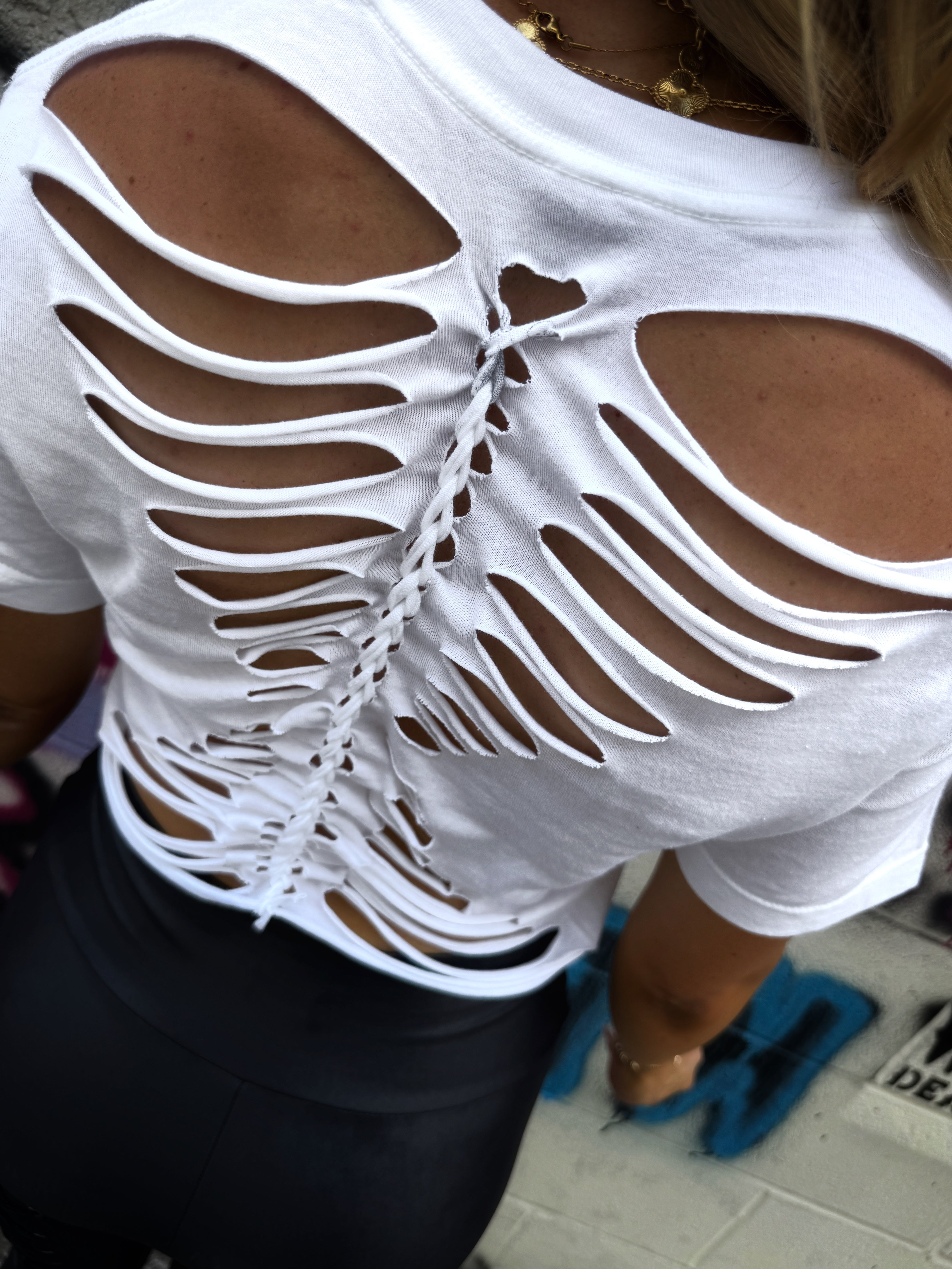 ROAD RASH BACK SLASHED BRAIDED WHITE CROP TOP