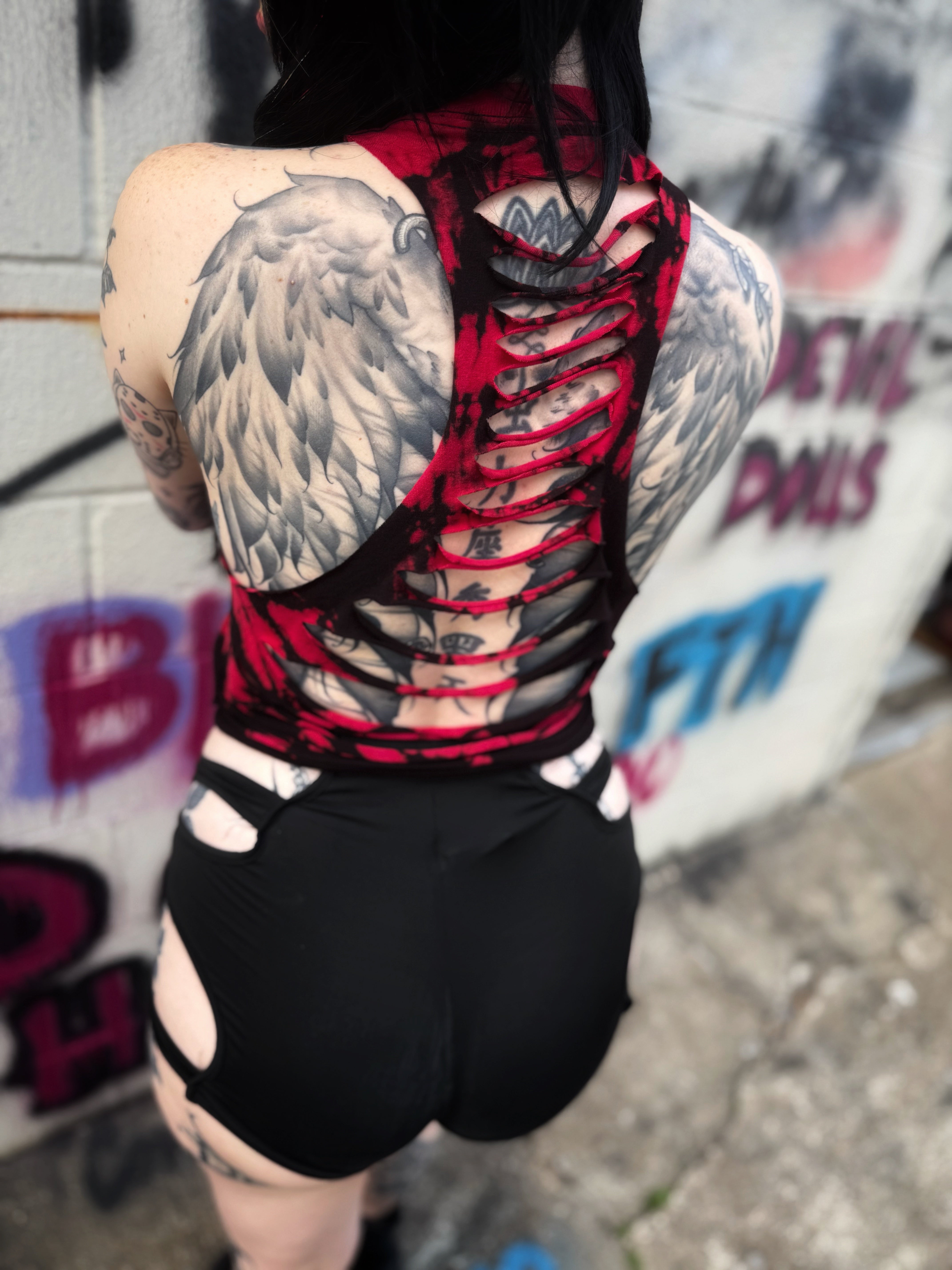 ROAD RASH BLACK AND RED TIE DYE CROP TANK TOP