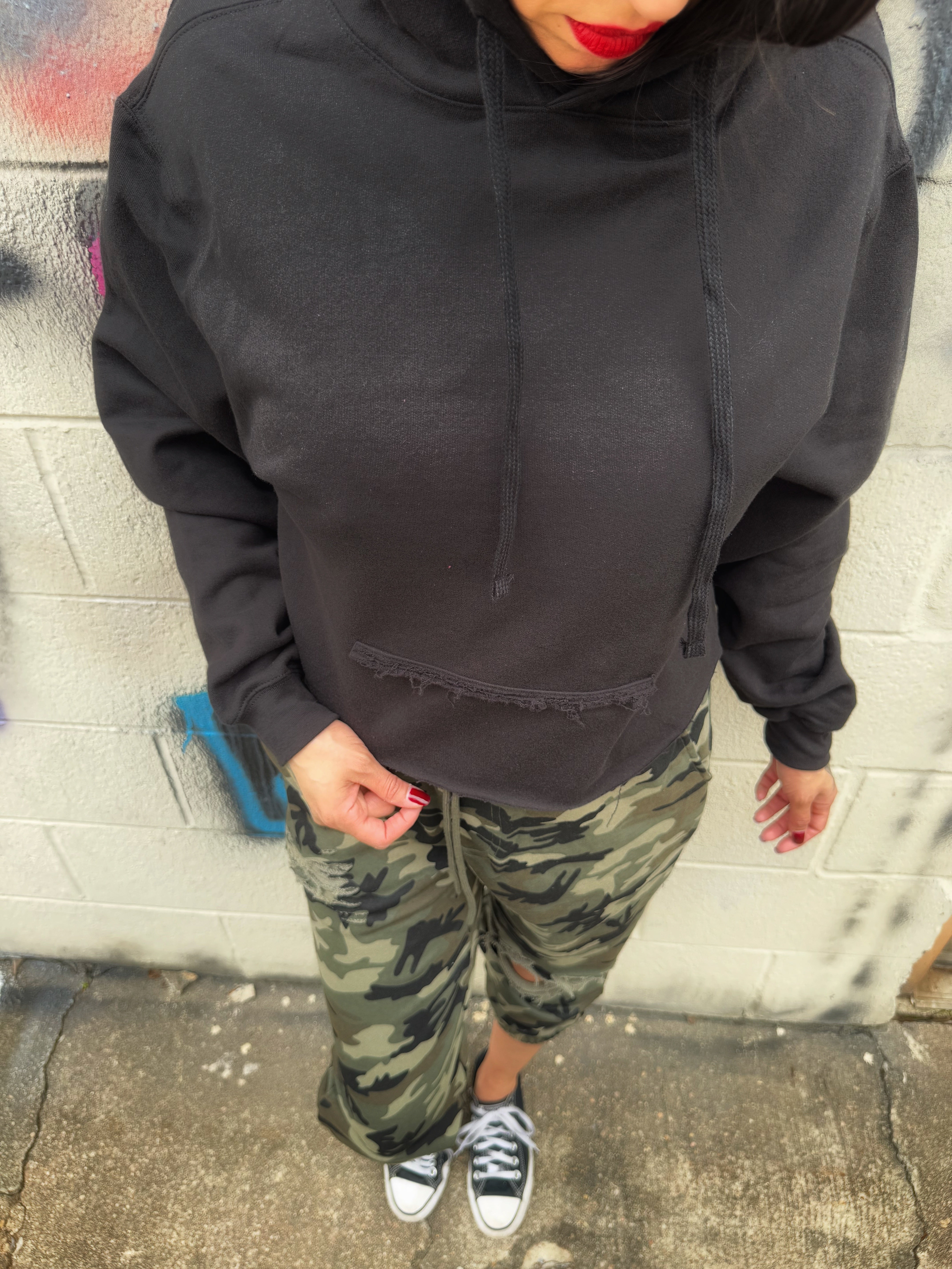 ROAD RASH BLACK CROP HOODIE - 1.0
