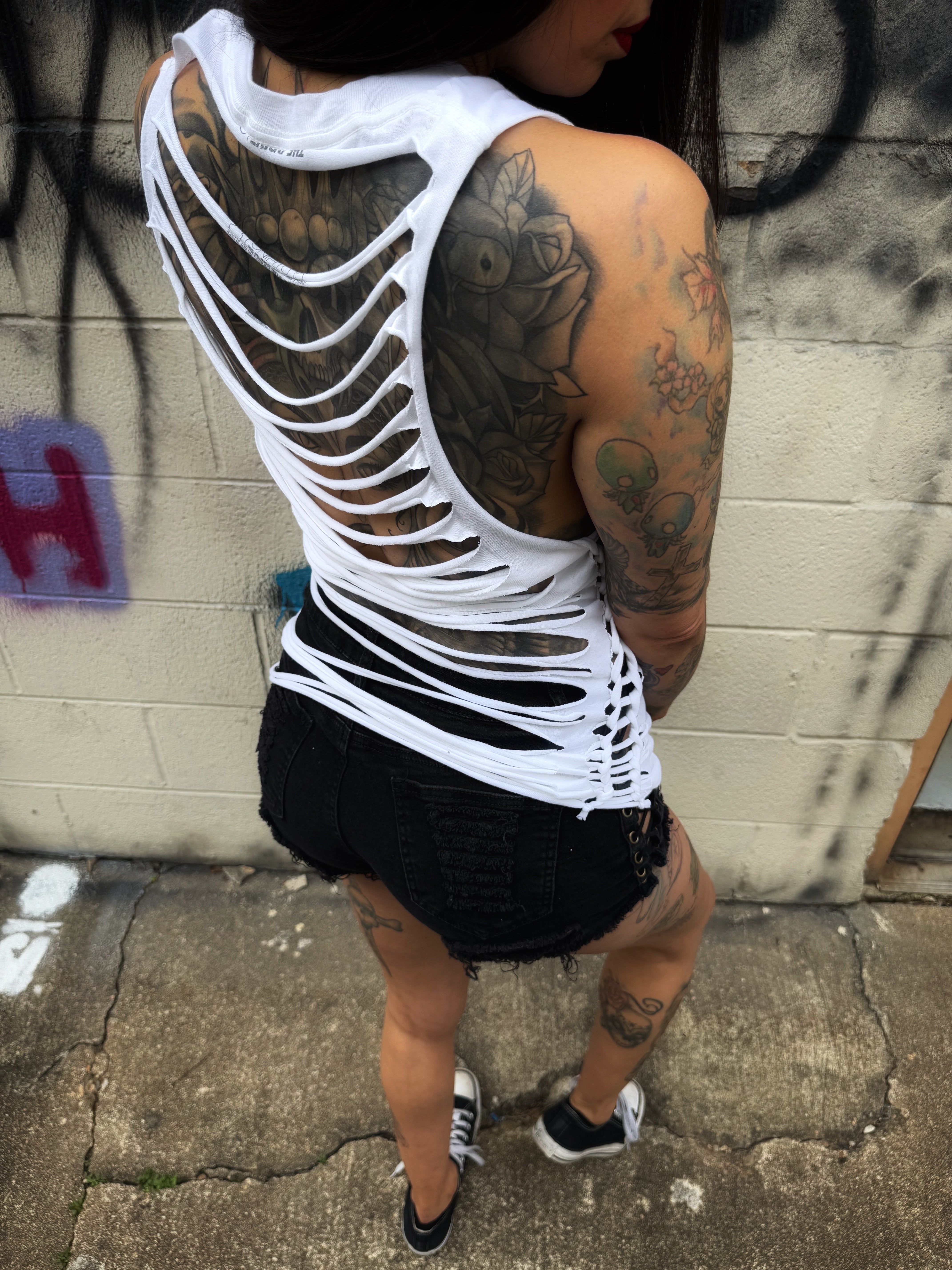 ROAD RASH BRAIDED WHITE TANK TOP 2.0