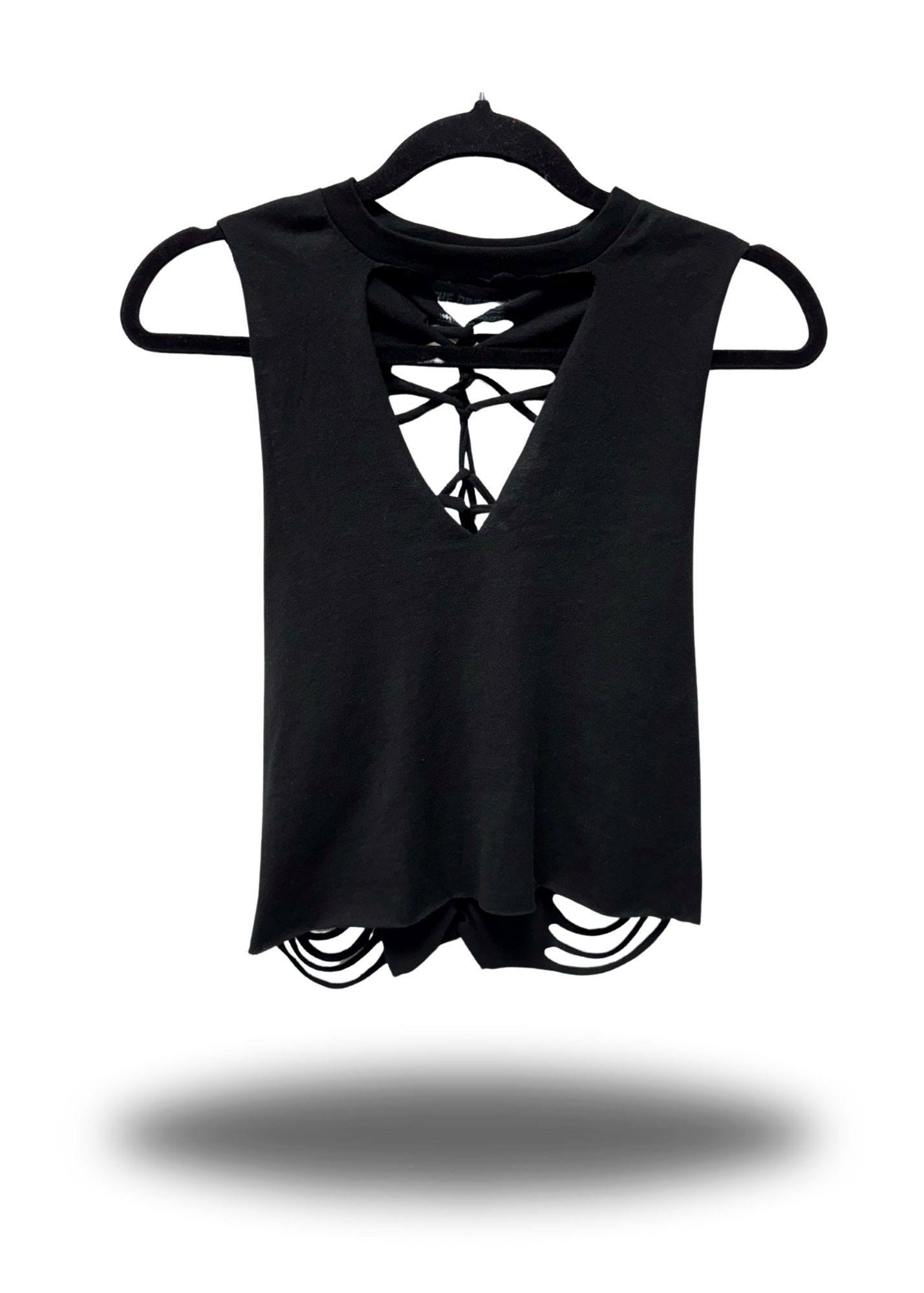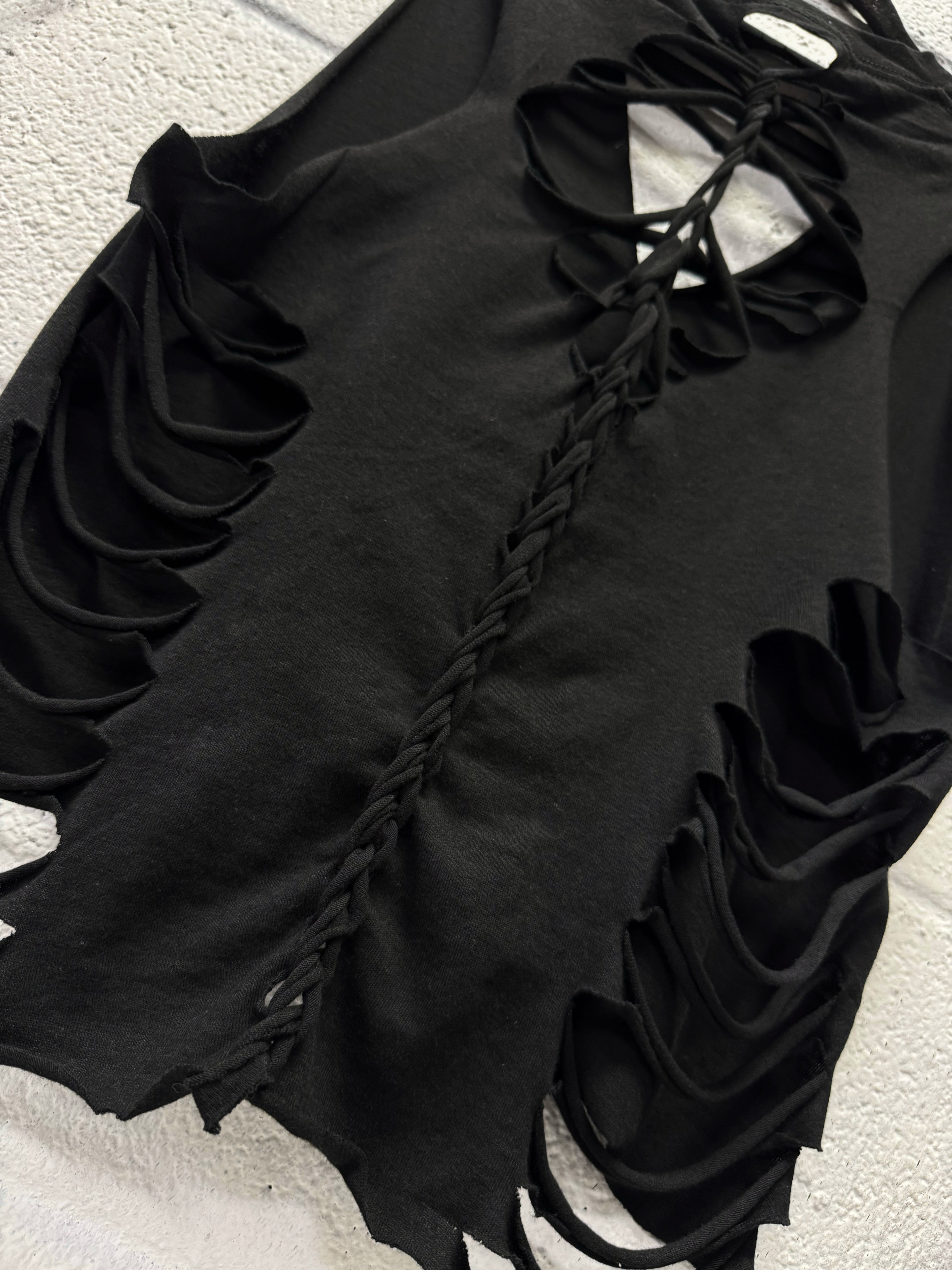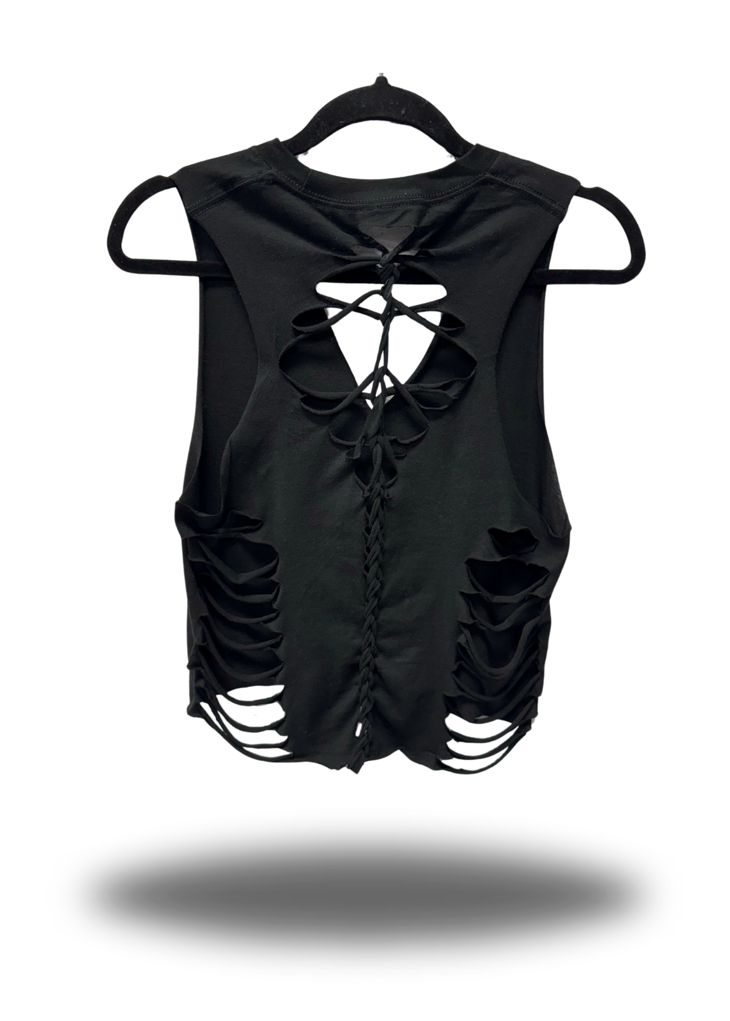 ROAD RASH BRAIDED DIAMOND SPINE BLACK CROP TANK TOP