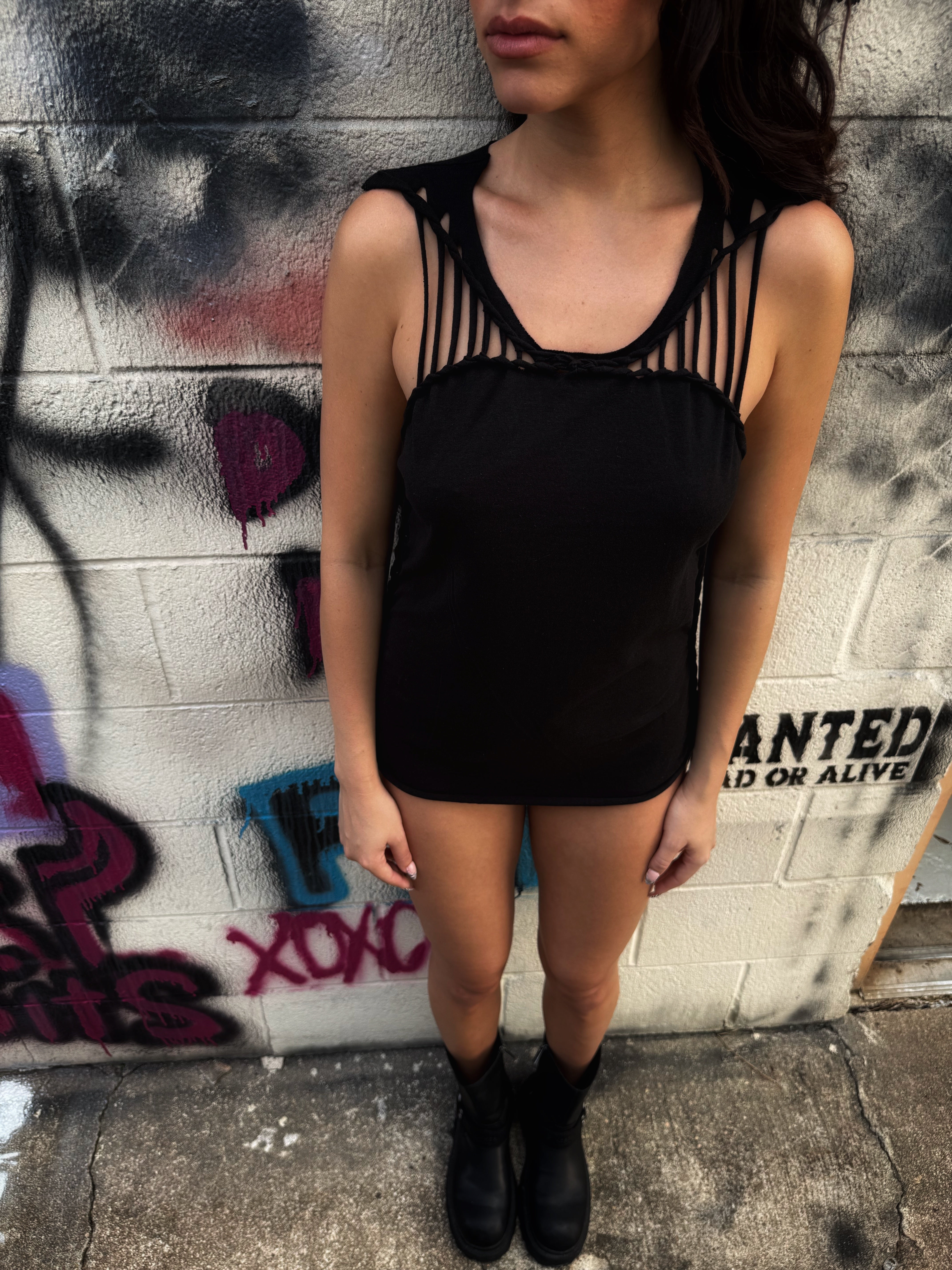 ROAD RASH BRAIDED SCOOP NECK BLACK TANK TOP