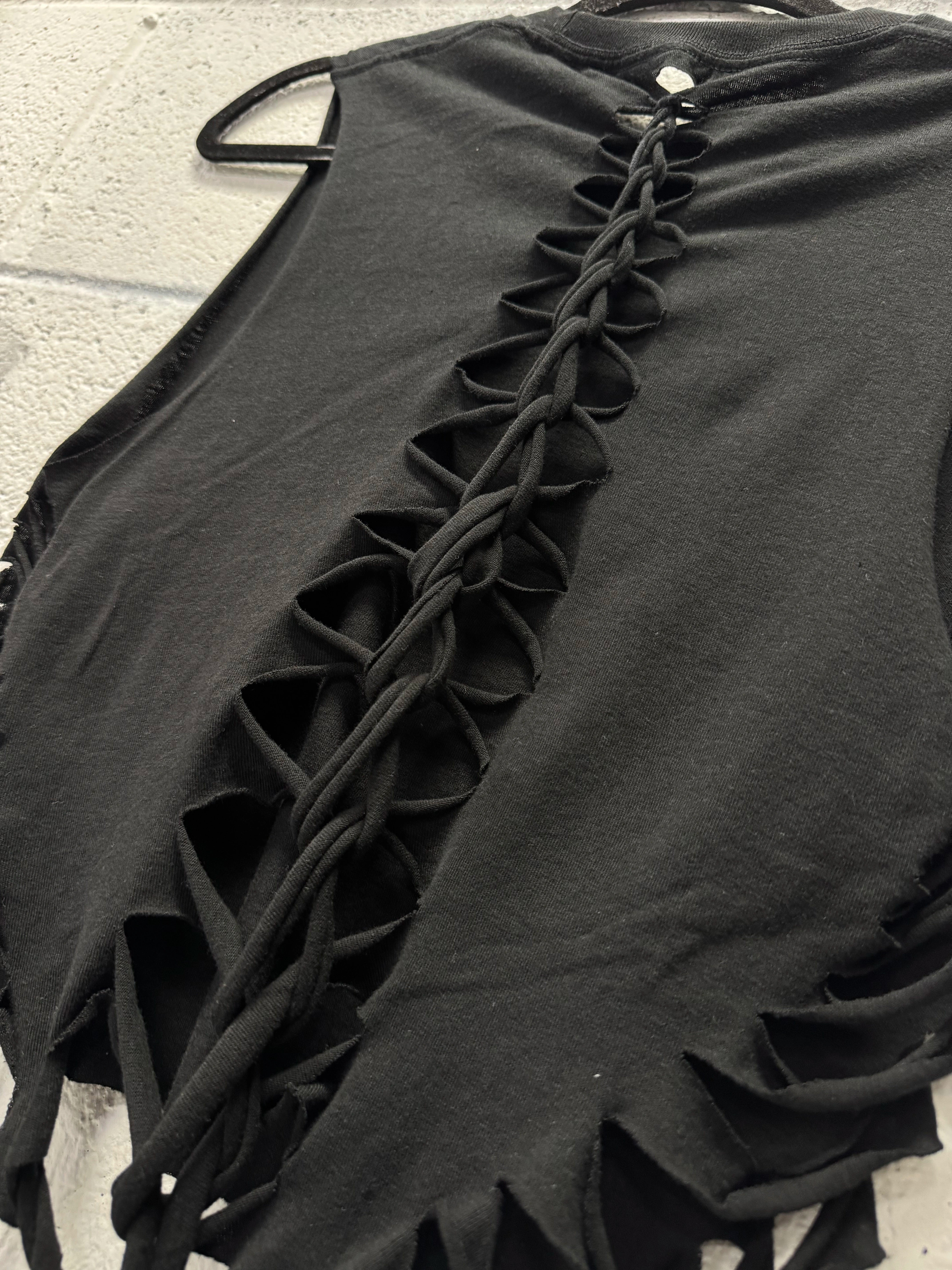 ROAD RASH BRAIDED SPINE BLACK CROP TANK TOP