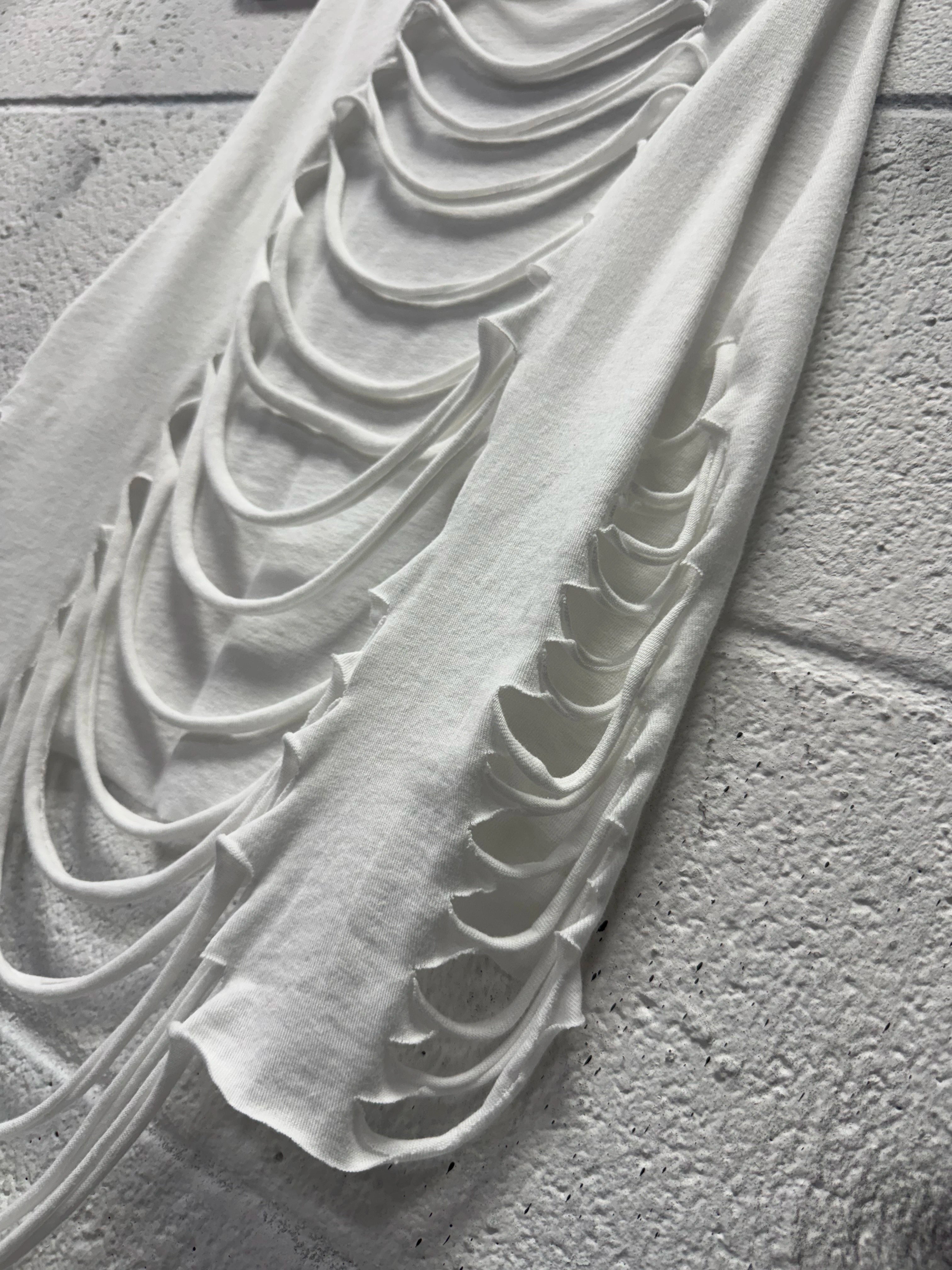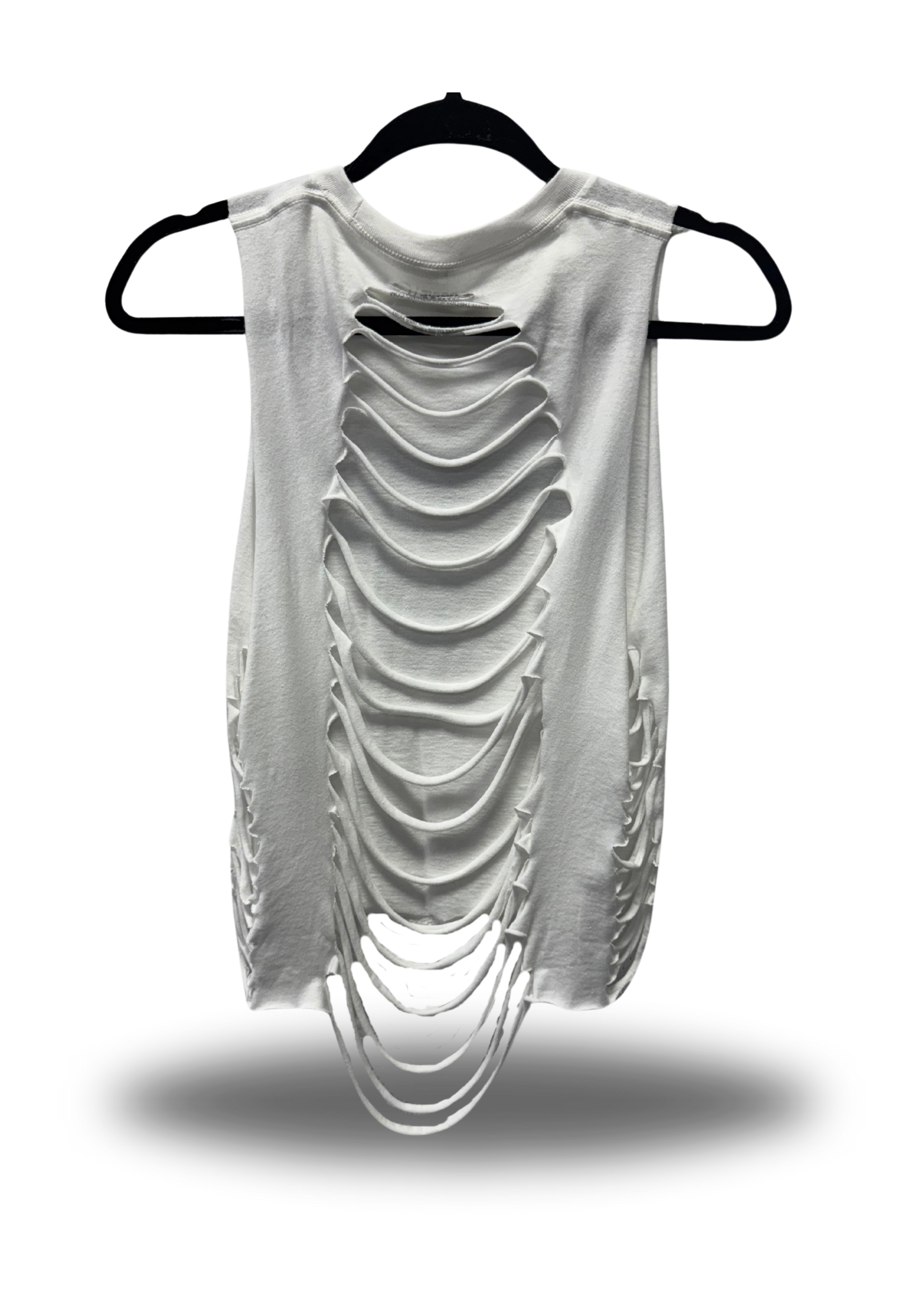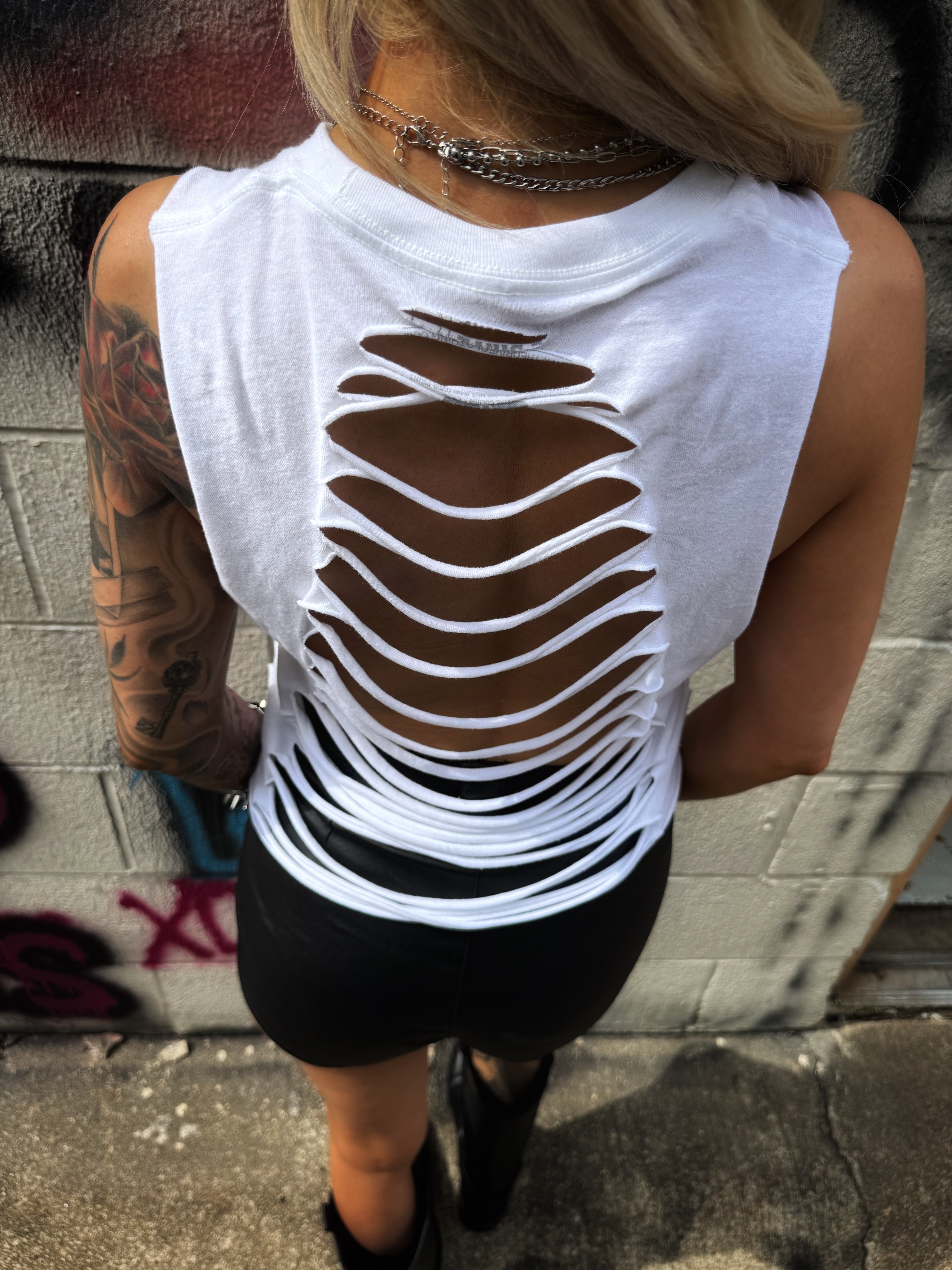 ROAD RASH RAZOR CUT WHITE CROP TANK