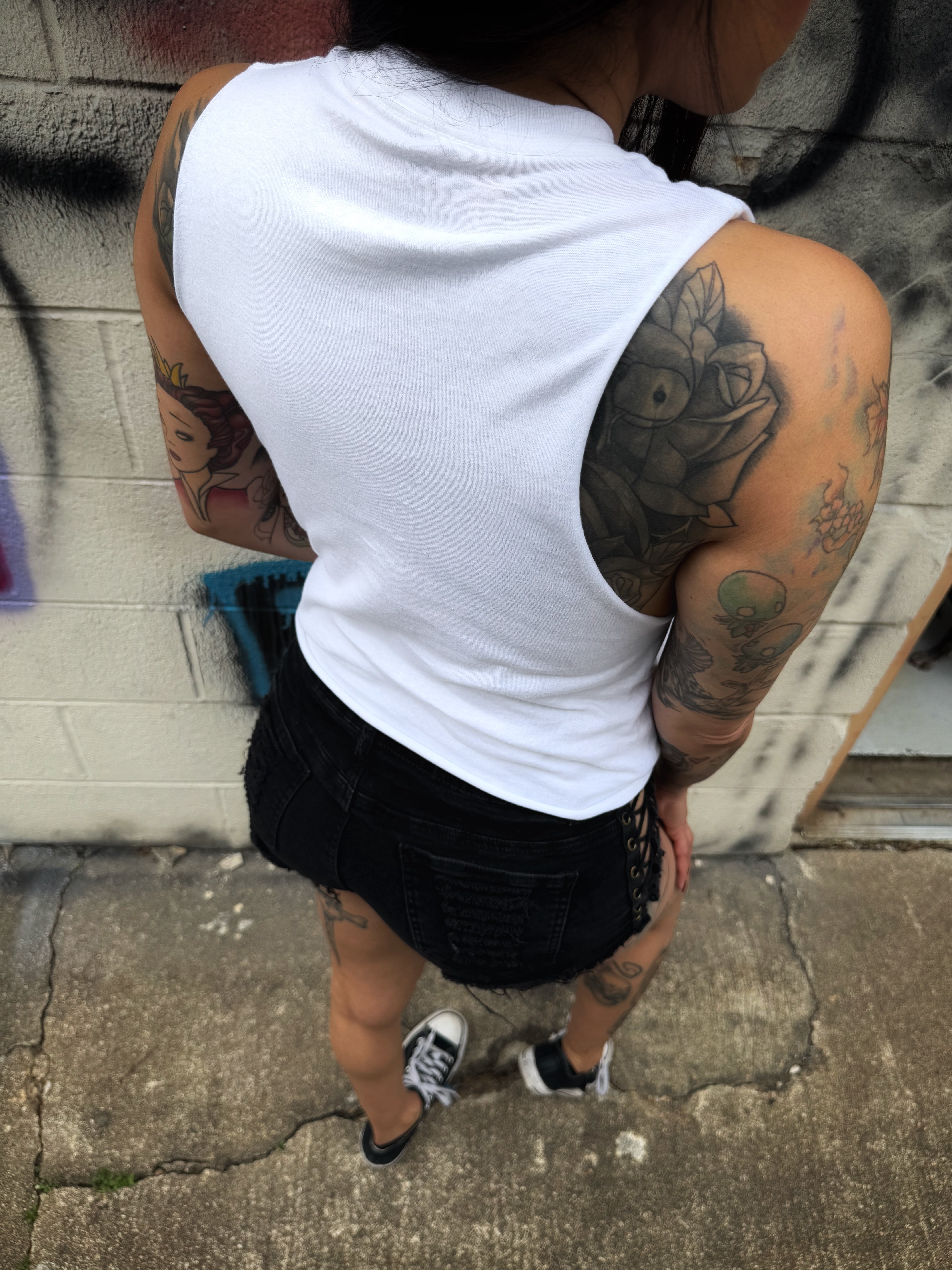 ROAD RASH WHITE CROP TANK TOP - 4.0