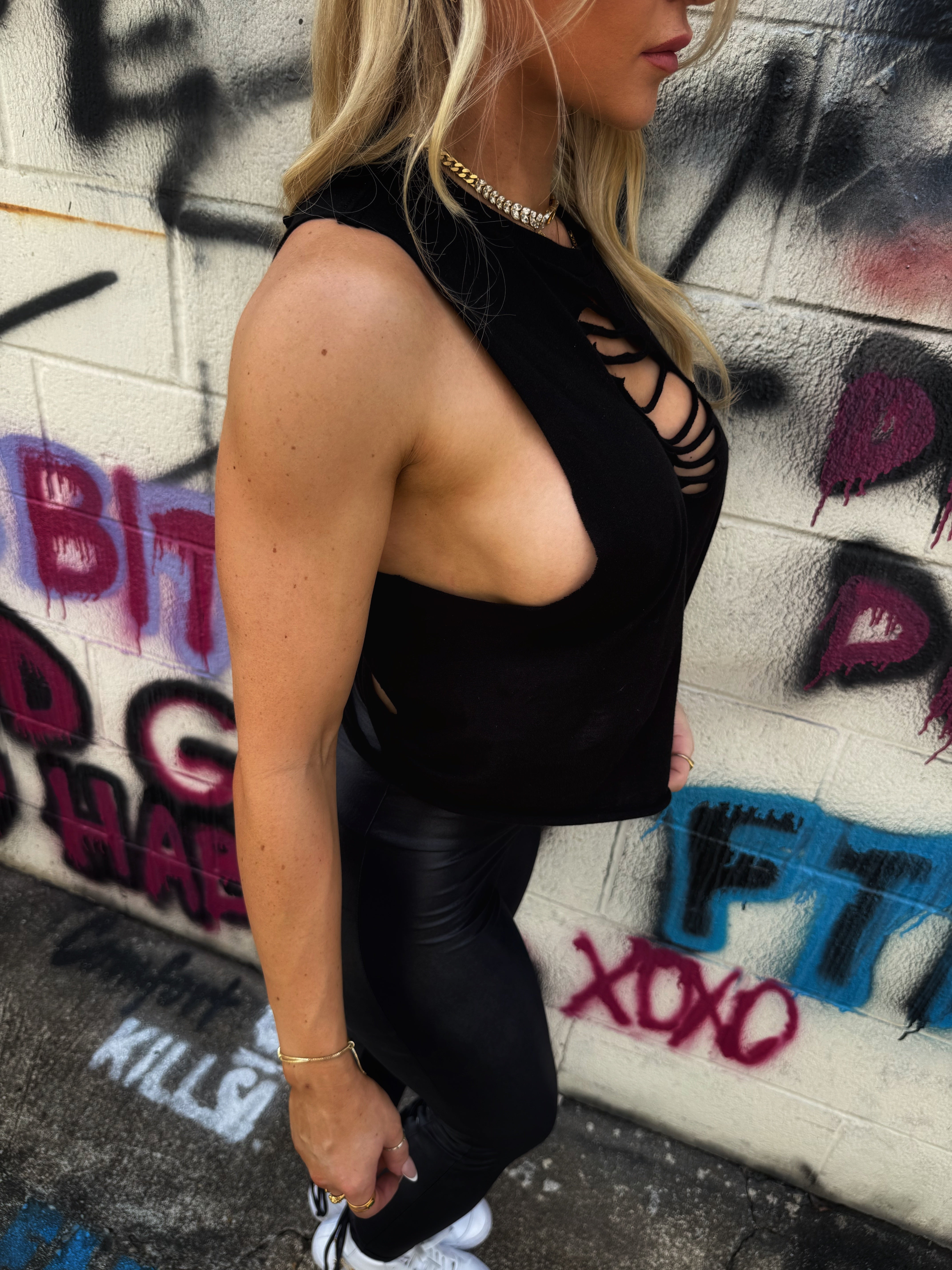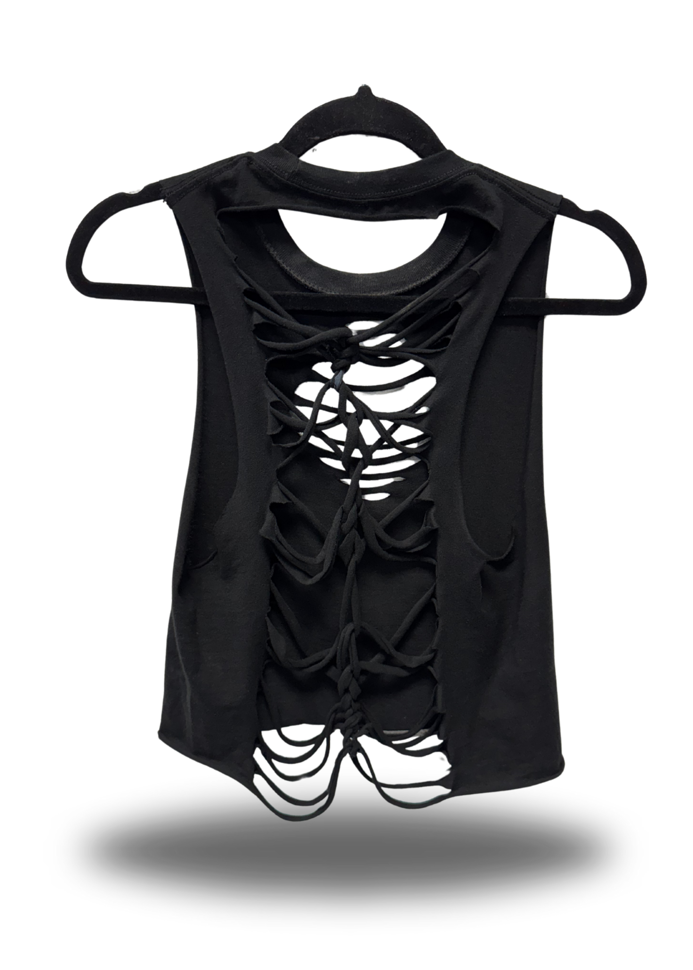 ROAD RASH DIAMOND CUT BRAIDED SPINE BLACK CROP TANK