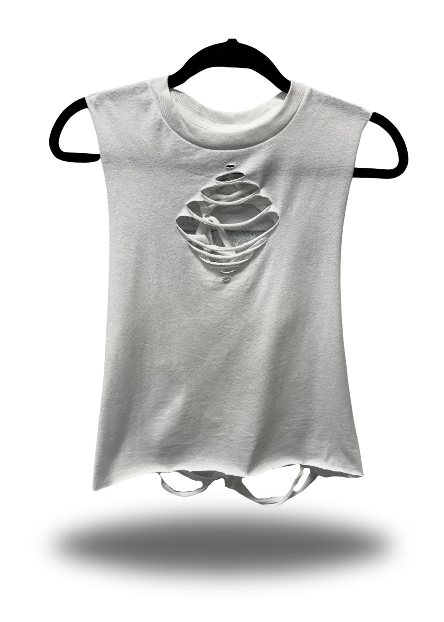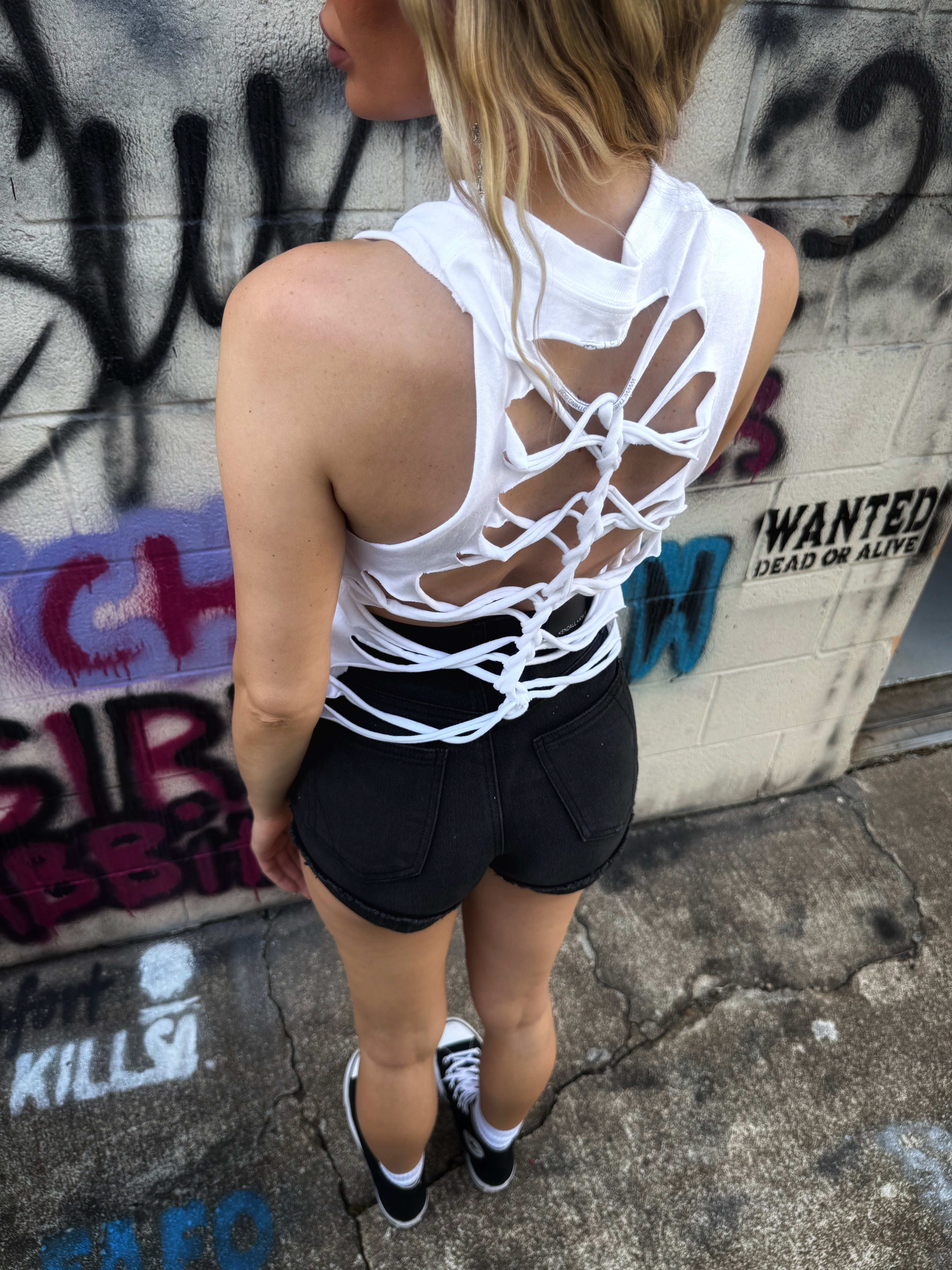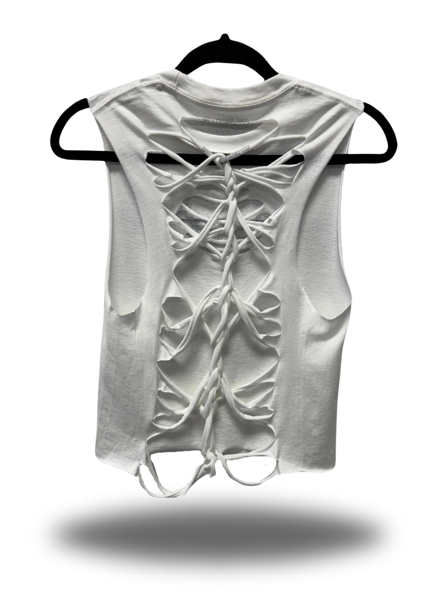 ROAD RASH DIAMOND CUT BRAIDED SPINE WHITE CROP TANK