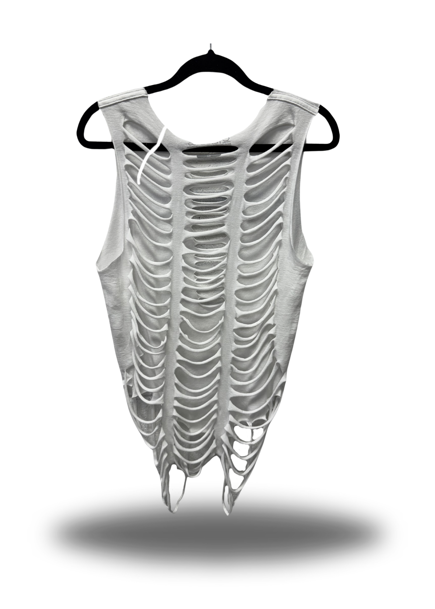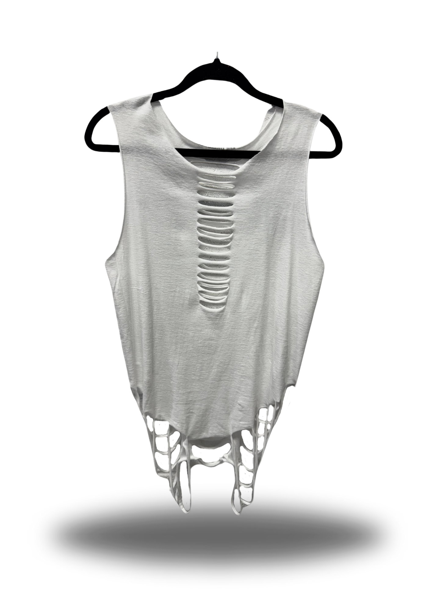 ROAD RASH FRONT CUT WHITE CROP TANK TOP