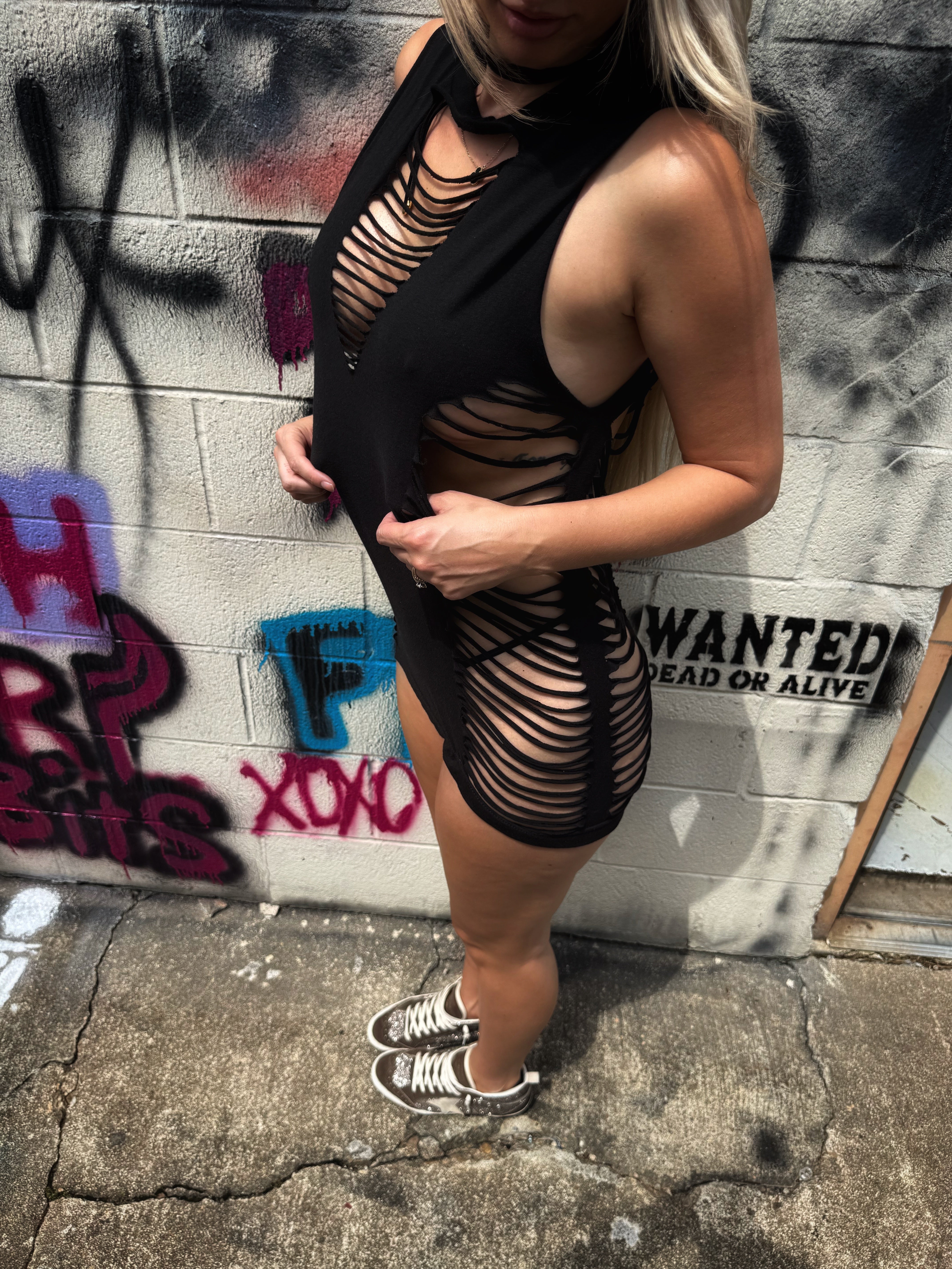 ROAD RASH FRONT V SLASHED BLACK TANK TOP