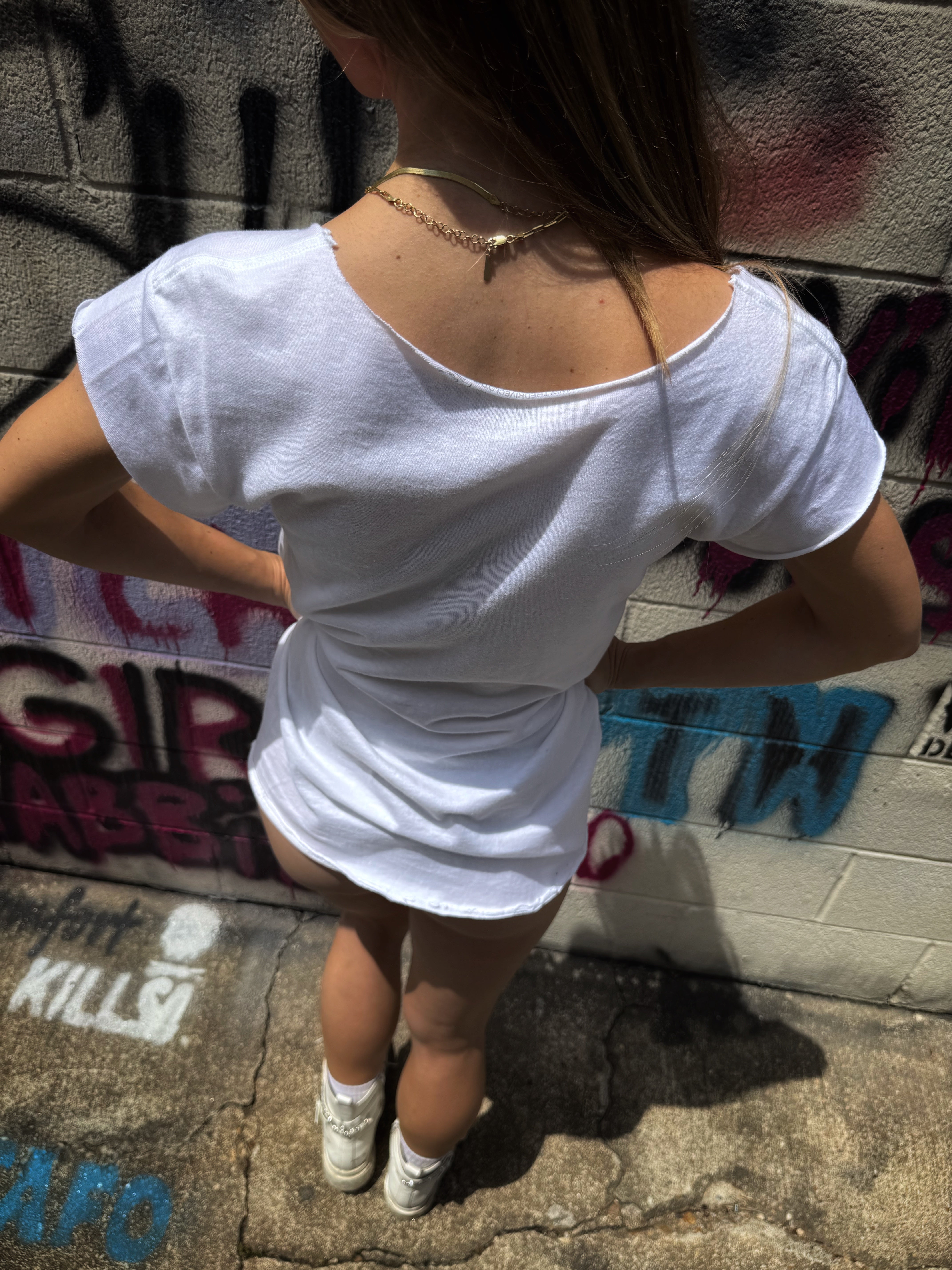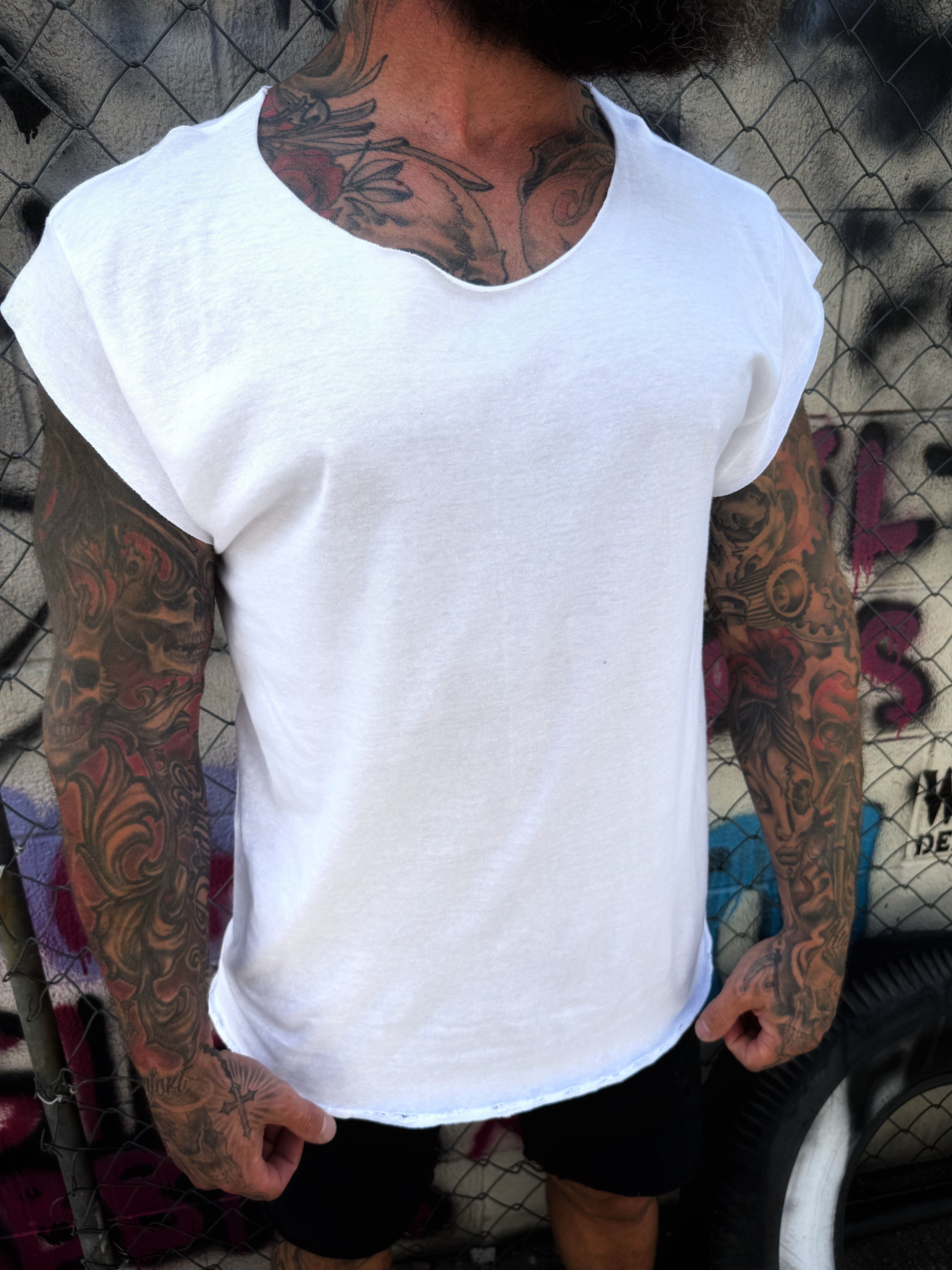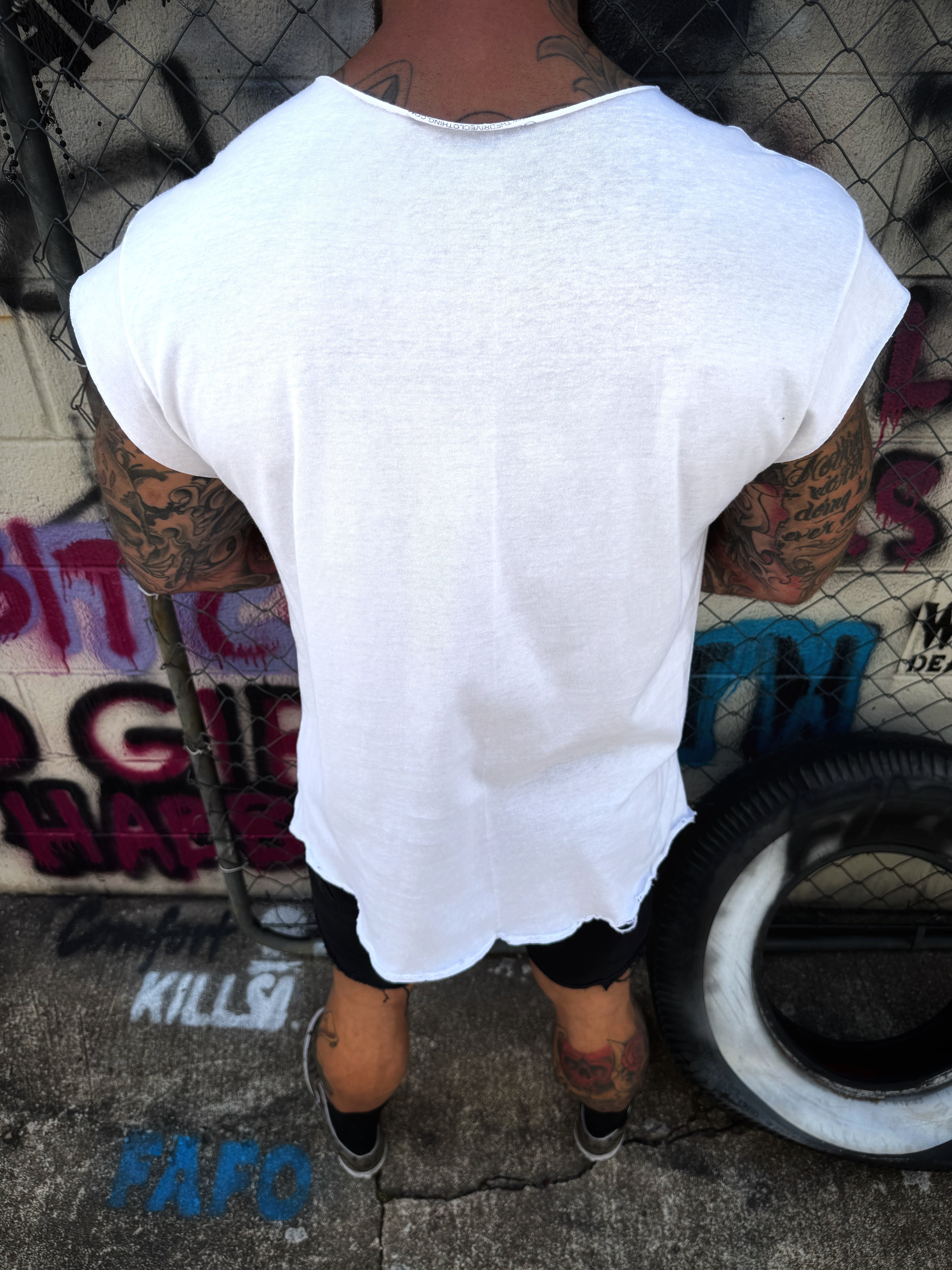 ROAD RASH MENS MUSCLE SCOOP NECK WHITE TEE