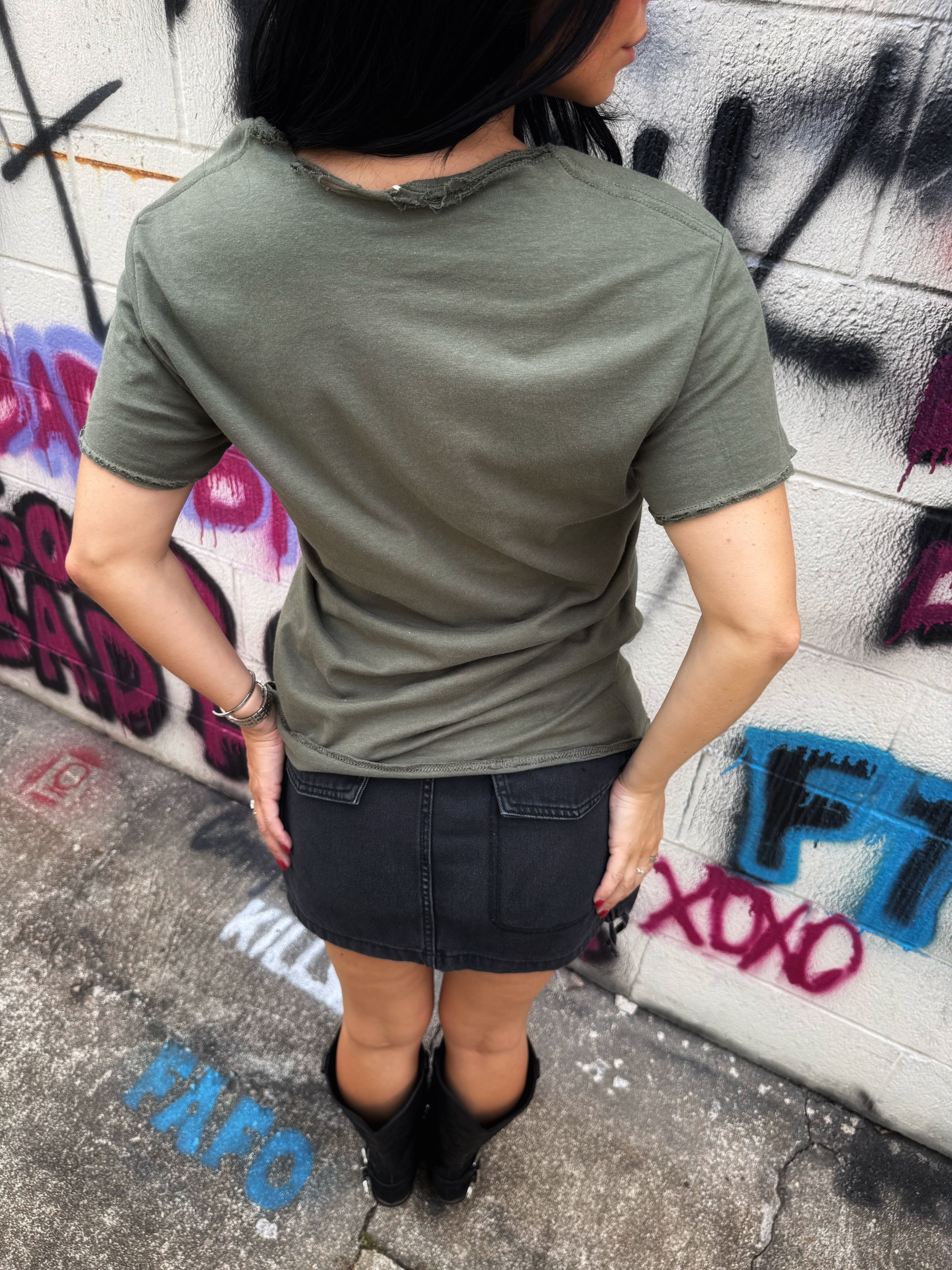 ROAD RASH RAW EDGE MILITARY GREEN TEE