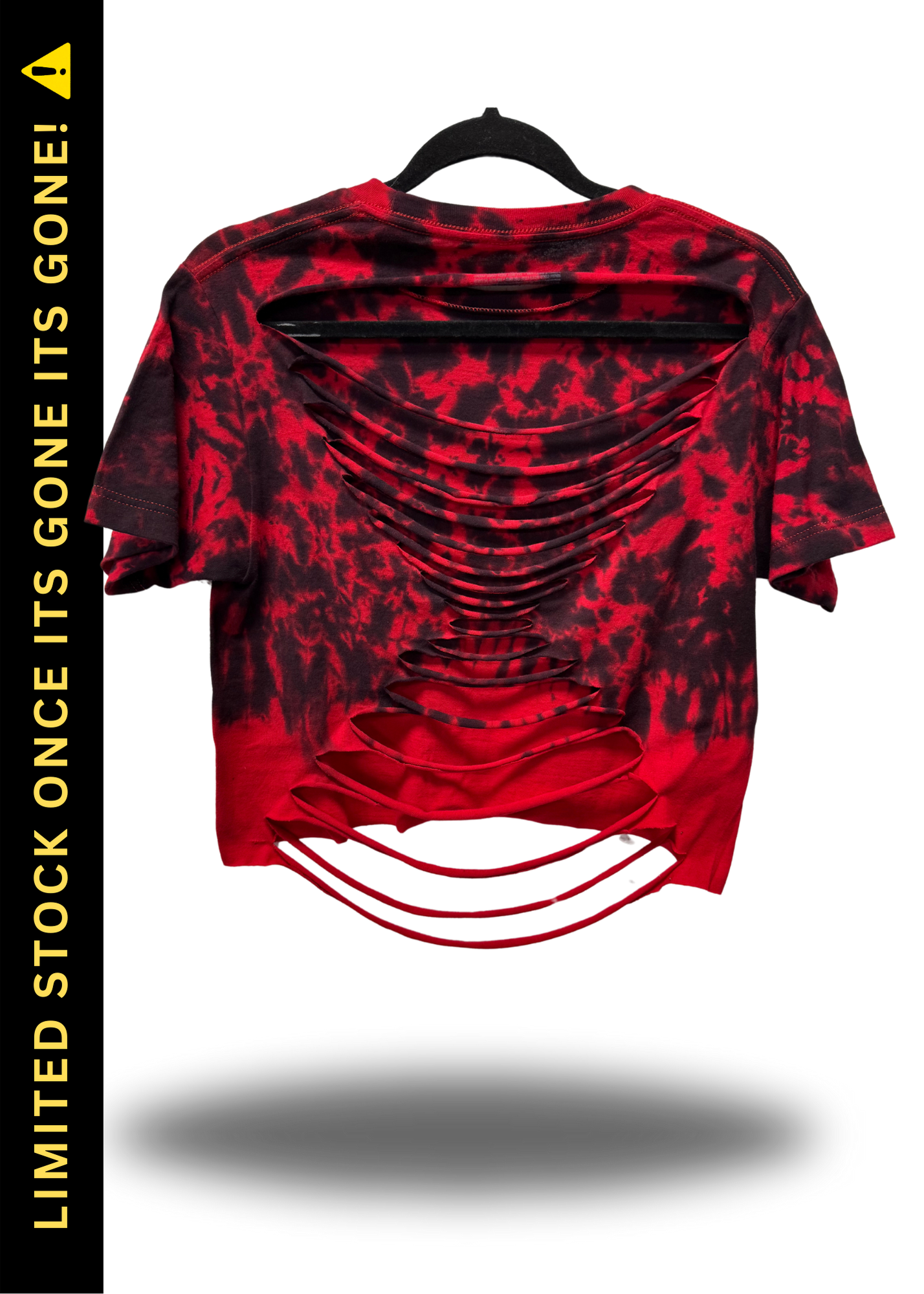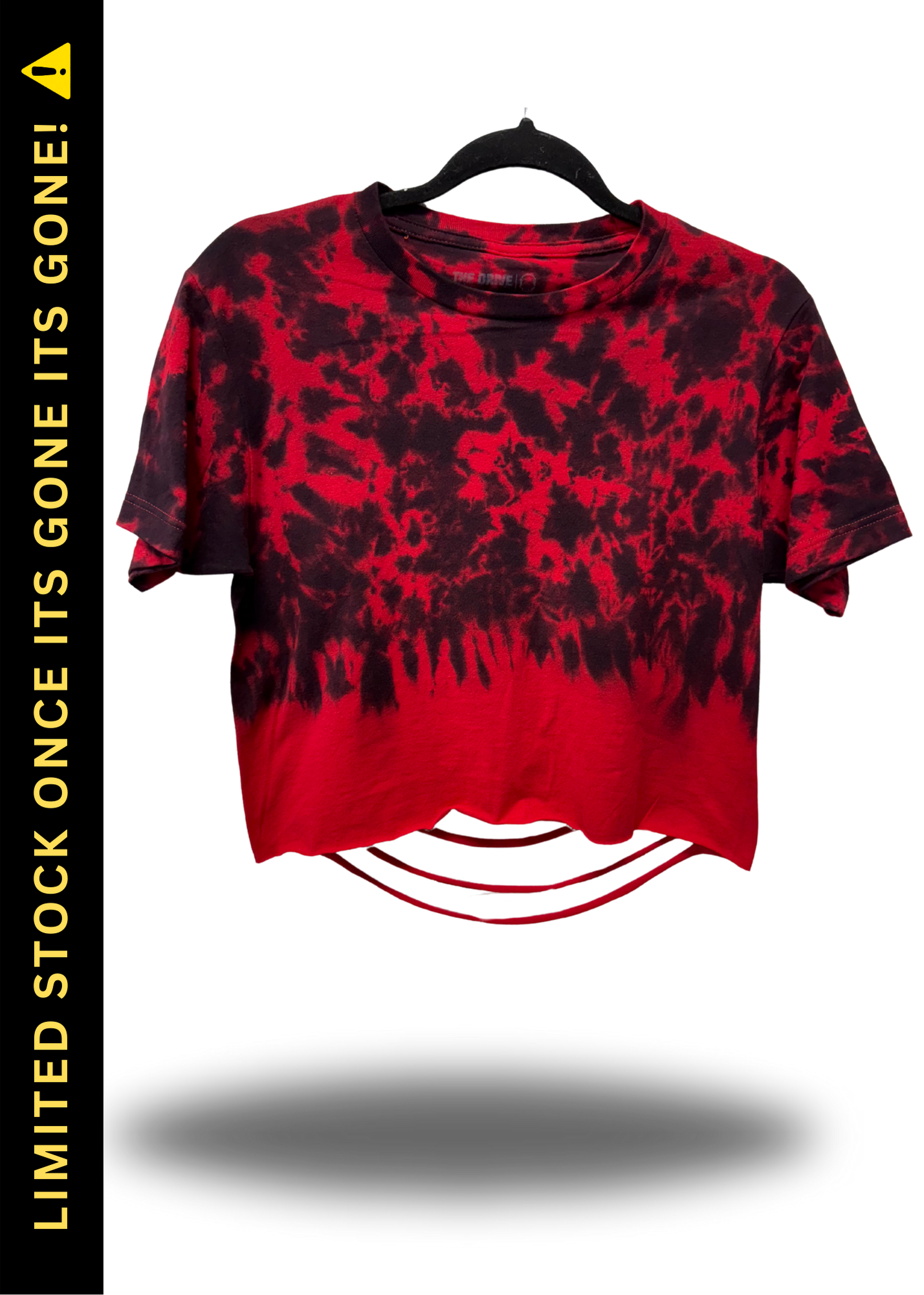 ROAD RASH RED AND BLACK TIE DYE CROP TOP