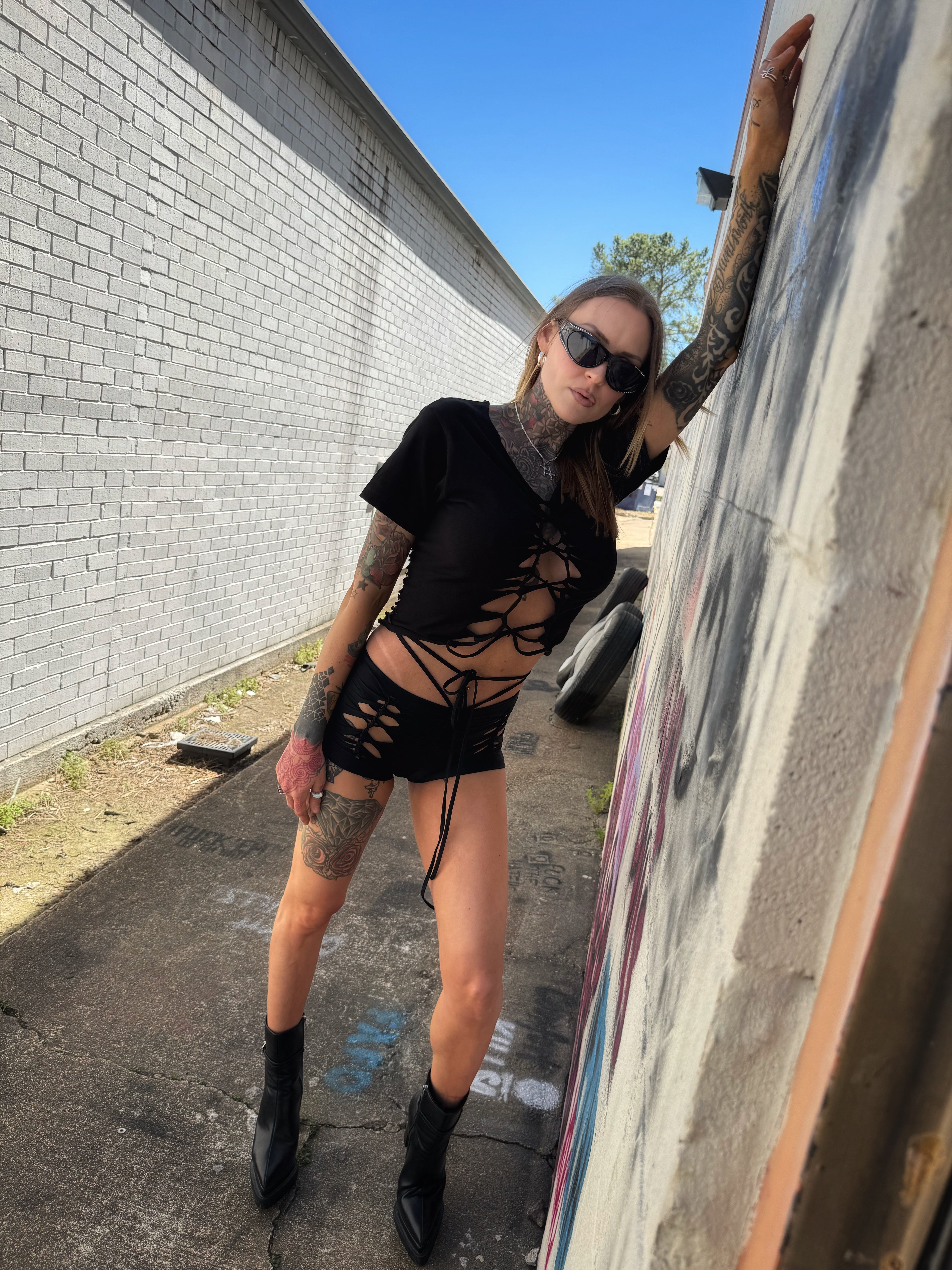 ROAD RASH V BRAIDED FRONT BLACK CROP TOP
