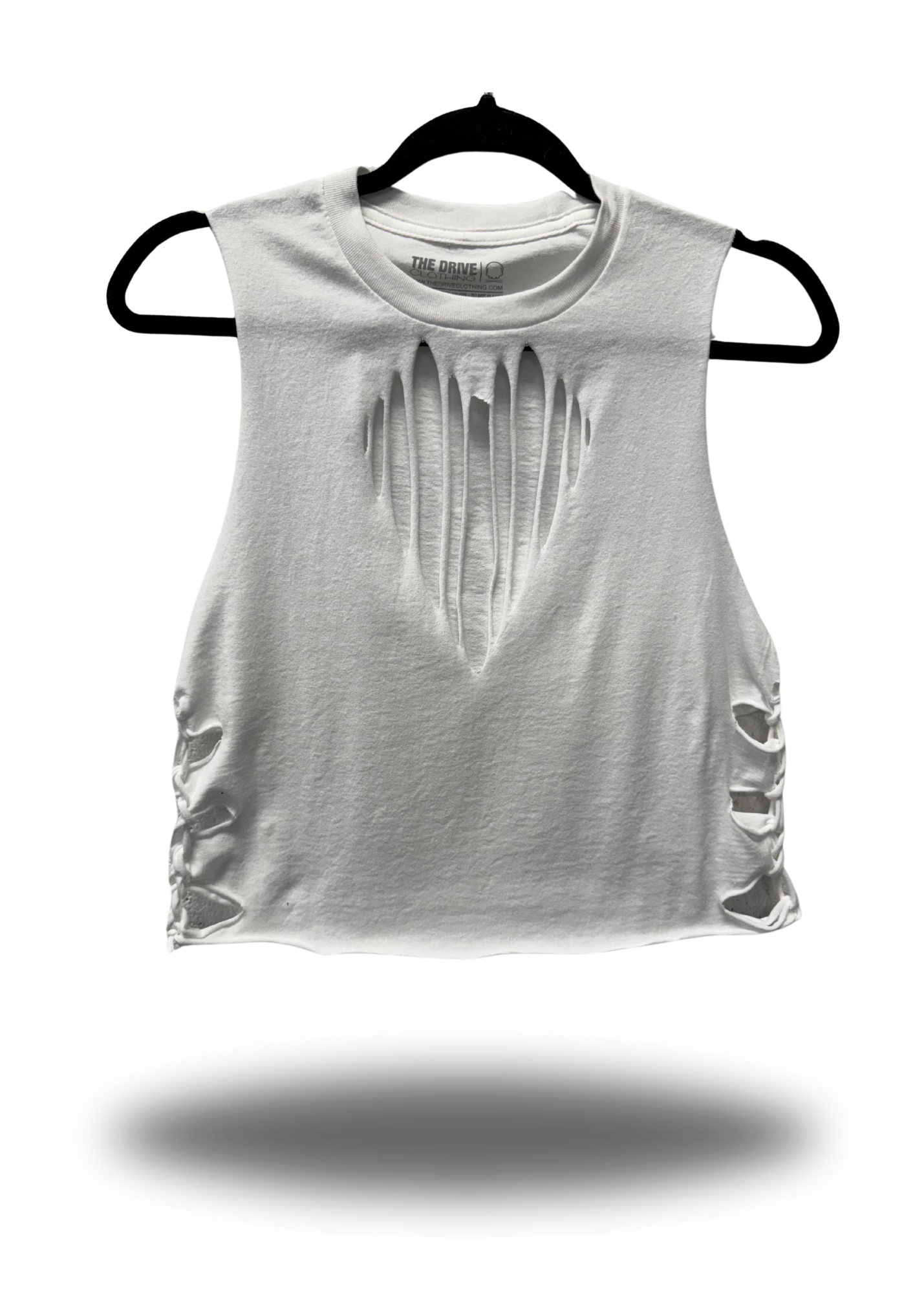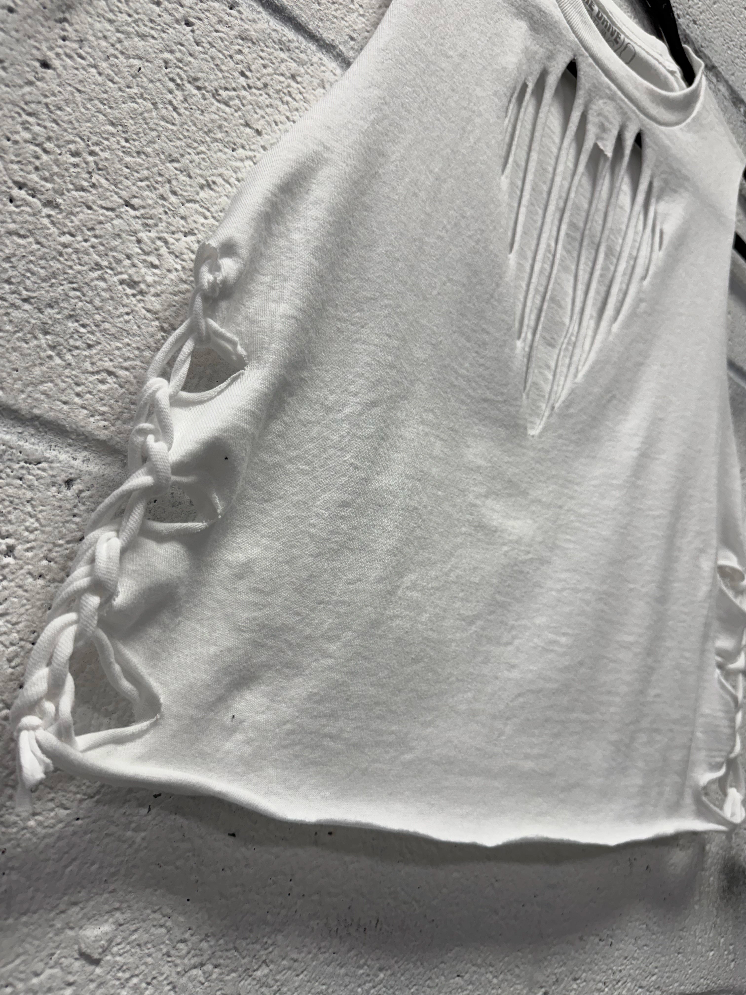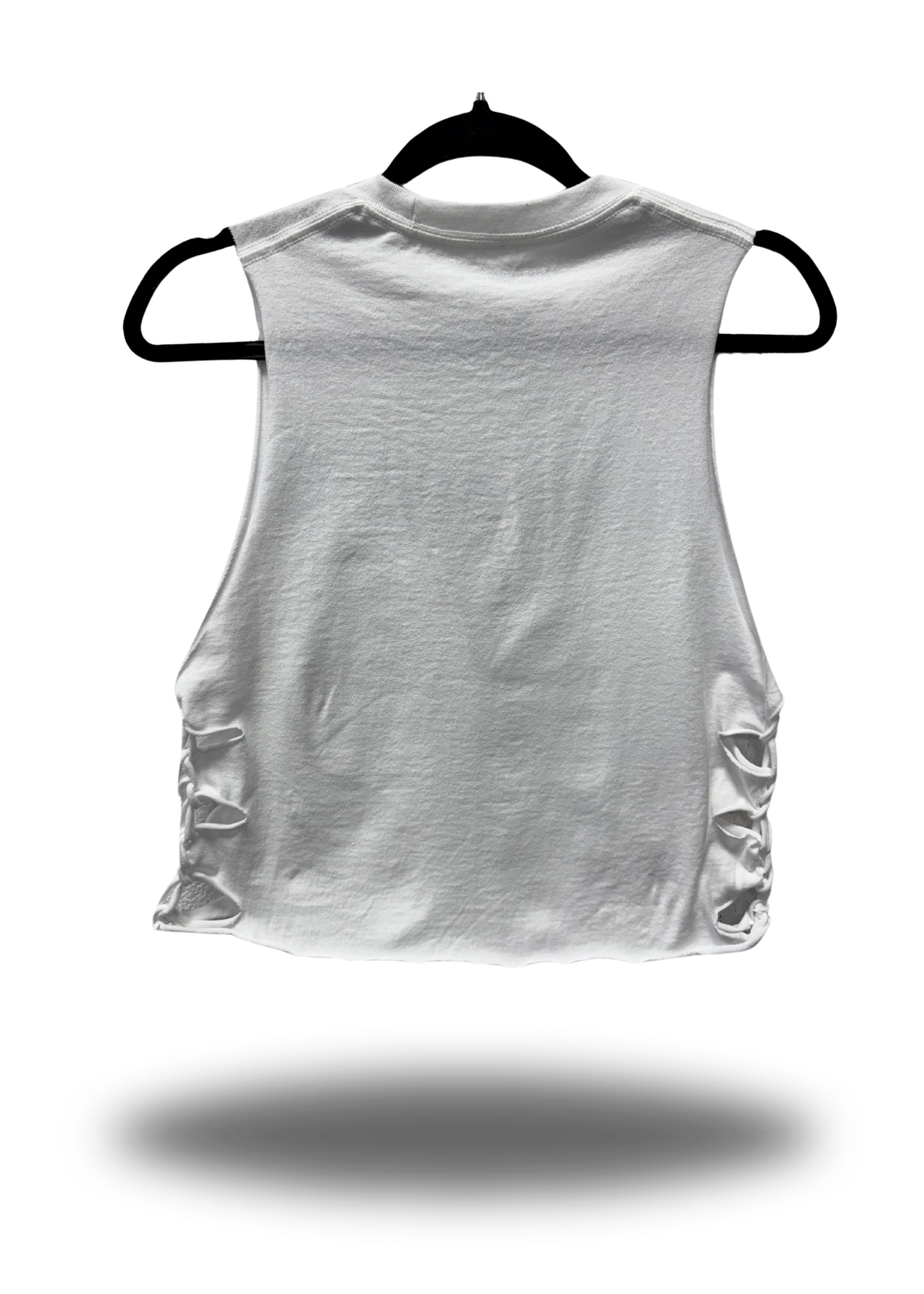 ROAD RASH WHITE HEART CUT AND SIDE BRAID CROP TANK
