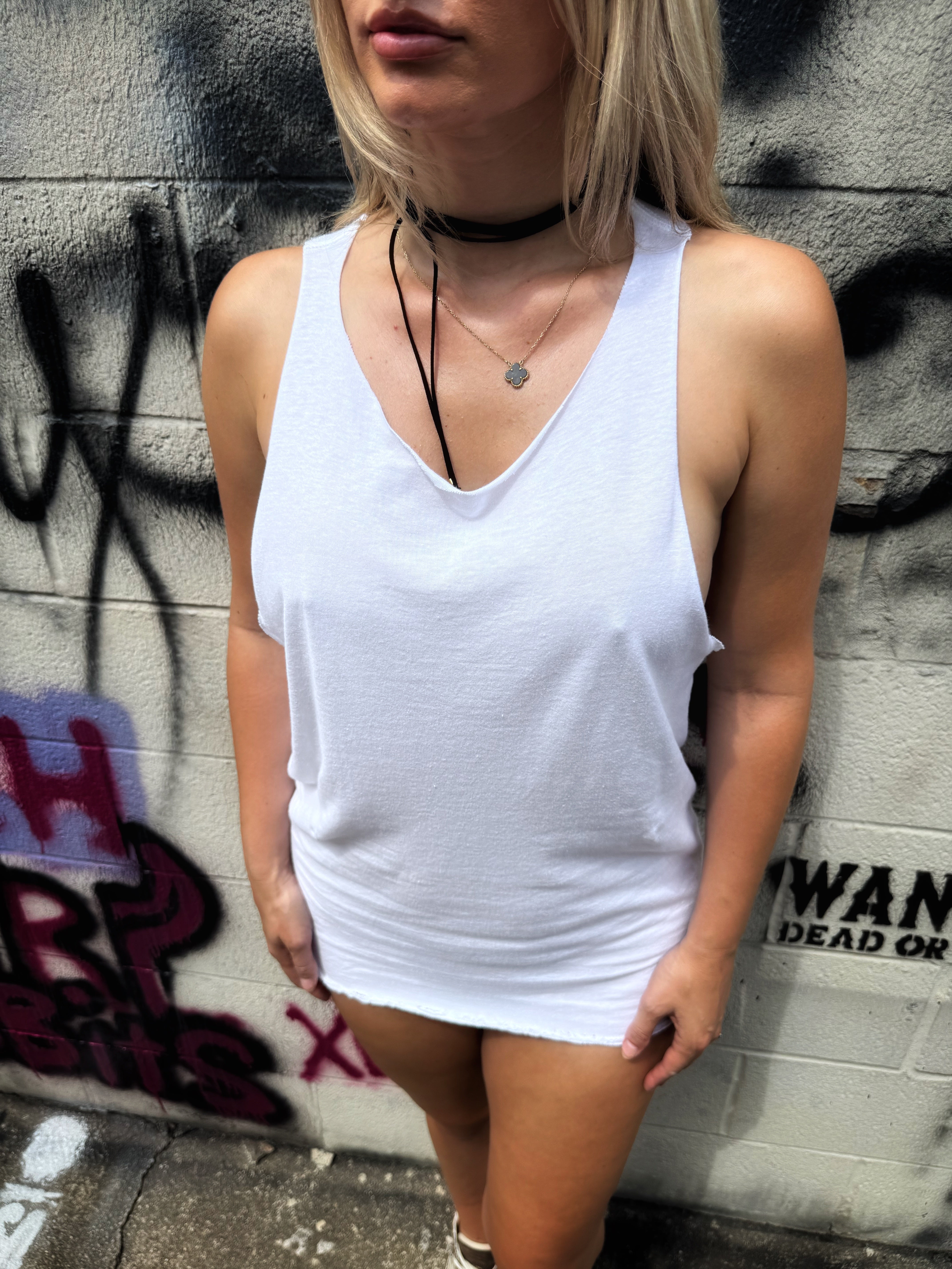 ROAD RASH WHITE SCOOP NECK STRINGER