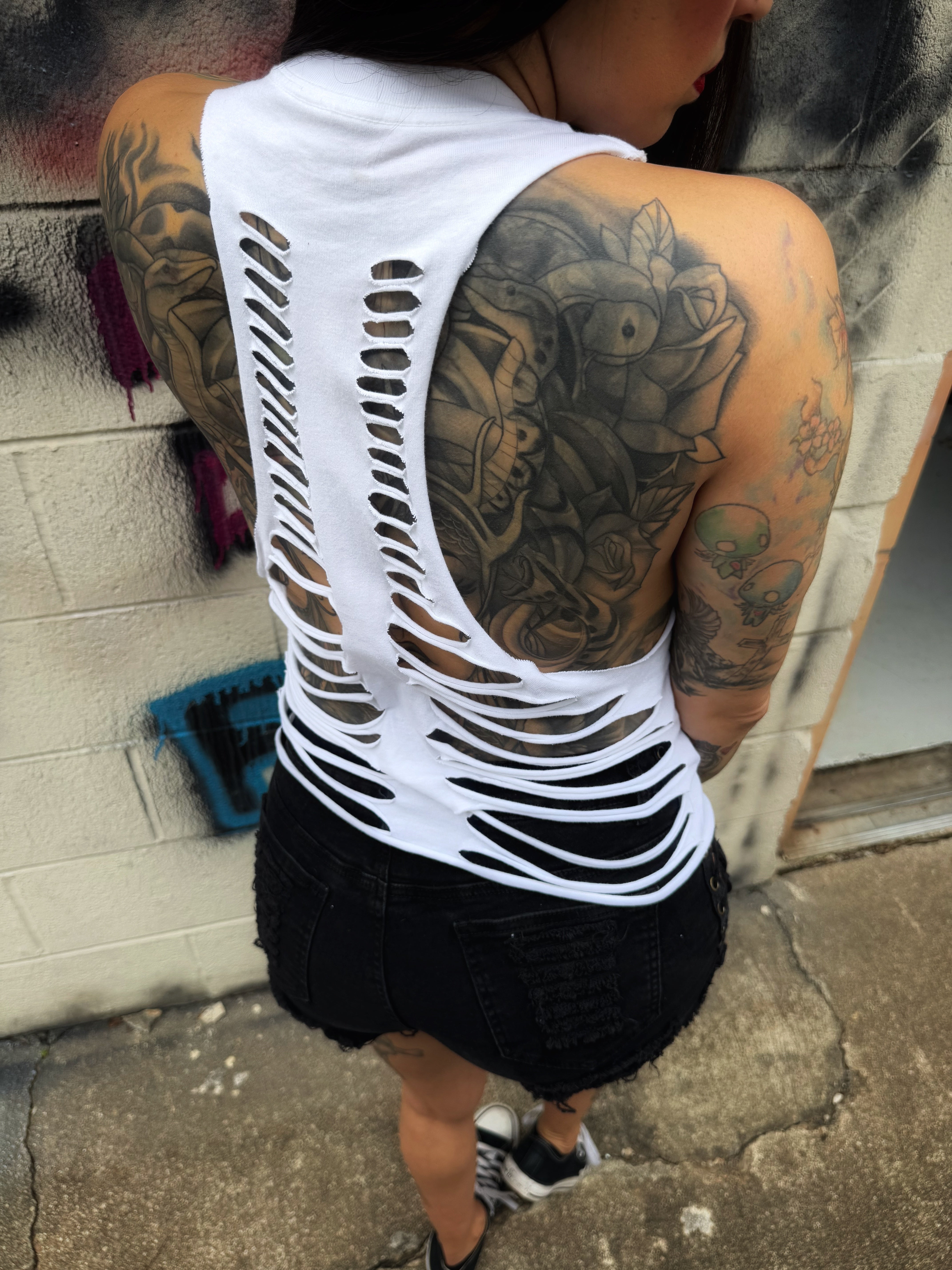 ROAD RASH WHITE CROP TANK TOP - 1.0